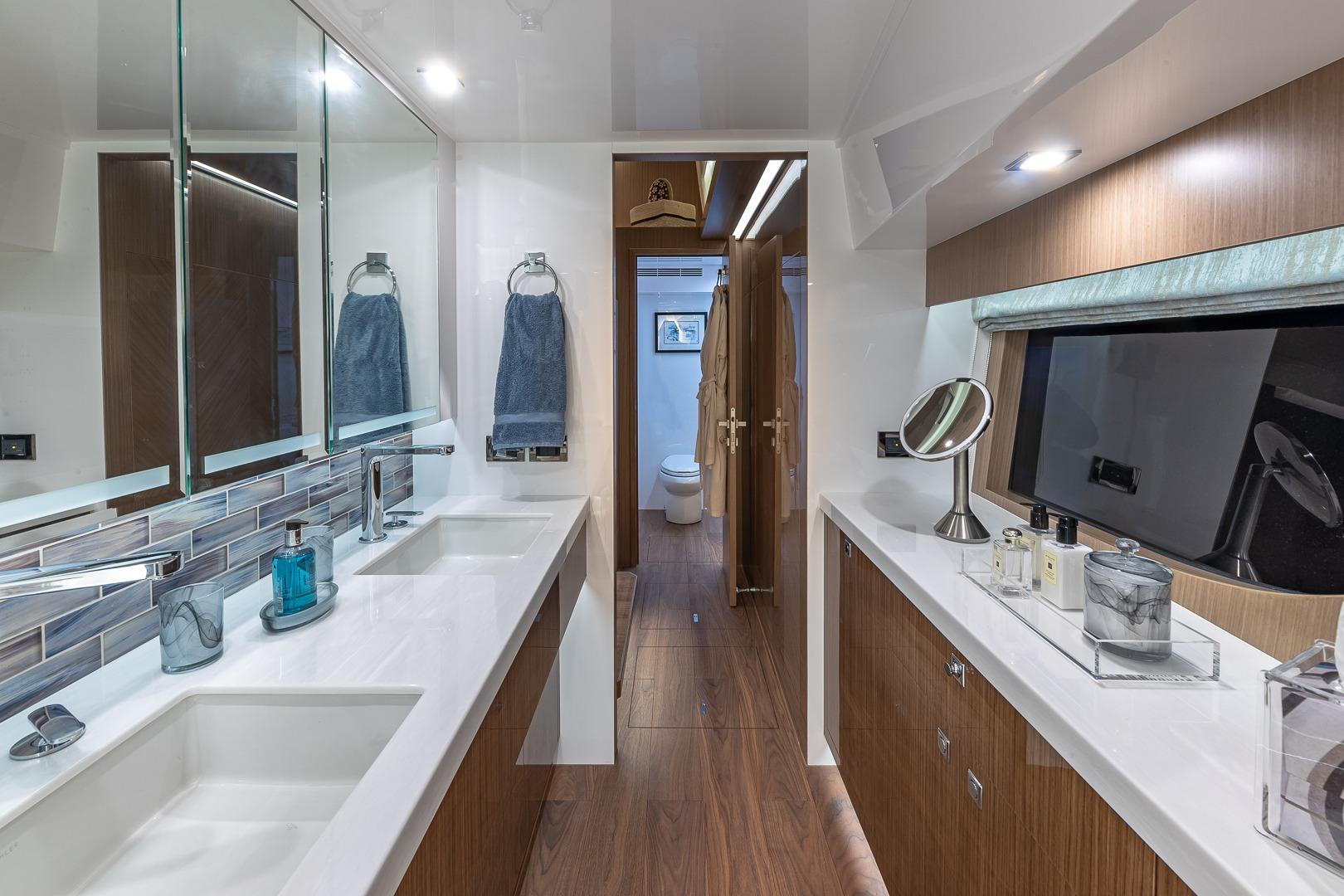 This Horizon PC60 "Oasis" is an amazing opportunity to step into a ready-to-cruise yacht that can be just that, a true Oasis. This on-deck master stateroom boasts a 4 cabin-4 head layout with a semi-open flybridge allowing for open-air cruising or comfortable air-conditioned voyages. With its 24'6 beam and sub 5-foot draft, this powercat is ideal for island hopping and blue water cruising. Powered by MAN i6 800Hp motors, you still have plenty of power to cruise at 20 knots, with a top speed of 24. If you prefer to take it slow, then you can maximize the 1,350 gallon fuel tank at 8 knots to reach over 1,300 NM of range. Whether you are a weekend boater, or a full time live-aboard, this Horizon PC allows you to enjoy the water in any way you like.