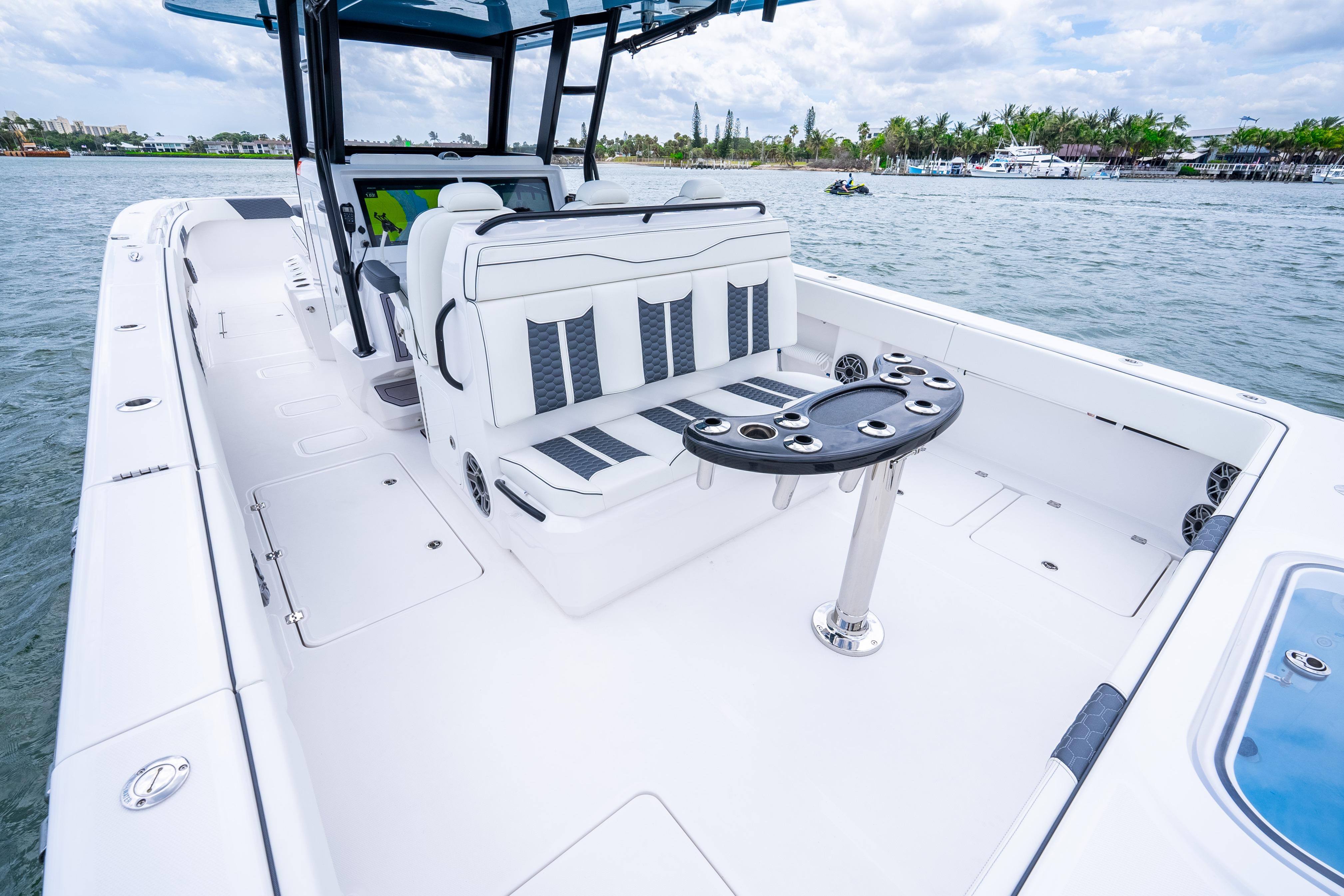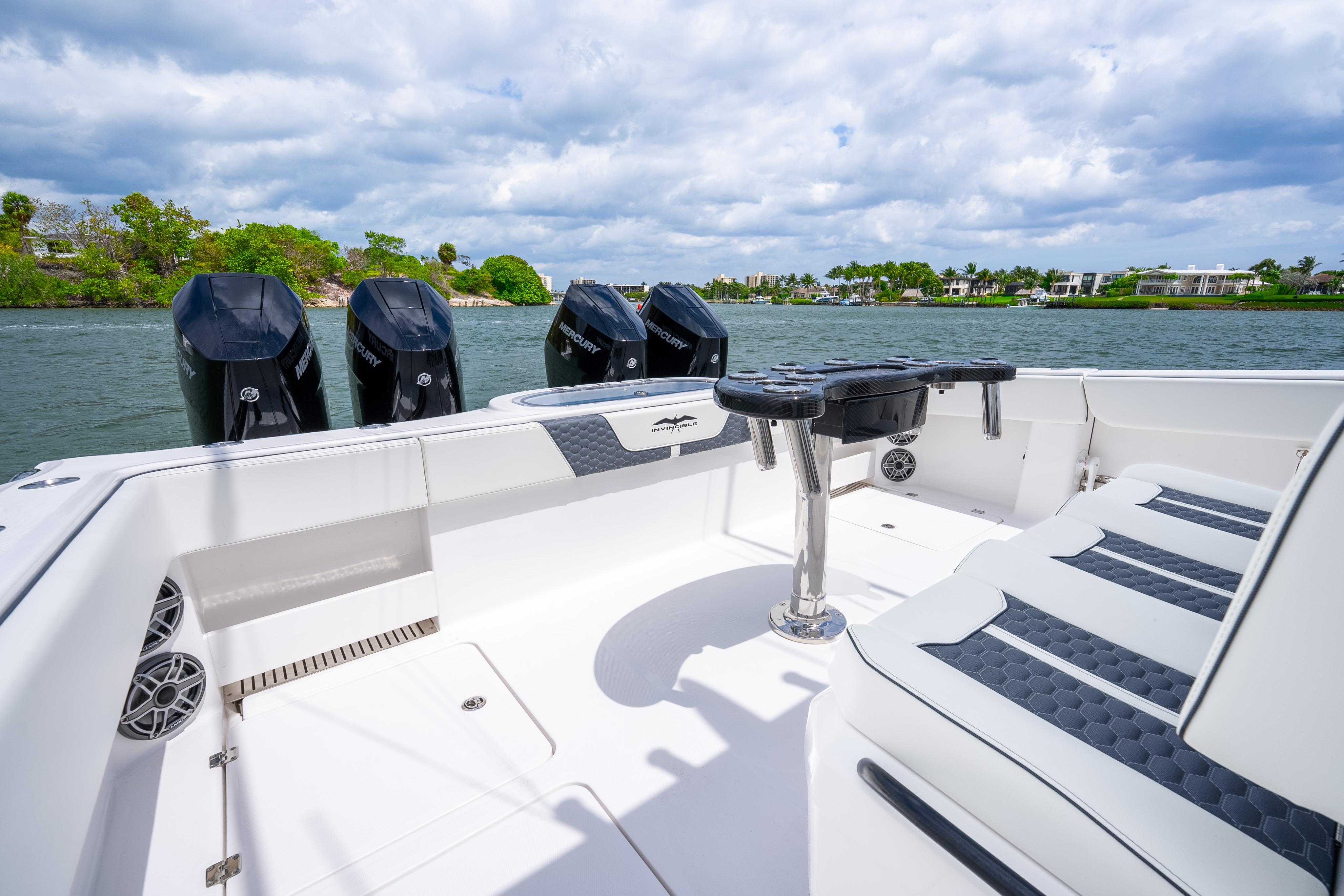 The 2023 Invincible 37 Catamaran “KROPPDUSTR” represents the pinnacle of performance, craftsmanship, and attention to detail. Powered by quad V10 Mercury Verado 400s, this 37’ Invincible reaches speeds over 70 MPH while maintaining the smooth, stable ride that Invincible catamarans are known for.