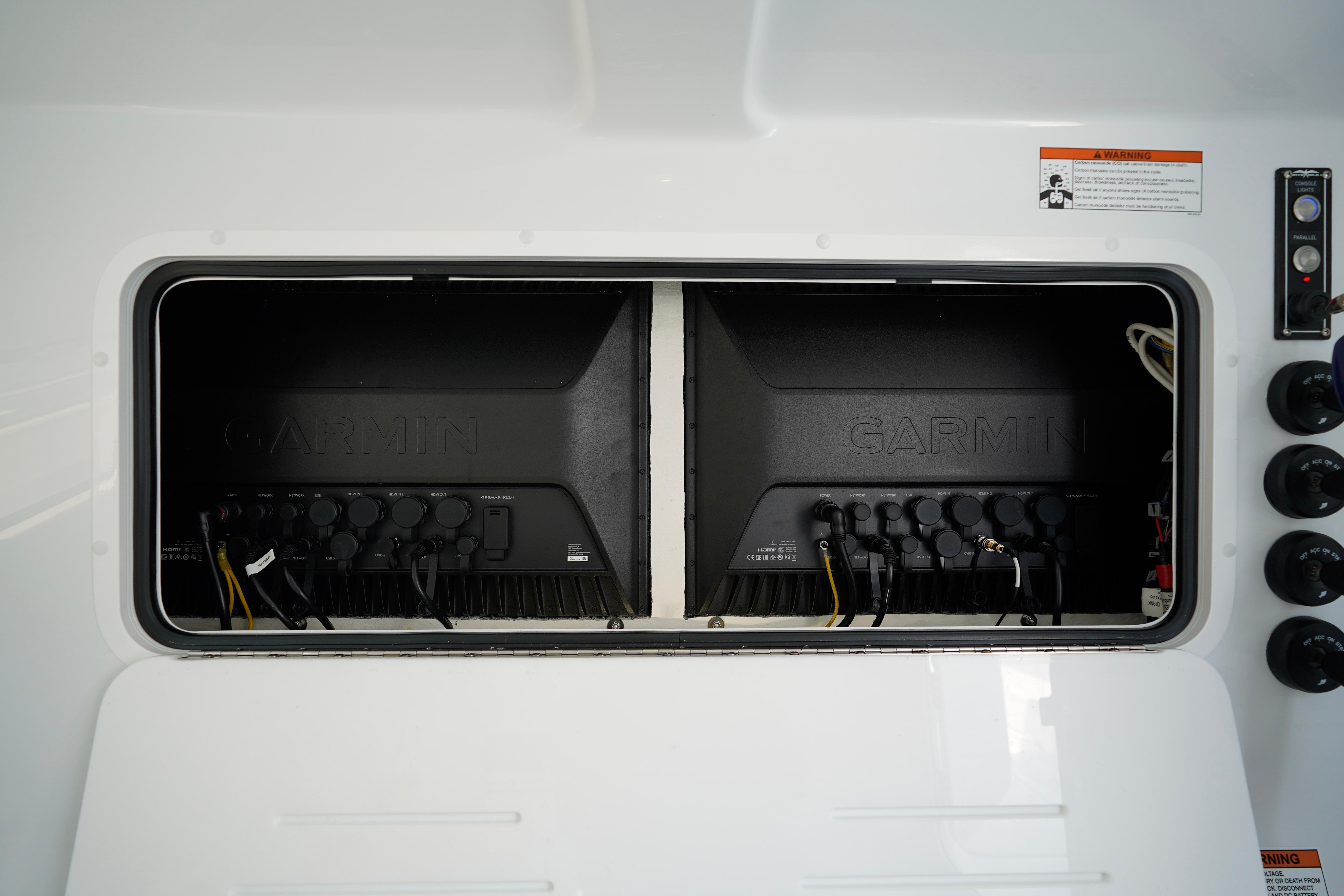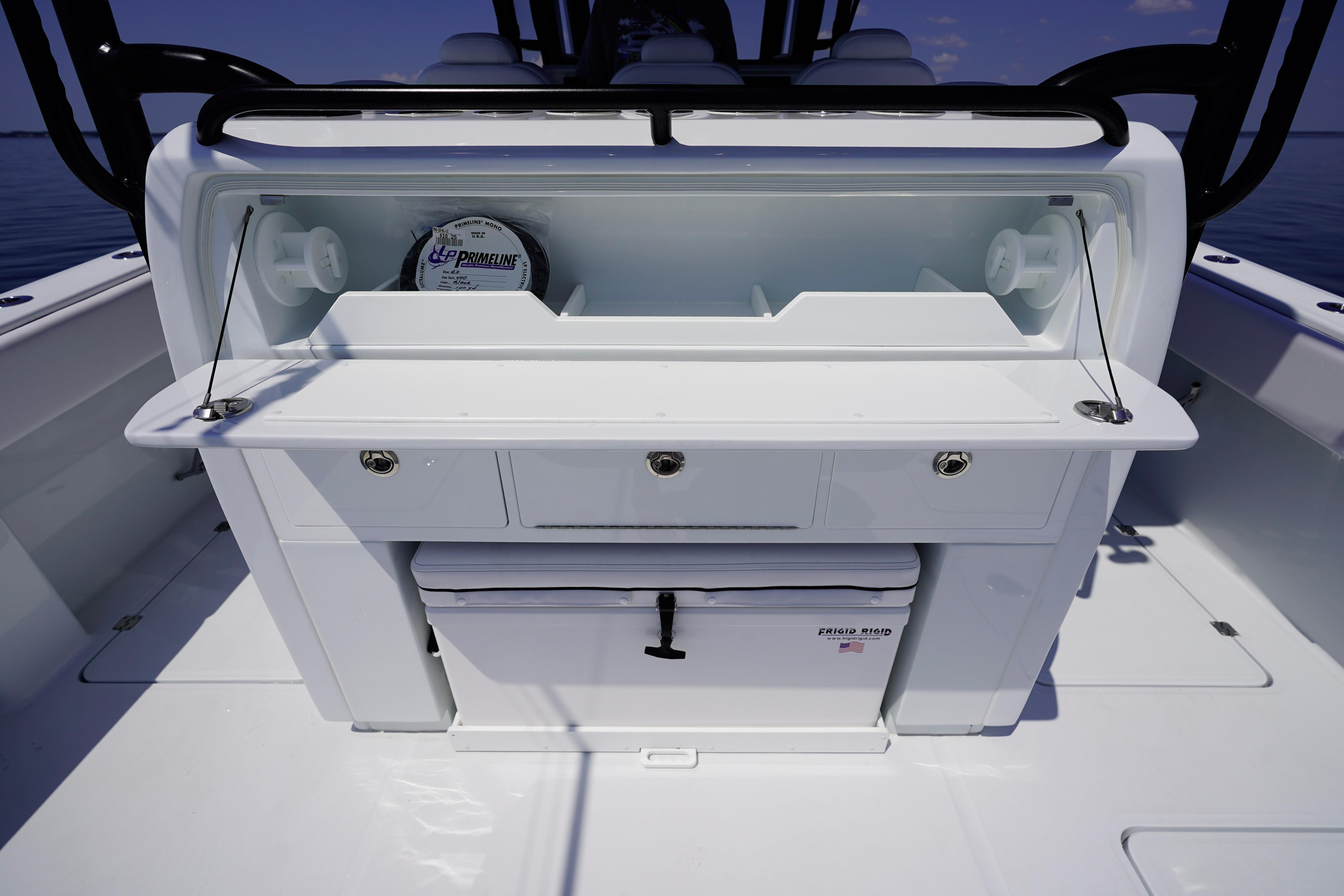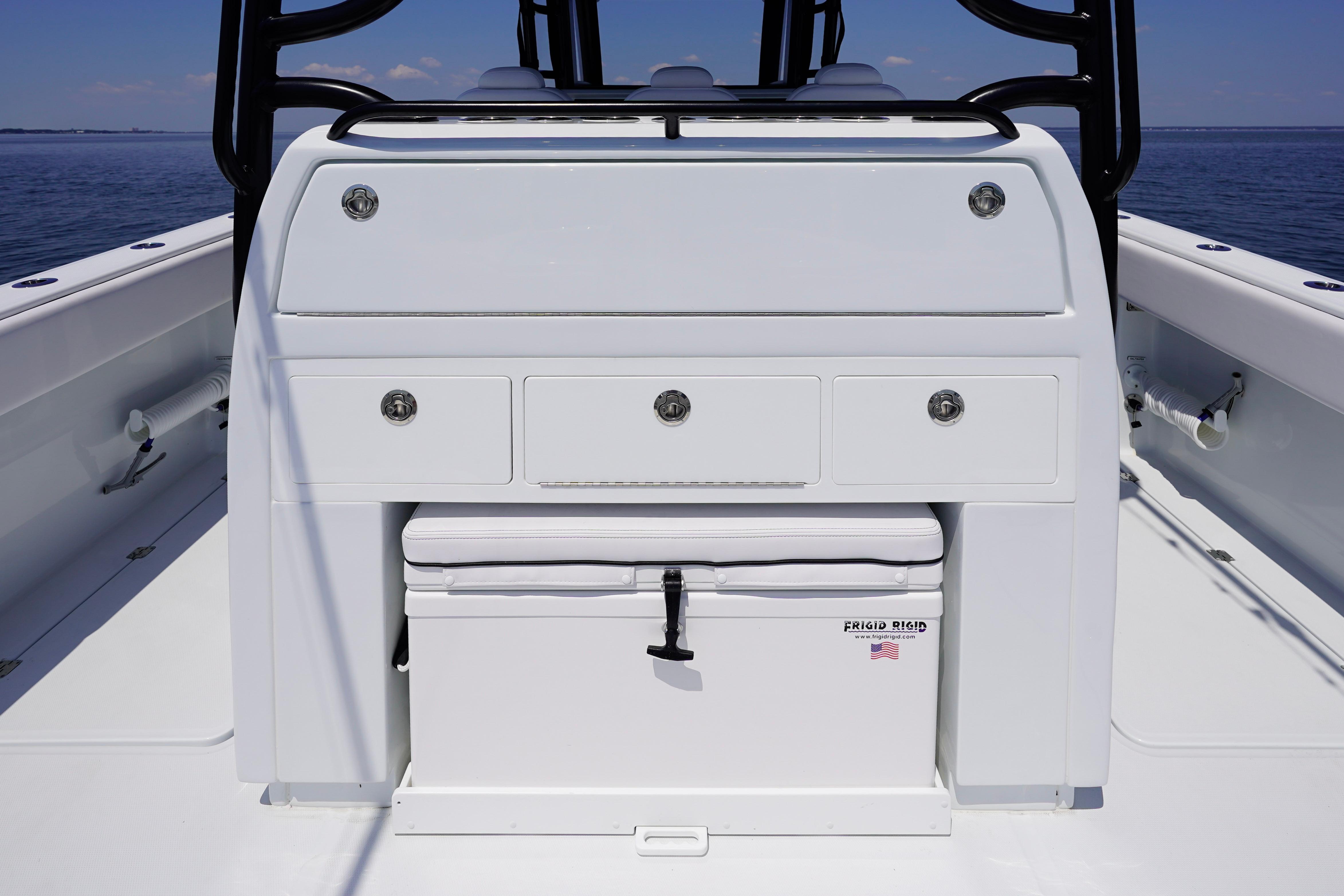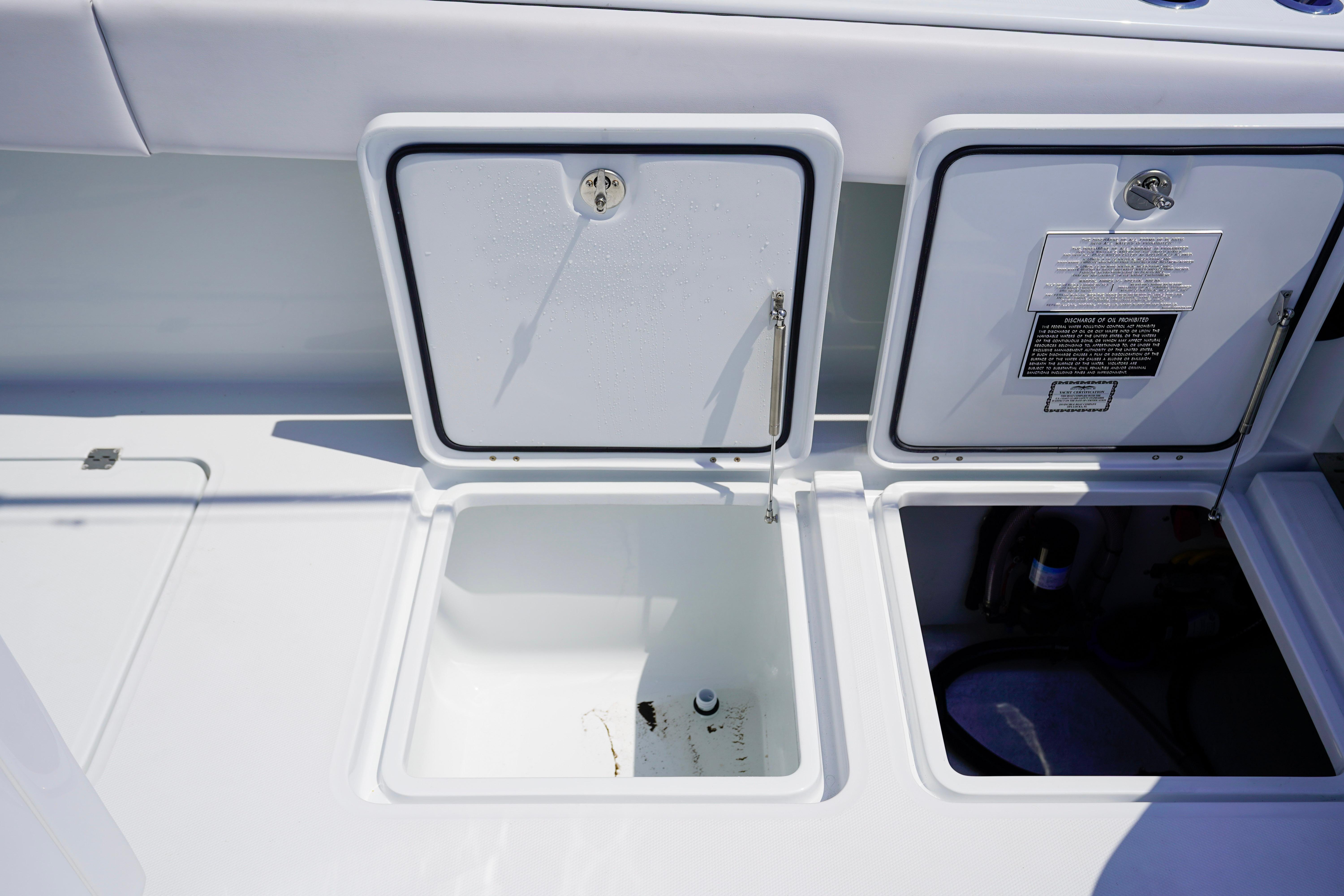 She features 360-degree walk-around deck, substantial livewell capacity (above and below deck), insulated fish boxes, and under-gunnel lighting, stainless steel hardware, finished bilge, waterproof switches, and AGM sealed batteries. Built tough for saltwater use.