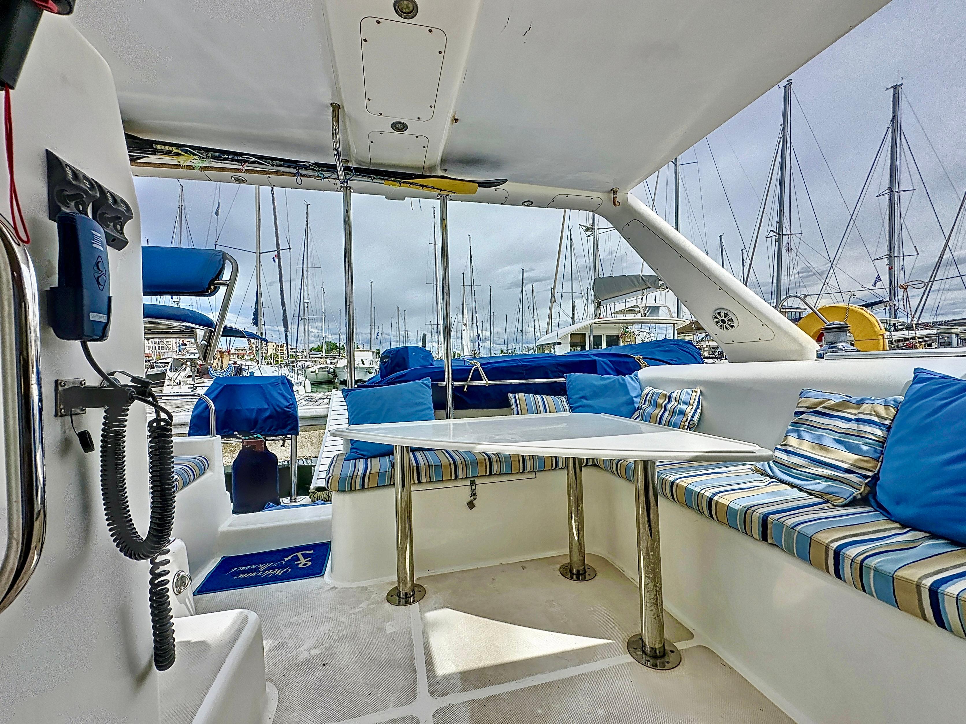 This one-of-a-kind catamaran is fully equipped and ready to set sail on the seas of your dreams. Recent updates include new through-hull fittings and shut-off valves, Volvo heat exchange system serviced, and new Volvo anodes.