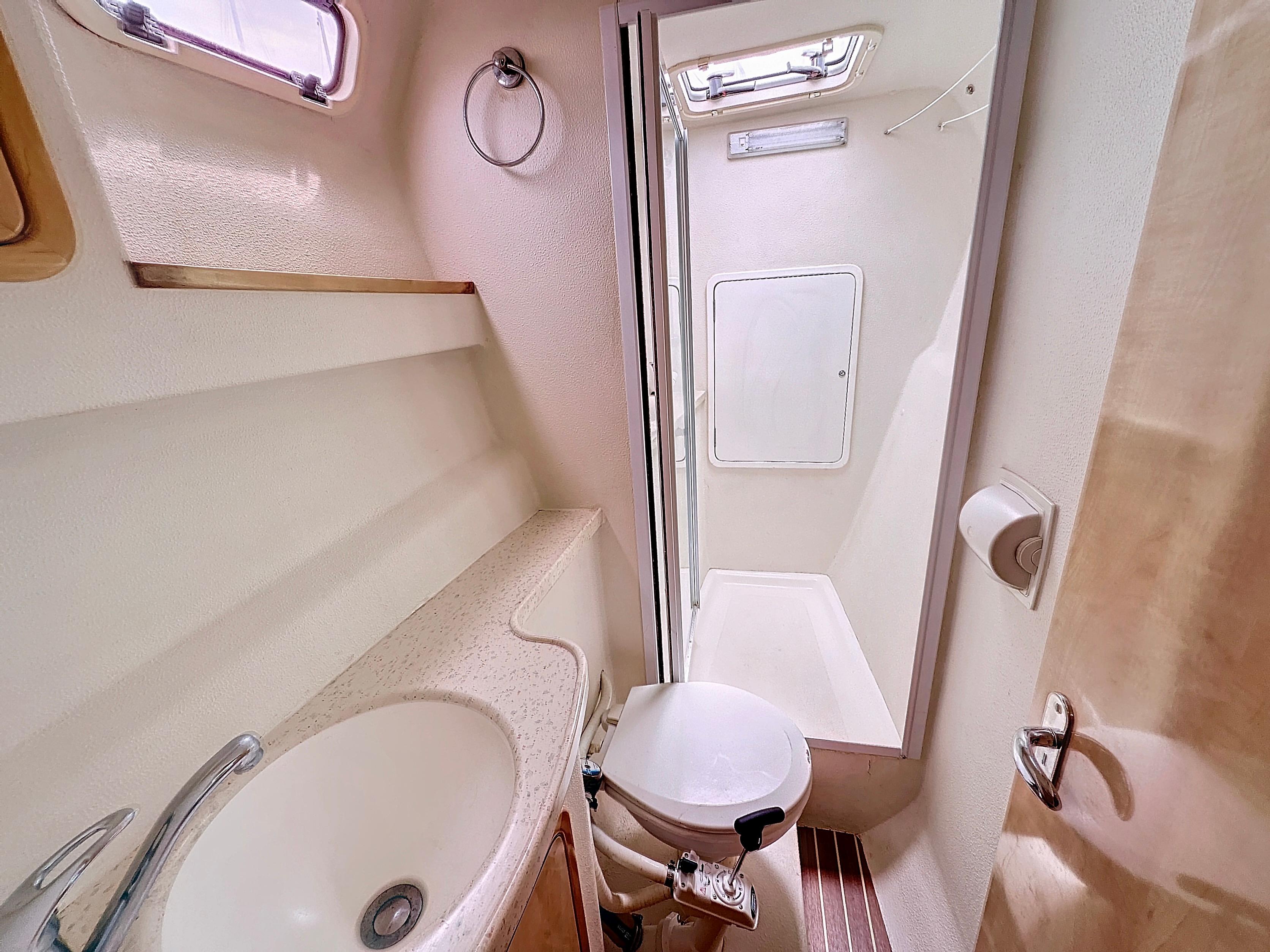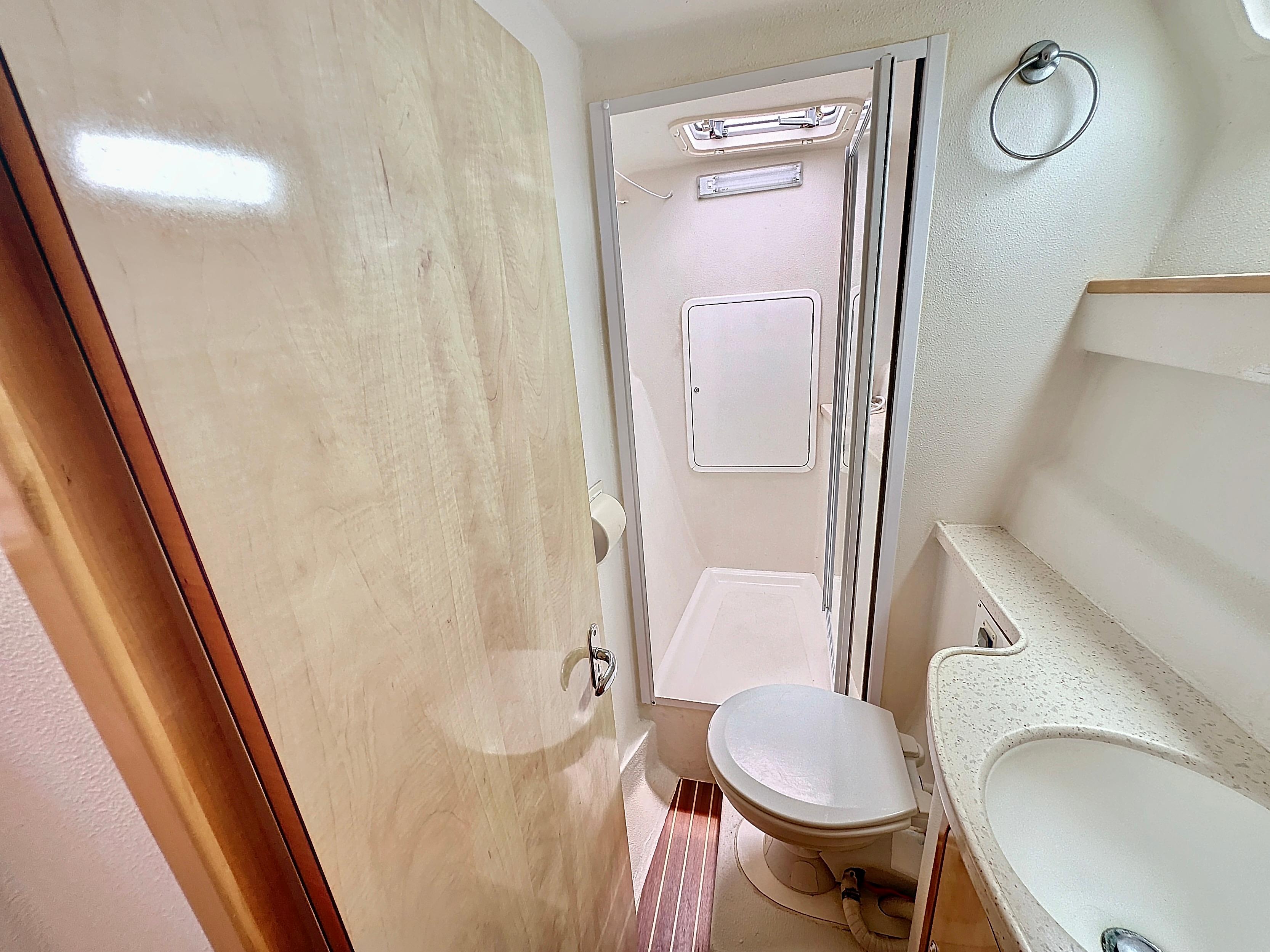 Aft Starboard Cabin: Double Bed, En Suite Facilities (Can be Used as a Day Head), Electric Head, Sink and Shower