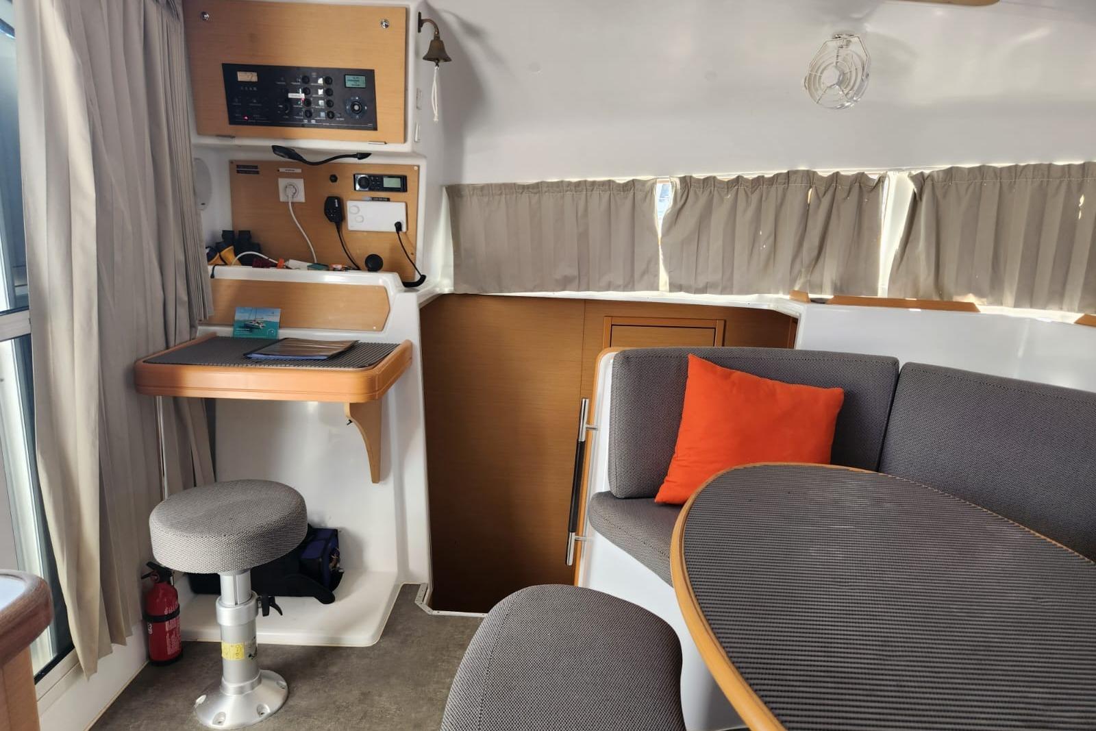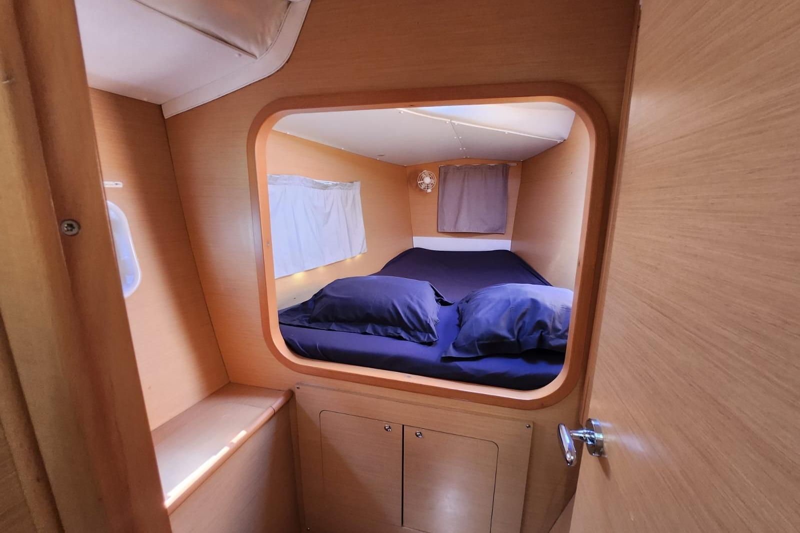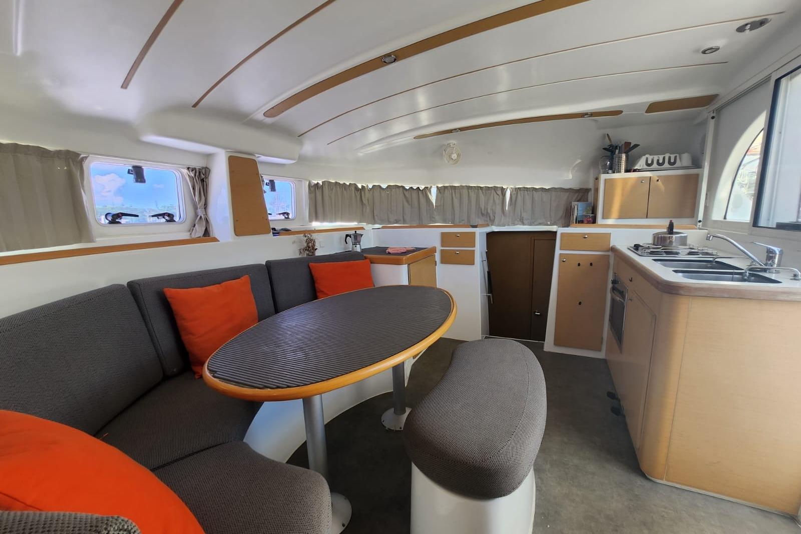 Lagoon 380, un best-seller reconnu dans sa catégorie. Il est rapide, facile à manœuvrer, sûr, et possède une légion de fans répartis à travers les océans du monde. Grâce à son gréement classique (GV + génois + gennaker + spi symétrique), Arcane est maniable et stable, même pour un équipage réduit. Sa configuration et son faible tirant d’eau permettent d’explorer sans contrainte les criques peu profondes ou les mouillages isolés. Les jupes arrière facilitent les baignades comme l’accès à l’annexe. Il séduit les navigateurs débutants comme confirmés.
