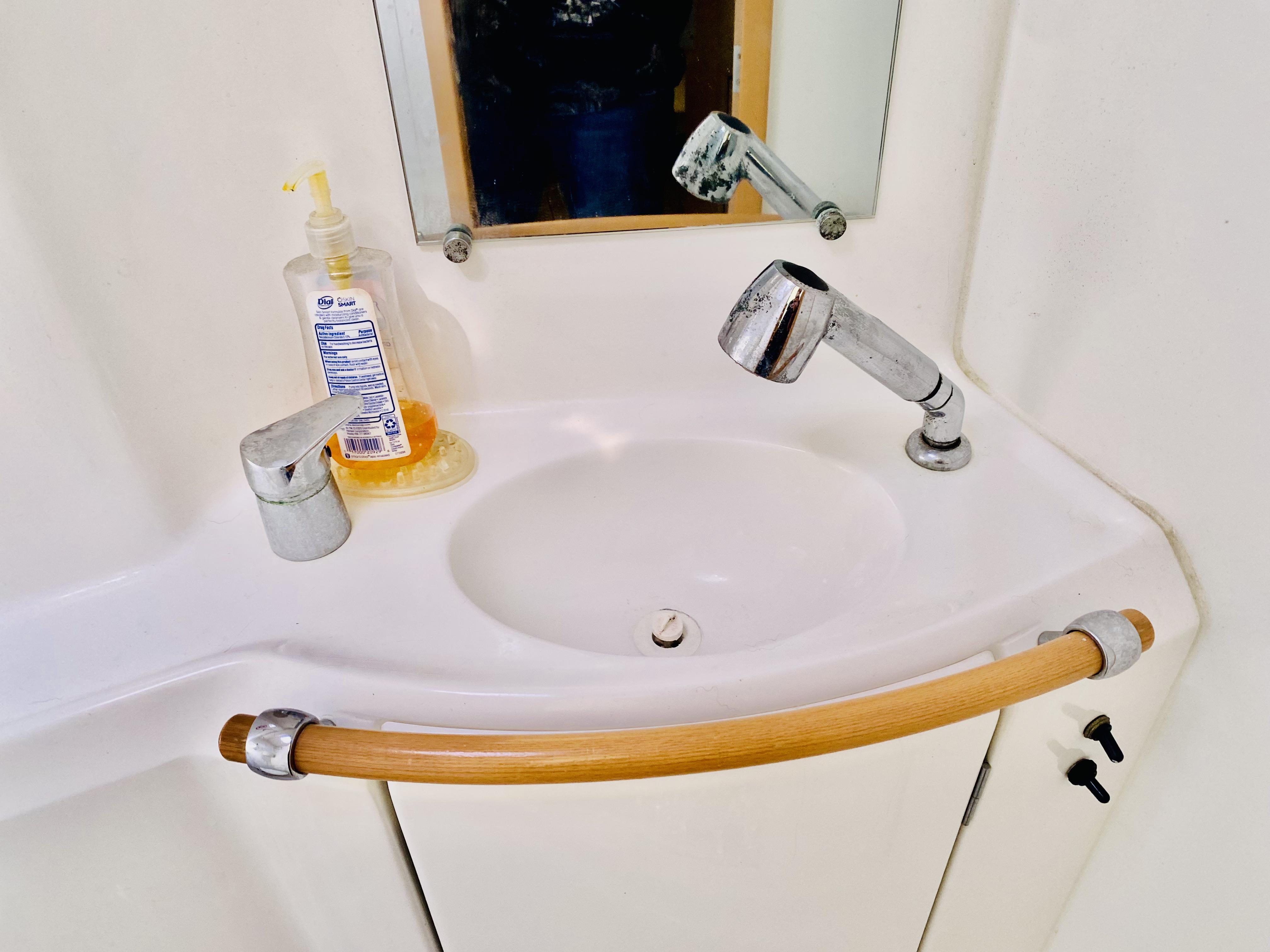 Double stainless steel sink with electric (JABSCO) and manual fresh water pumps