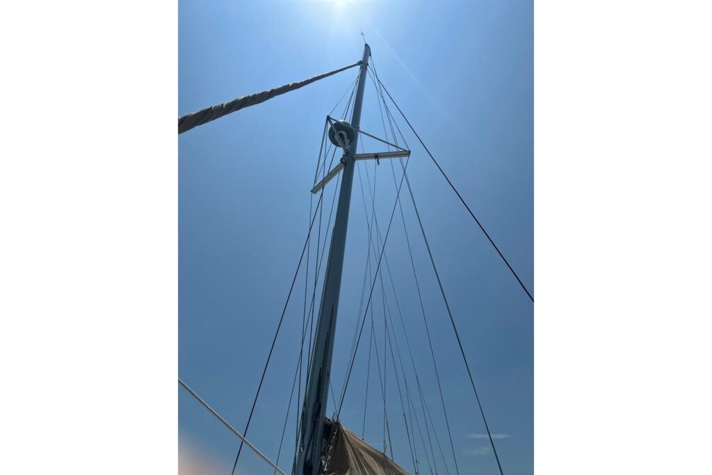 RIGGING: Running rigging: main halyard was replaced and upgraded with the highest quality non stretch halyard lines and the smoothest available racing grade Tylaska main halyard block. Code Zero roller (Facnor) is racing quality. Dyneema used as needed. Dyneema lazy jacks new in 2021. Electric winch at helm.