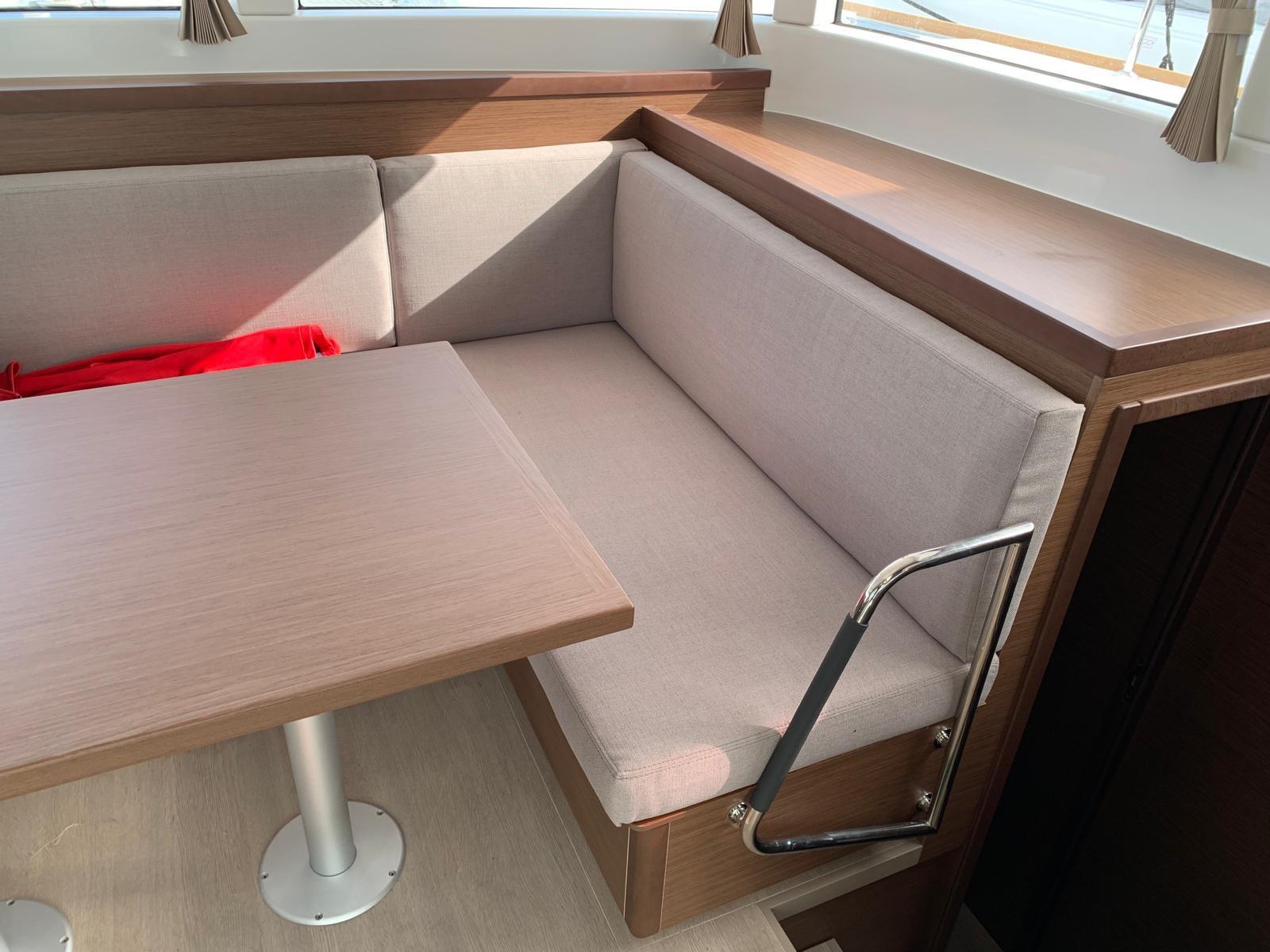 Ce Lagoon 40, qui avait un seul propriétaire, dispose de 4 cabines plus deux cabines extérieures pour l’équipage et très optionnelles : onduleur, salles de bains électriques, dessalinisateur, commande du guindeau dans la timonerie, teck dans le cockpit, grande table en teck au lieu du composite standard, réservoir d’eau supplémentaire, dînette lavable, lattes sous les lits, ventilateurs, antenne TV, annexe Highfield avec quille en aluminium....
