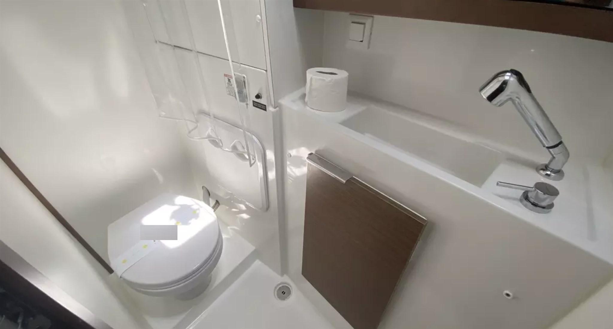 Acqua Calda, Boiler, Indicatore del Serbatoio dell’Acqua, Indicatore del Serbatoio delle Acque Reflue, Inverter (2000W Mastervolt), Prese interne 12v, Prese interne 220v, Serbatoio Acque Nere, 4 WC marino elettrico.