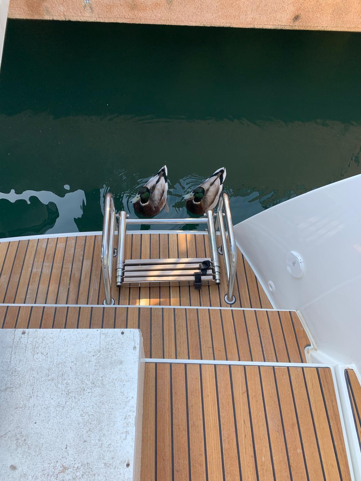 Allarme sentina, Alternatore, Ancora, Autoclave, Batterie, Cavo corrente di banchina, Gruette per tender, Luci di cortesia, Motore fuoribordo per tender (Honda 6 cv), Parabordi, Porta ingresso, Presa 220V banchina, Sartiame spiroidale, Tavolo pozzetto (grande in teak al posto del composito standard), Tavolo Salone Abbattibile, Tender (Highflied CL290), Winch, Windex.