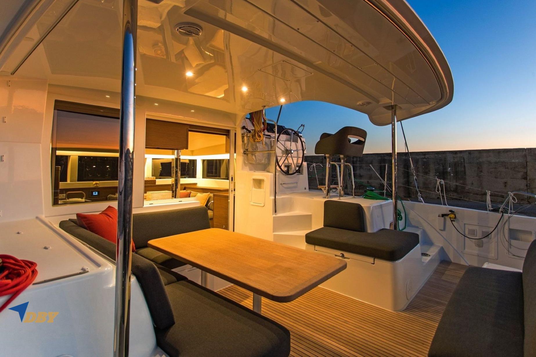 - A comfortable cockpit looking out to sea: a starboard dining table, able to accommodate up to twelve guests, a recreation area on the same side and seating at the rear beam.