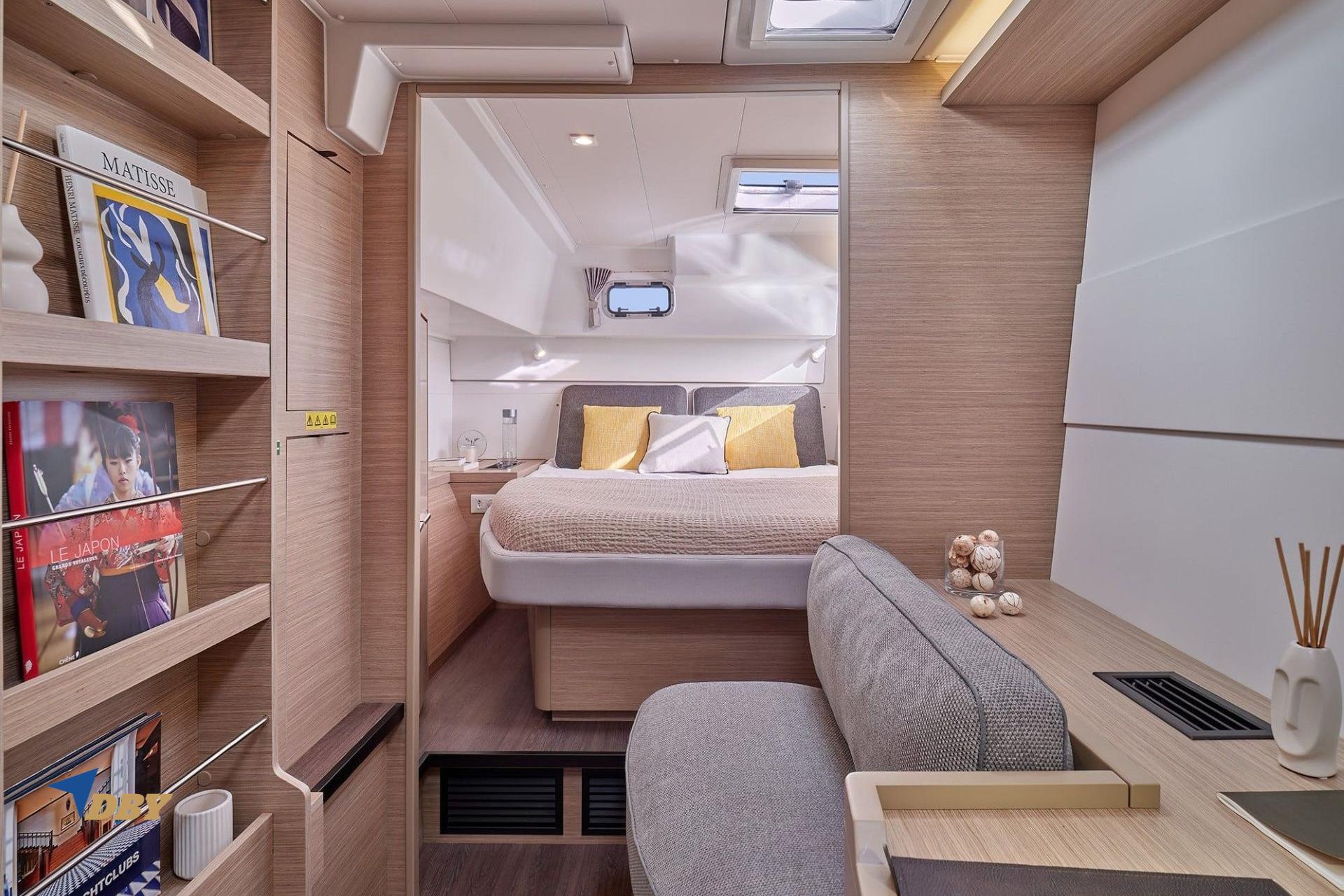 - A new aft cabin, fitted with a « semi Island bed » berth and multiple storage space.