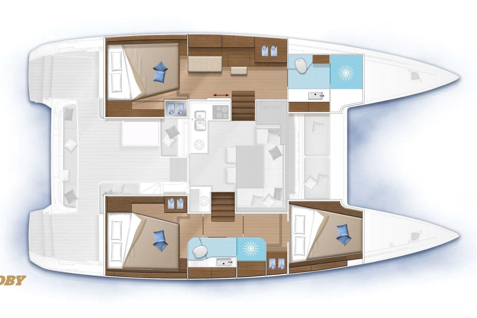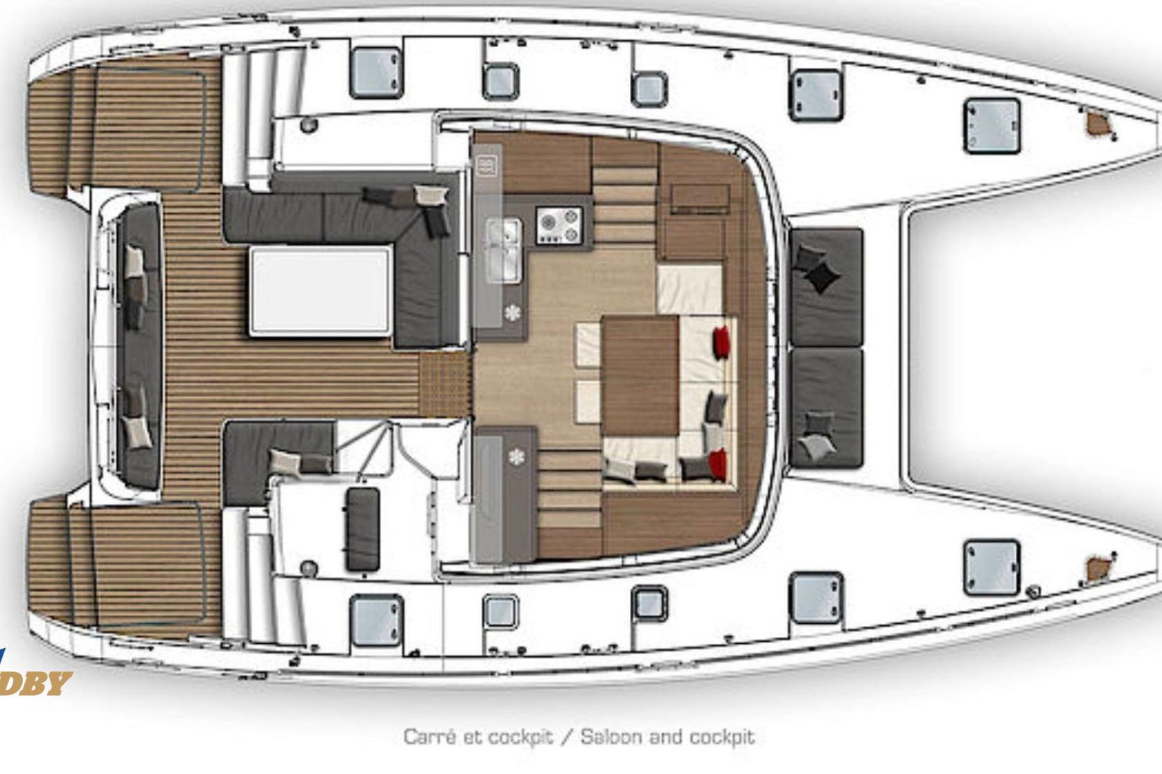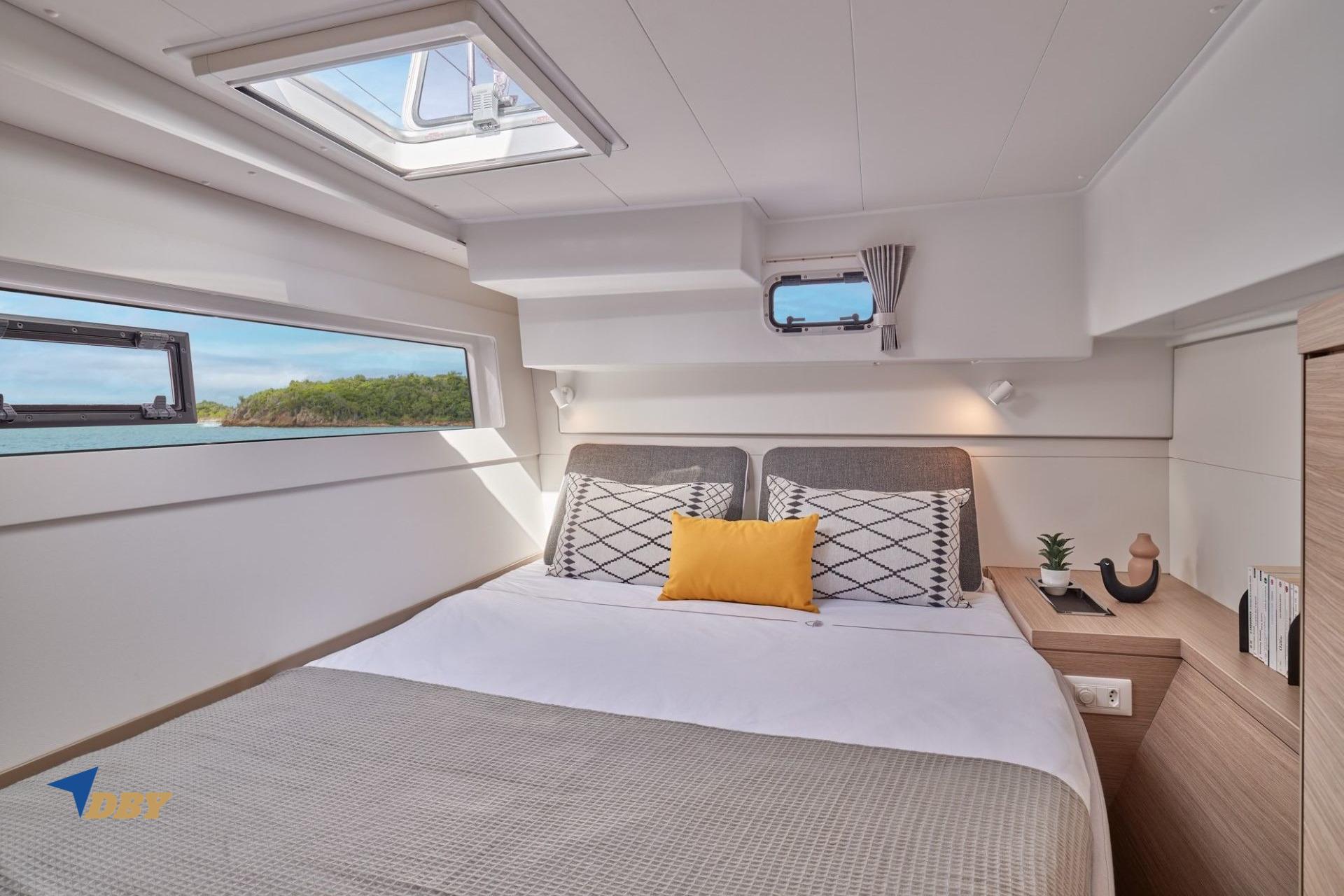 A symbol of the new generation Lagoons, the 40 is endowed with advanced performance features: a VPLP hull structure and an increased sail area provide a better sail surface area / displacement ratio. The decision to position the mast step further aft, which stems directly from VPLP's experience in competitive sailing, provides this catamaran with multiple advantages:A self-tacking jib for simplified manoeuvres.