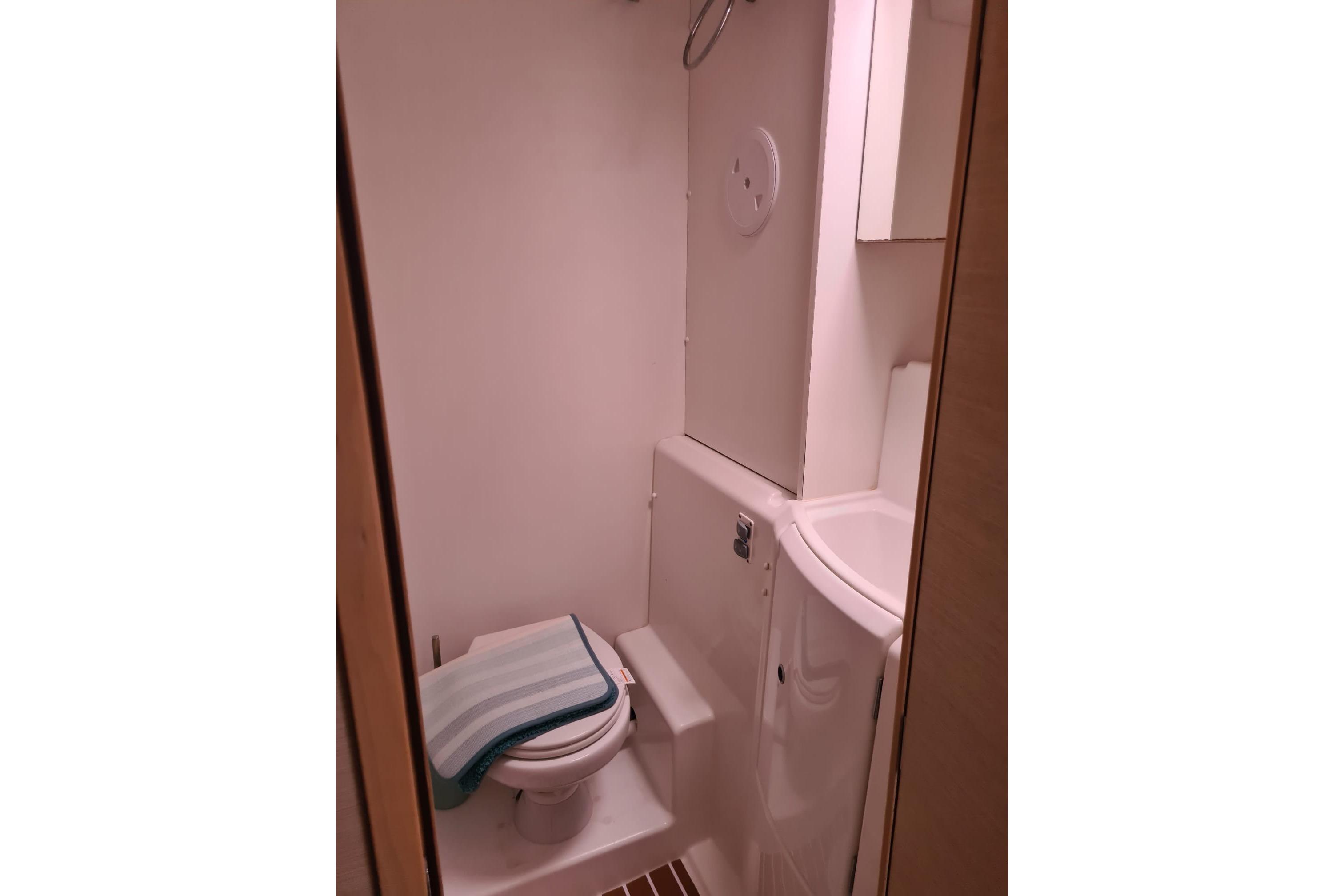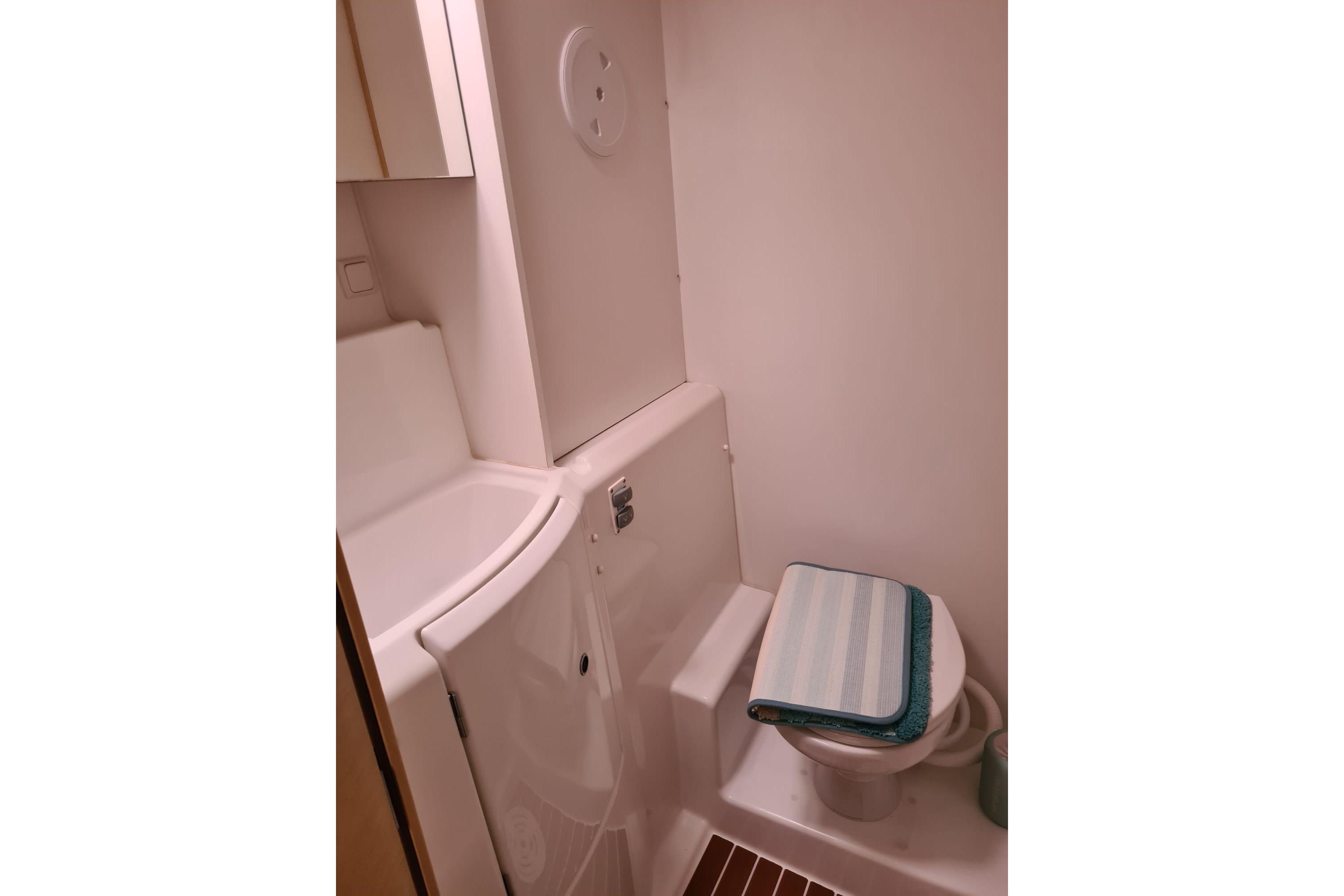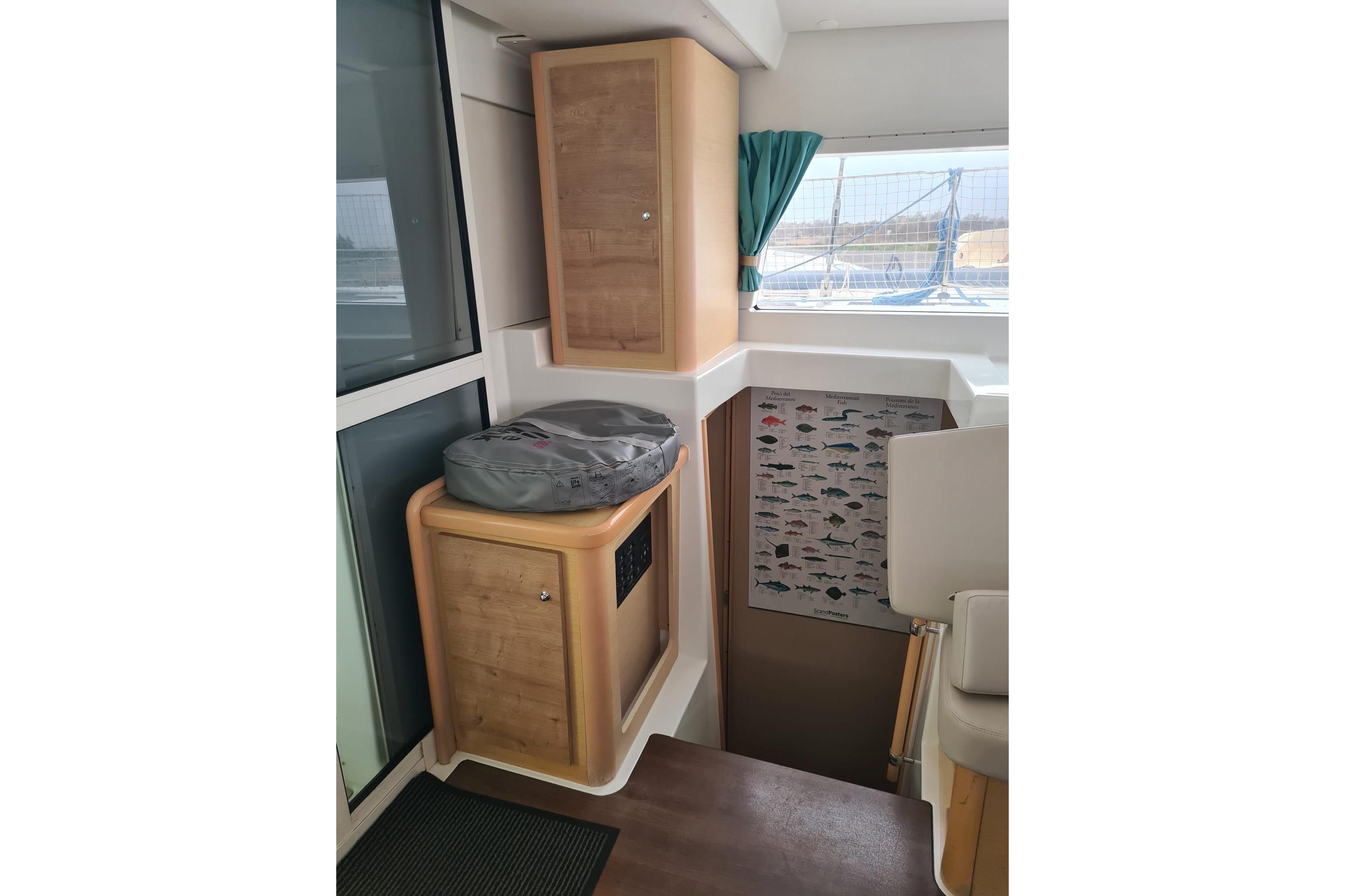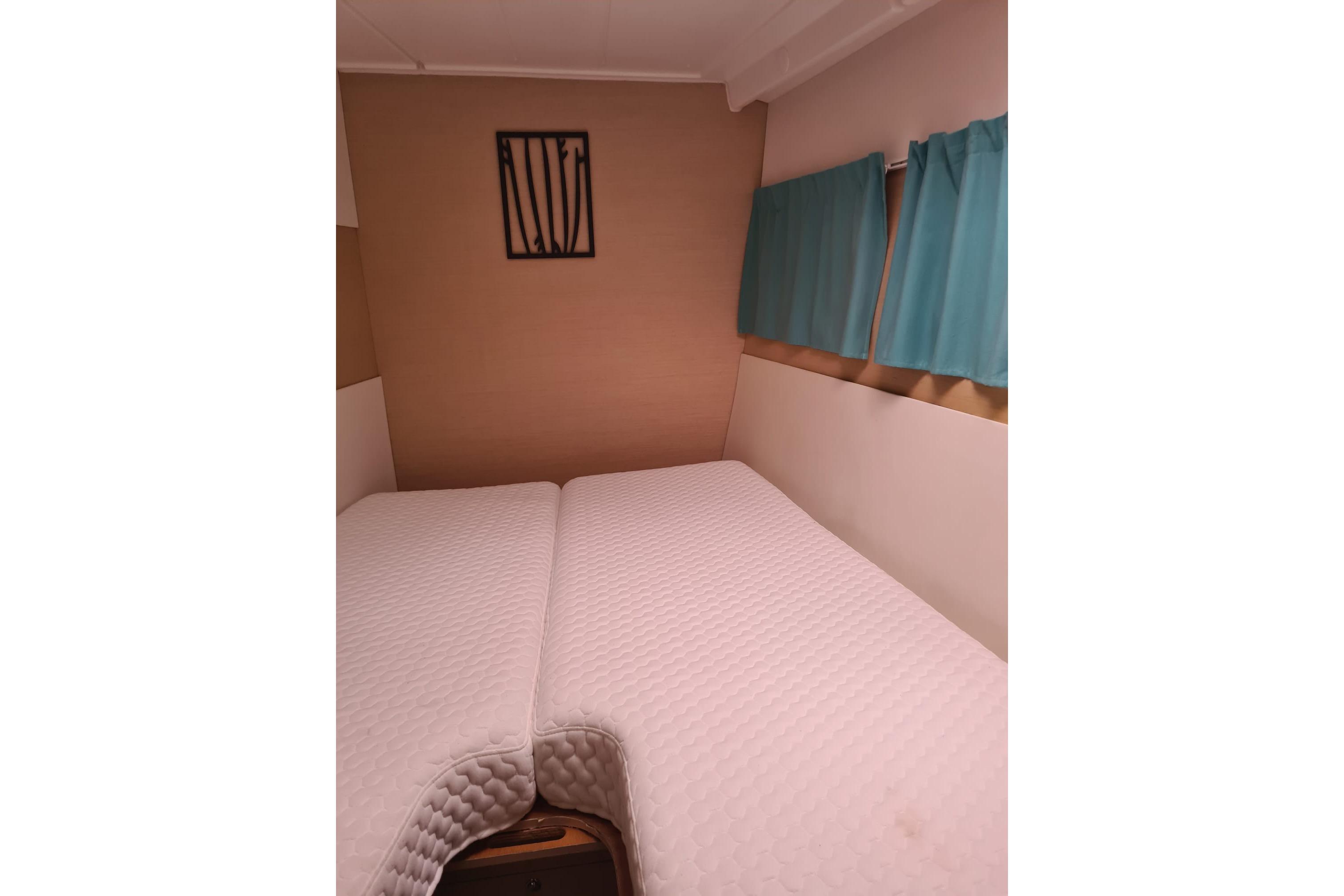 À bord, le catamaran propose 4 cabines doubles et 8 couchages, 2 cabines supplémentaires dans le salon sont possibles, ainsi que 4 salles de bain avec WC, offrant confort et intimité pour tous les passagers. La cuisine refaite inclut 2 frigos Dometic, gazinière 3 feux, four gaz, micro-ondes et évier résine, tandis que le cockpit et la sellerie ont été refaits à neuf, avec taud anti-UV et trampoline.