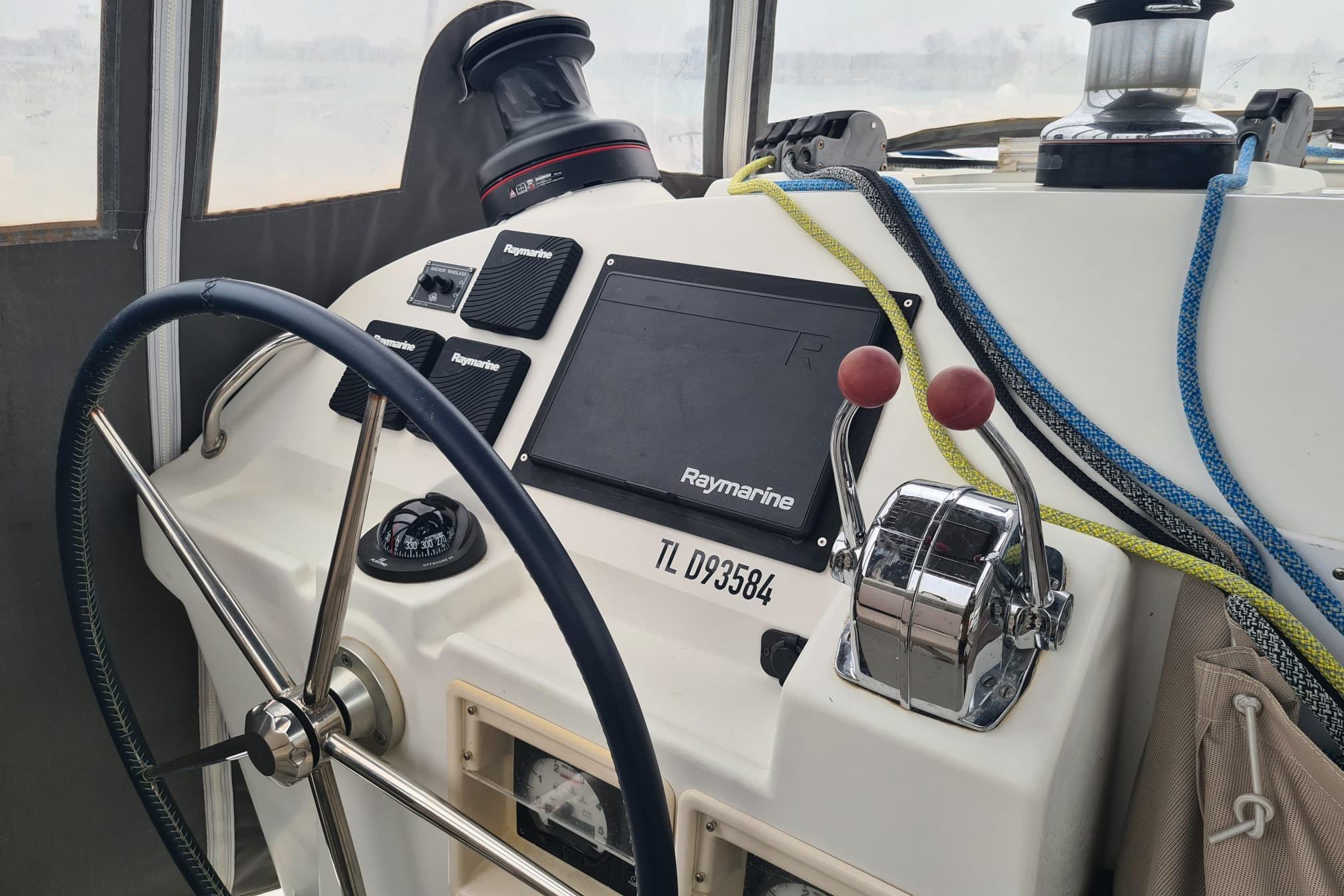 L’électronique de navigation a été entièrement remplacée : suite Raymarine 2023 avec pilote automatique, girouette/anémomètre, AIS émetteur-récepteur, sonde 3D 1 kW, écran tactile 13 pouces et loch-speedomètre. Les voiles et le gréement ont été renouvelés, avec 2 jeux de voiles complets et 2 génois (dont un sur enrouleur).