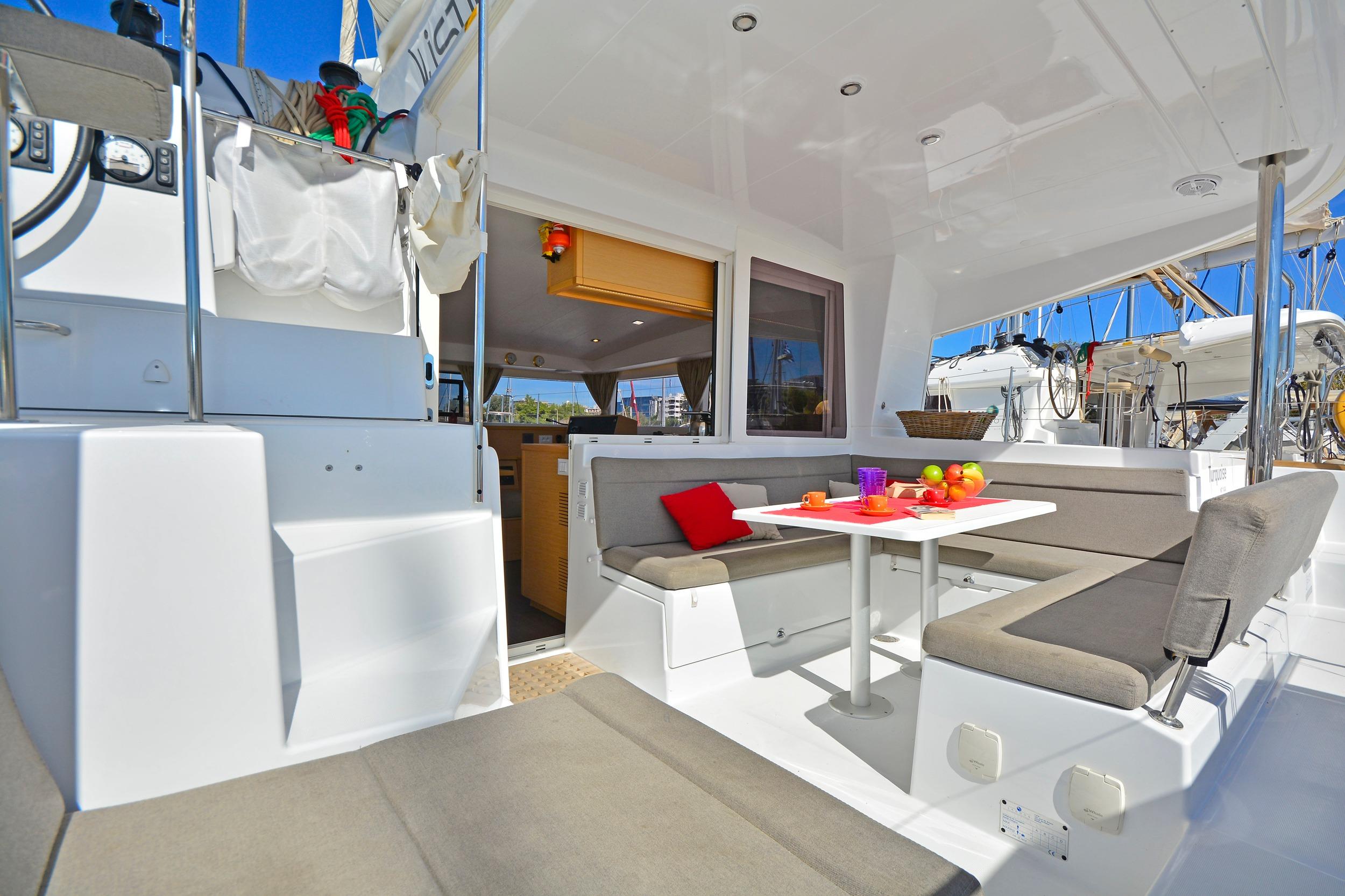 FULL INVENTORY / EQUIPMENT LIST Accommodation: Bedding / Linen: Comfort / Pleasure: Deck: Electricity: Electronics: Galley: Miscellaneous: Navigation: Safety: Sails / Covers: Spares / Tools: 2 Bow Single Bed Cabins 2 Heads 2 Showers 4 Double Bed Cabins Saloon Double Bed Convertible Blankets Hangers Linen & Bedding Pillows Pilow Cases Sheets Towels Bath Towels Face 12V Sockets 220V Sockets Cockpit Cushions Cockpit Fridge Cockpit Speakers Electric Toilets Fans in Cabins Fans in Saloon Hot Water Music Player Saloon Speakers Snorkelling Sets Sockets 220V Cabins Sockets 220V Saloon Solar Panels USB Charging Ports Usb Charging Ports Cabins Usb Charging Ports Saloon Anchor Anchor Chain Anchor Windlass Control Anchor Windlass Handle Boat Hook Cockpit Shower Cockpit Table Deck Brush Diesel Canister Dinghy Dinghy Oars & Locks Dinghy Pump Dinghy Repair Kit Electric Anchor Windlass Engine Oil Spare Fenders Flag Halyards Fuel funnel Gangway Inox Gas Bottles Mooring Ropes 15m Mooring Ropes 25m Mooring Ropes 50m Outboard Motor Outboard Motor Jerry Can Padlocks Plastic Bucket Rigid Bottom Dinghy Ropes Spare Spare Anchor Spare Anchor Chain 10m Stern Fenders Swimming Ladder Tanks Opener Teak Cockpit Floor Water Hose & Adaptors Winch Handles Battery Charger Inverter Shore Power Cable Shore Power Cable & Adaptors Auto Pilot Depth Sounder GPS Plotter in Helm Station Speed Log VHF Wind System Bottle Can Opener Bowls Bread Knife Casserole Cheese Grater Clothes Pegs Coffee Cups Coffee Pot Filter Press Cutting Boards Drinking Glasses Dust Pan & Brush Forks Freezer Frying Pans Gas Stove with Burners & Grill Kettle Ladle Lemon Squeezer Main Dish Plates Meat Knifes Oven Gloves Placemats for Pots Plates Small Plates Soup Pyrex Oven dish Refrigerator Salad Bowls Saucepans Serving Knifes Serving Plates Serving Tray Small Plates Soup Spoons Spagetti Strainer Spatula Tapper Ware Tea Spoons Tea Strainer Tongs Vegetable Knifes Vegetable Peeler Water Jug Whisk Wine Glasses Wooden Spoons Holding Tank(s) BatteryOperatedNavLightsSet Binoculars Divider Greek Waters Pilot Hand Bearing Compass Light House Book Navigation Ruller Pencil Set Sea Charts Area Set Black Plastic Balls Black Plastic Cone Bosun's Chair Distress Flares Box Distress Mirror Emergency Tiller EPIRB Fire Extinguishers First Aid Kit Floating Light Foghorn Horseshoe Lifebuoy Life Jackets, Adults Life Jackets, Child Liferaſt Radar Reflector Safety Harnesses with Belts Set of Flags, C.N.Q. Wire Cutter Wooden Blanks Set Bimini Top Full Batten Main Sail Furling Genoa Lazy Bag with Lazy Jacks Sprayhood Stern Tent Boat Manuals Engine(s) Spares Box HoldingTanks Sail Repair Kit Scissors Tools Box Torch Light