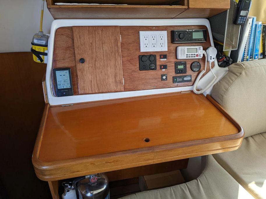 Electronics:One tablet with Navionics is used for navigation. Raymarine sailing instruments include depth/speed, and wind. An existing Raymarine autopilot helps with the steering and there is a new Raymarine EV-400 aboard and ready to be installed. Watchmate AIS transceiver enhances safety.There are three ICOM VHF Marine radios, two handhelds and one fixed mount radio at the navigation station.The navigation station has been beautifully redone.