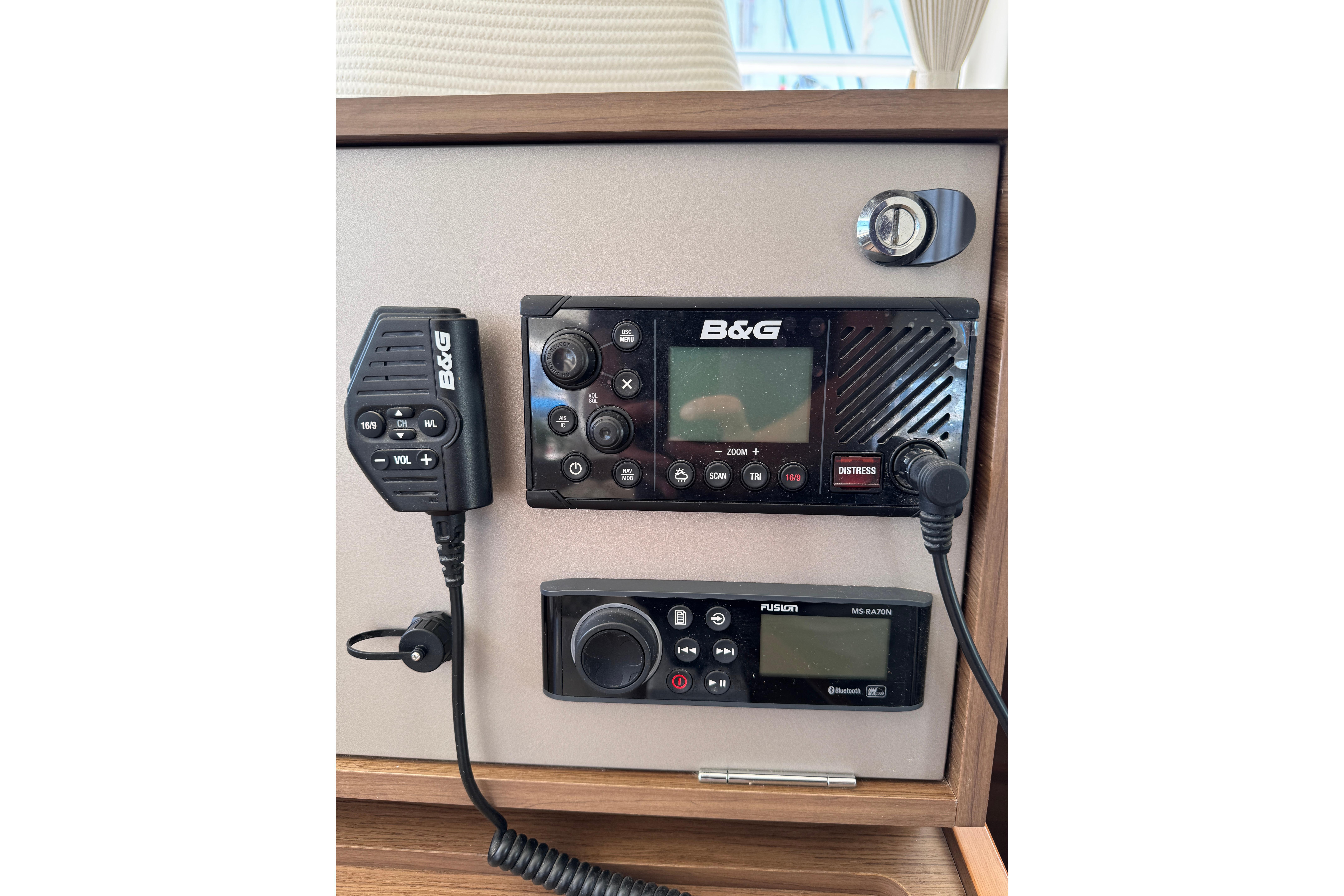 • B&G; VHF with remote handset + handheld VHF paired to station