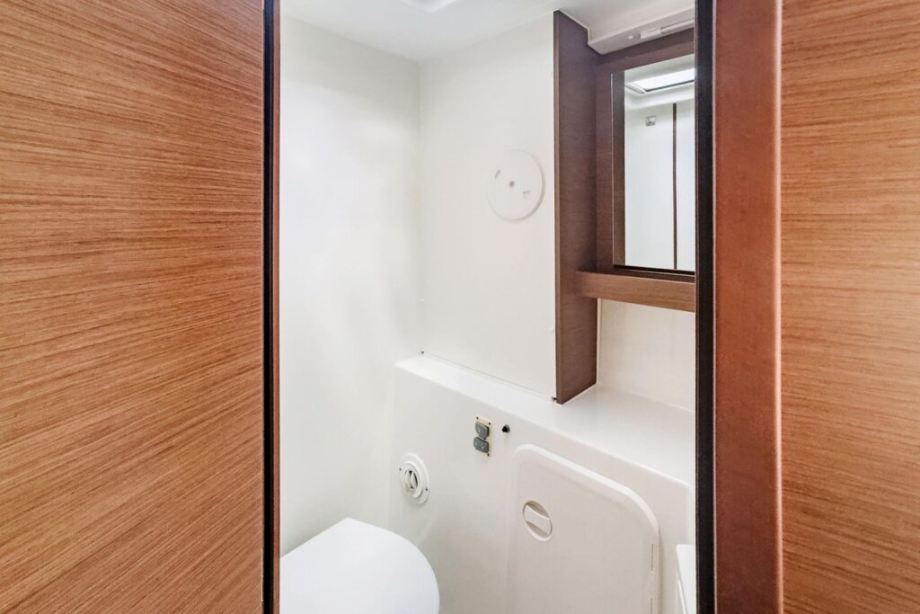 – a large glazed door that occupies the entire width of the coachroof, and provides access to the unparalleled internal volumes.