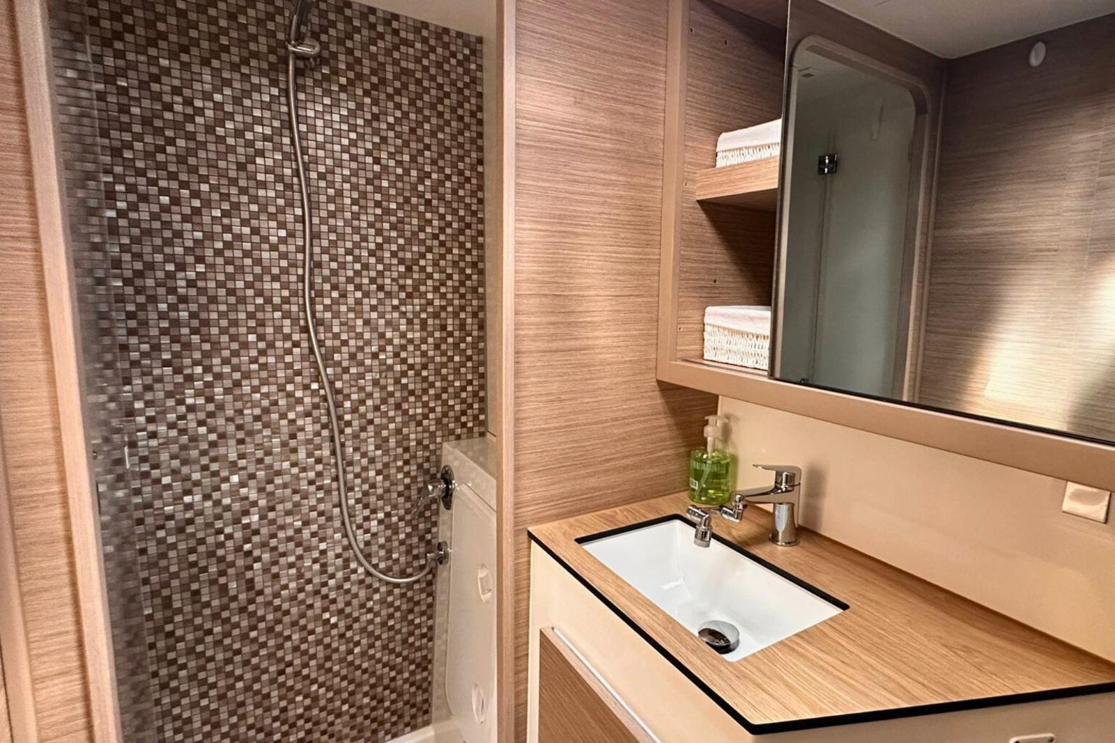 Four cabins version, foldable table in the mess room for sleeping, four showers’ rooms, with one skipper