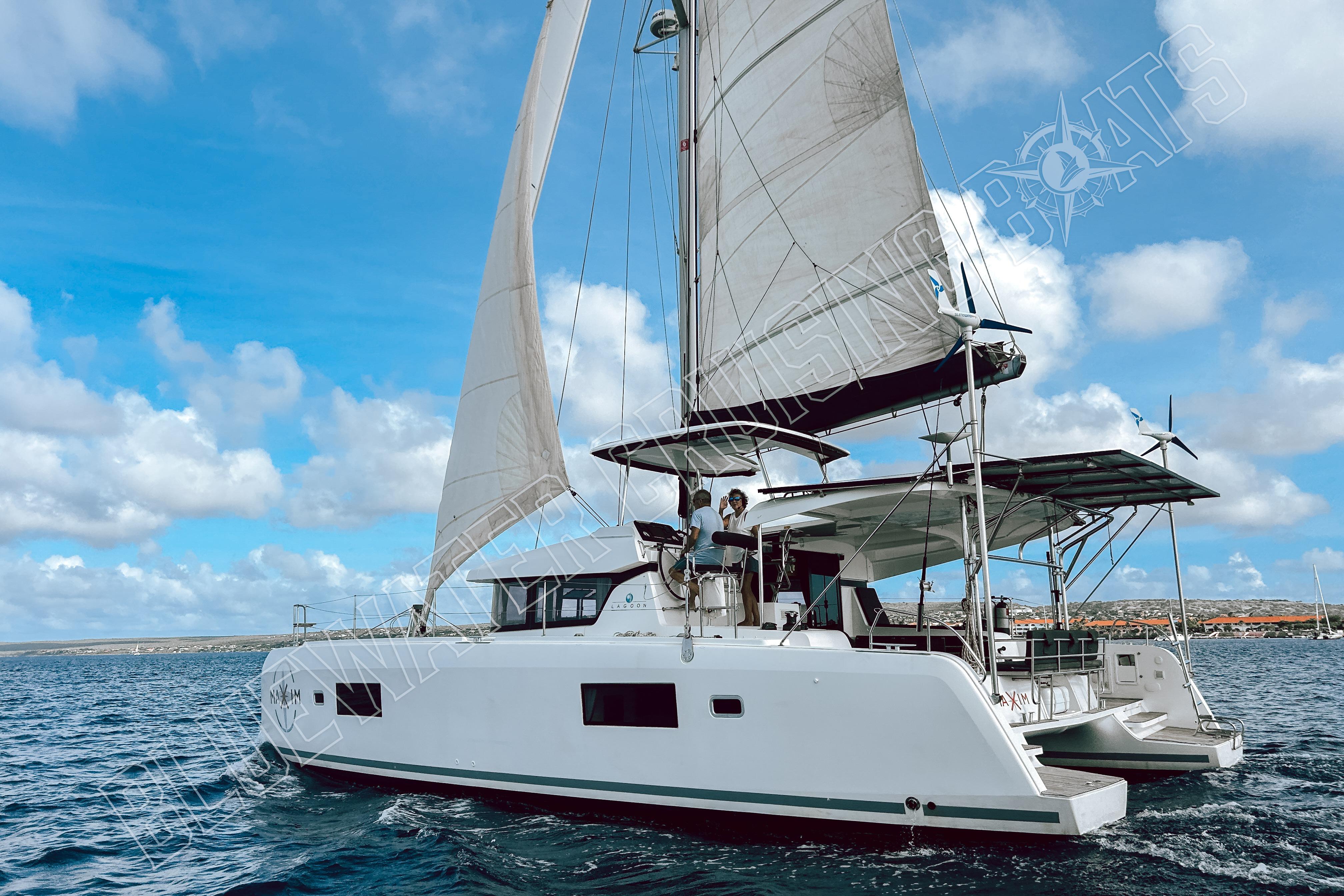 Introducing MAXIM a 2018 Lagoon 42 Owner’s Version catamaran that embodies Lagoon’s vision for modern, comfortable cruising. The Lagoon 42, designed by the acclaimed VPLP team and launched in 2016, marked a significant step forward in catamaran design with its sleek, contemporary lines, forward-set mast for improved performance, and a focus on light, open living spaces. The Owner’s Version was conceived for those seeking a true home on the water, dedicating the entire starboard hull to a private suite and raising the standard for comfort and livability in this class.