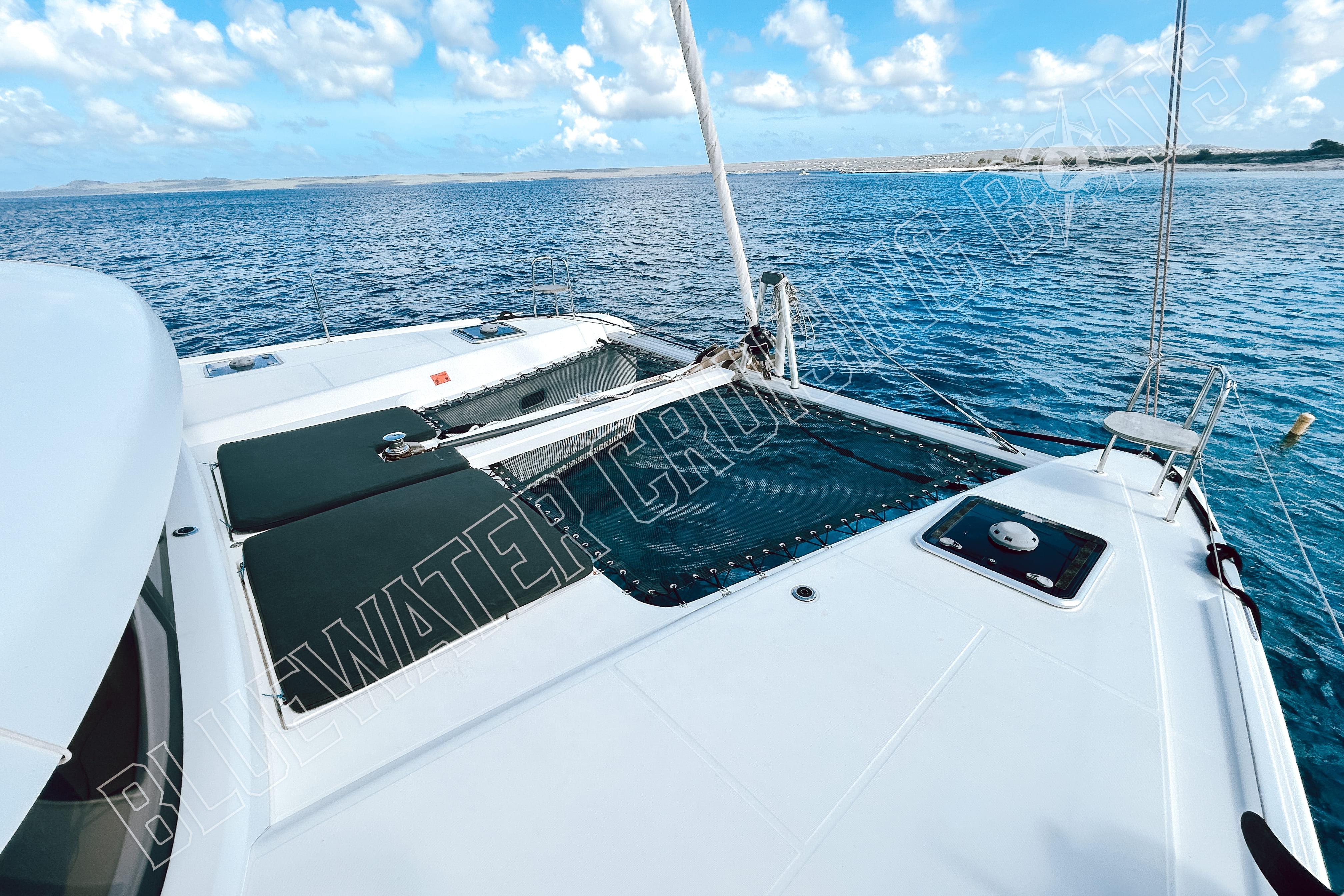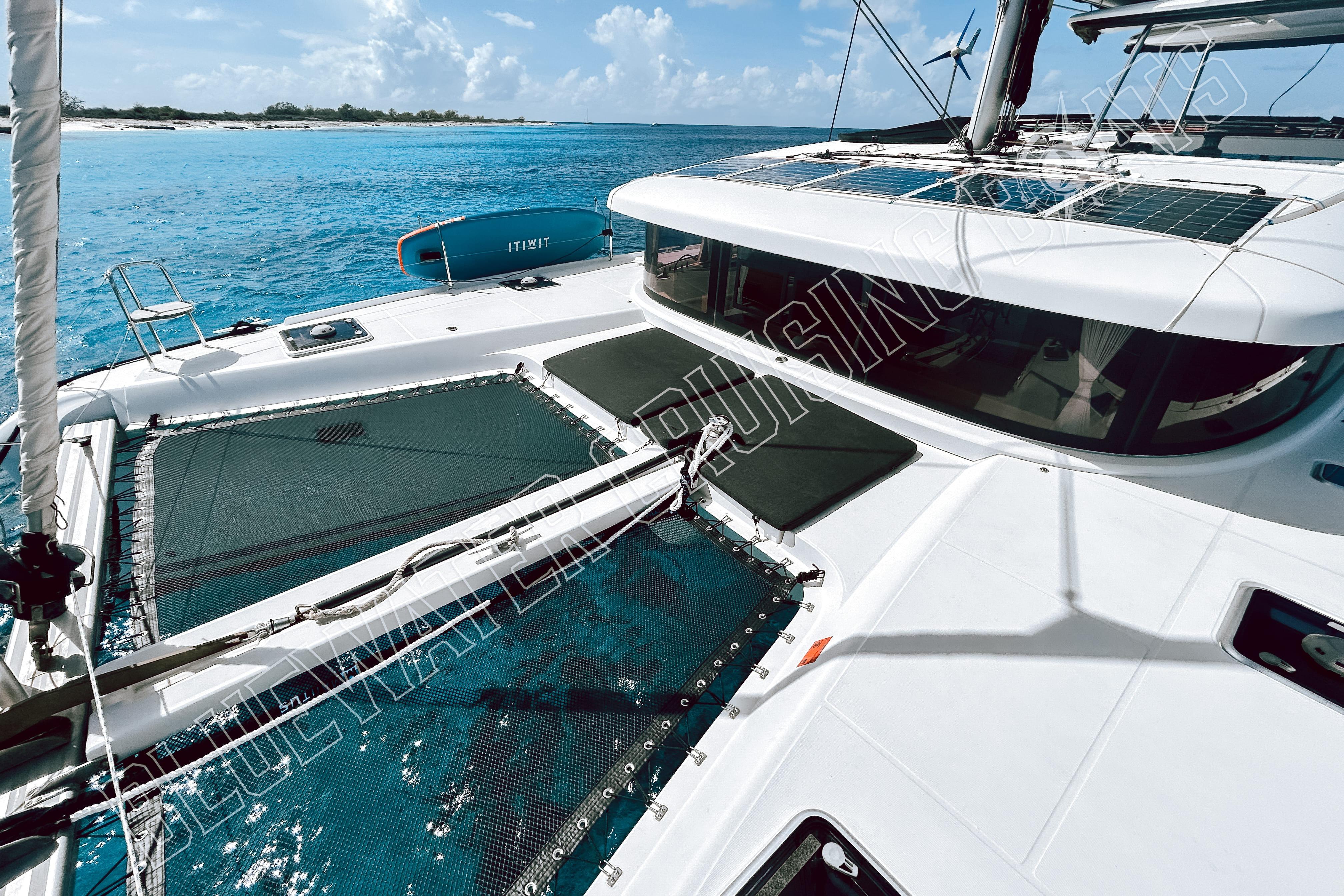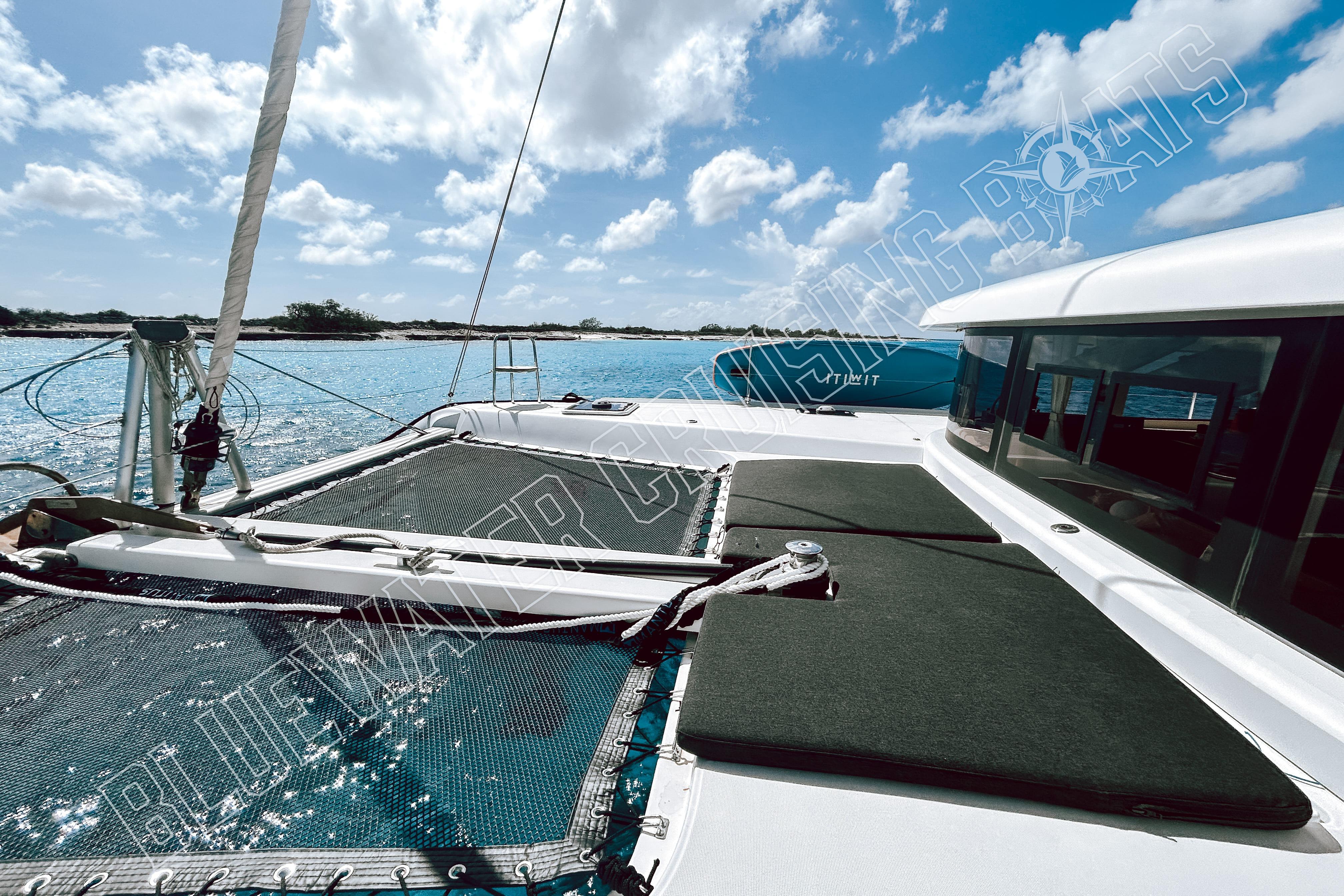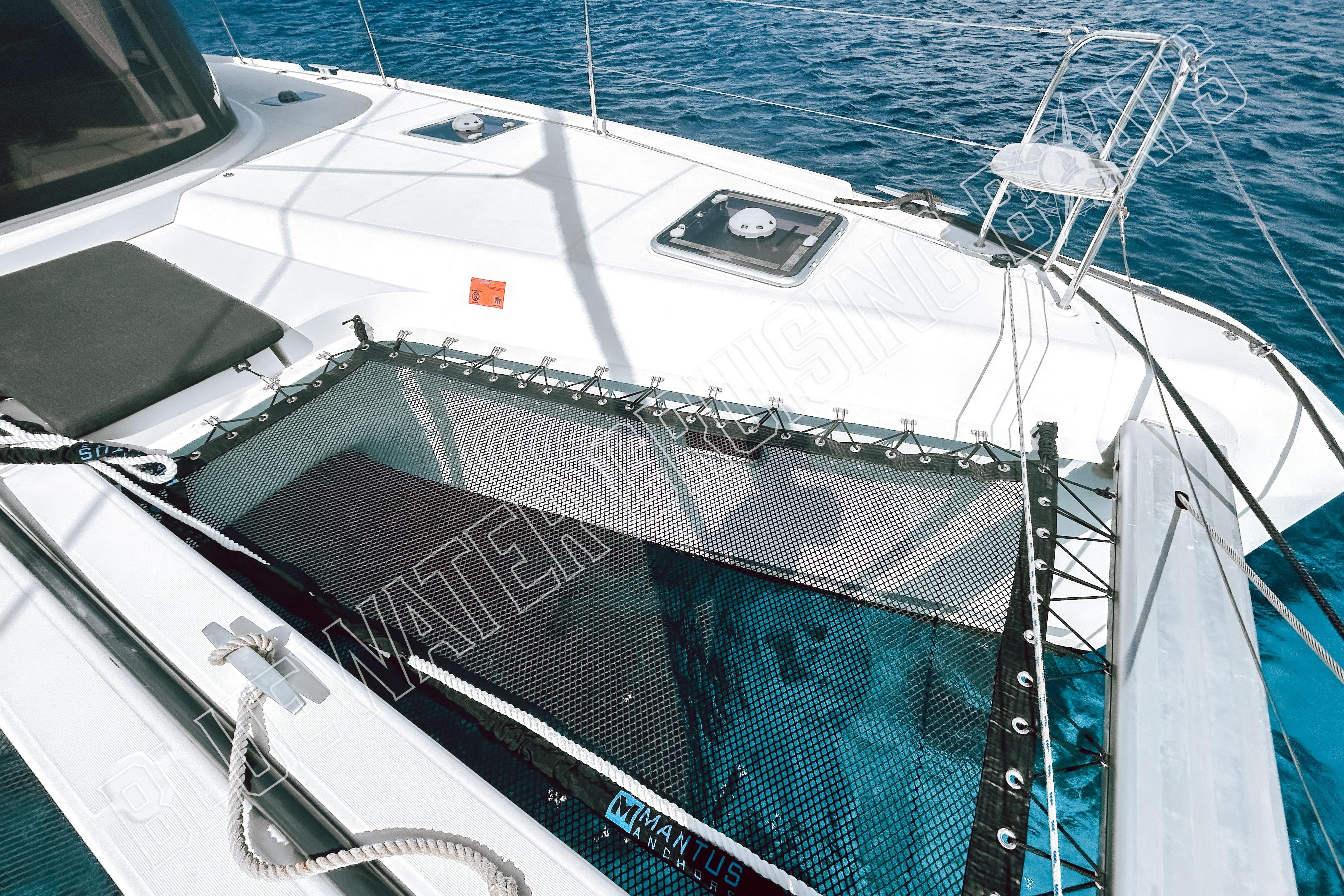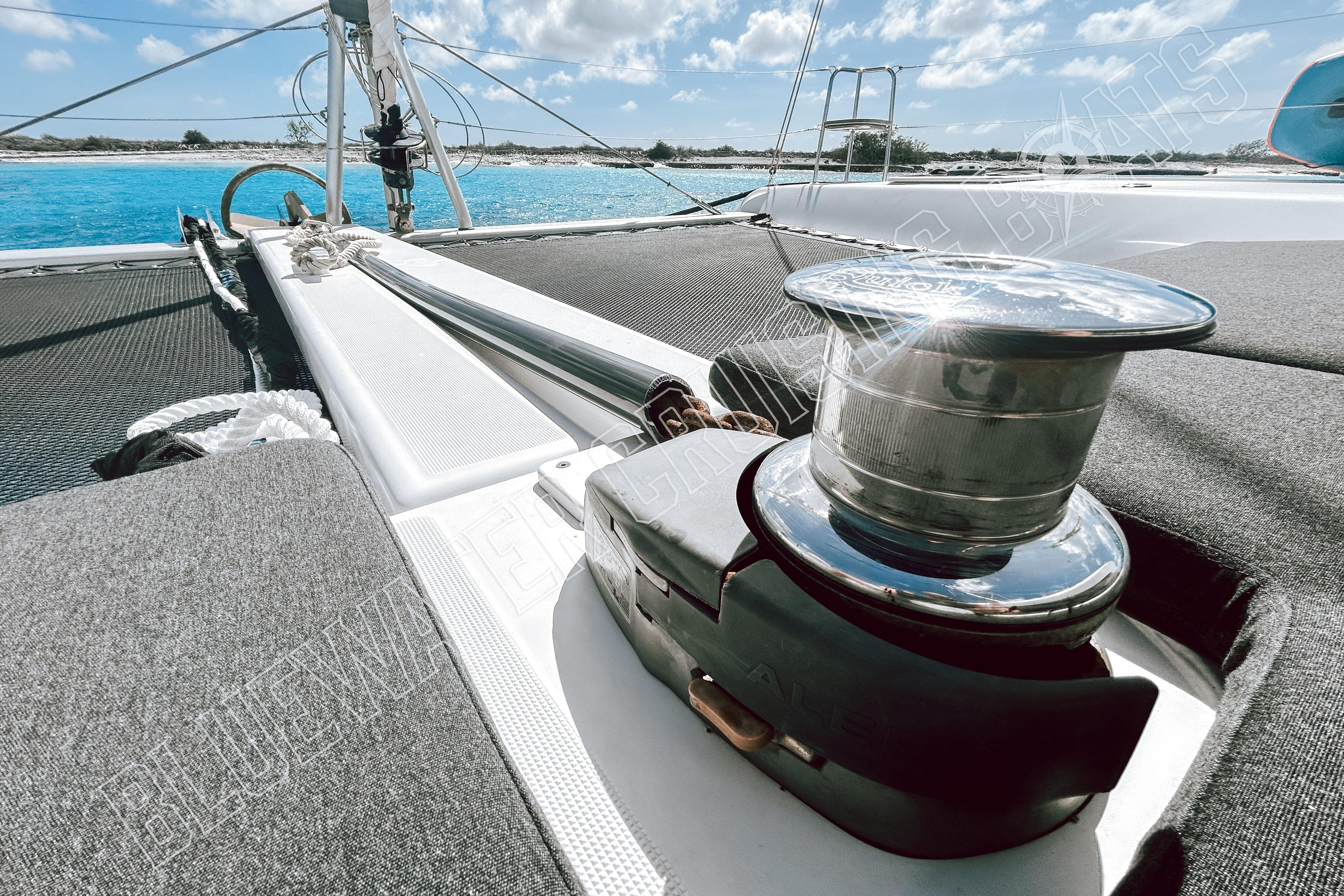 MAXIM’S bow is crafted for both reliability and relaxation, with a broad, reinforced deck that allows for safe movement and efficient line handling during docking and anchoring. The signature Lagoon trampoline stretches between the twin sponsons, providing a comfortable spot to lounge whether underway or at anchor. The Allpa 4 kW generator is conveniently housed in a protected hatch for easy access. Robust ground tackle includes a 73lb Rocna anchor and 260’ of 3/8” chain, all managed by a powerful Quick Aleph AL3 1100W windlass with drum and secured by a Mantus anchor bridle for peace of mind in any anchorage.