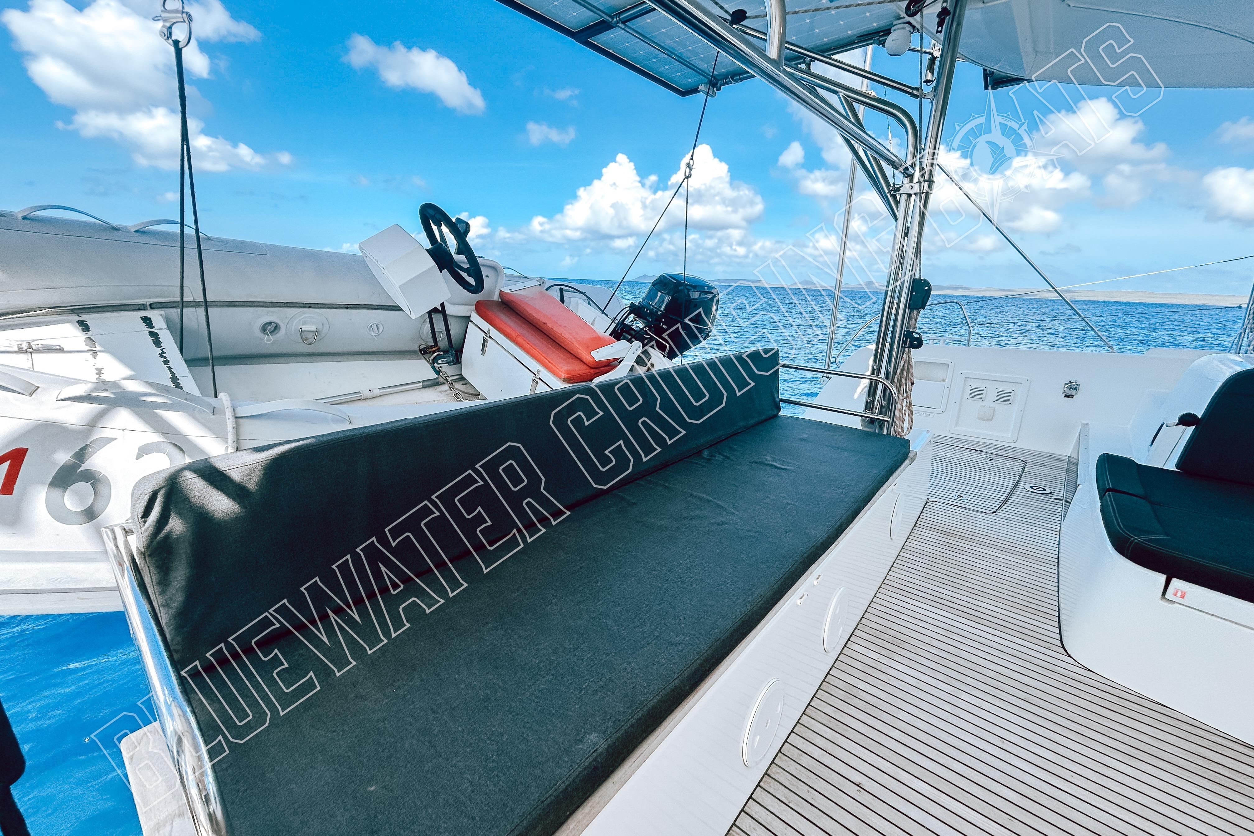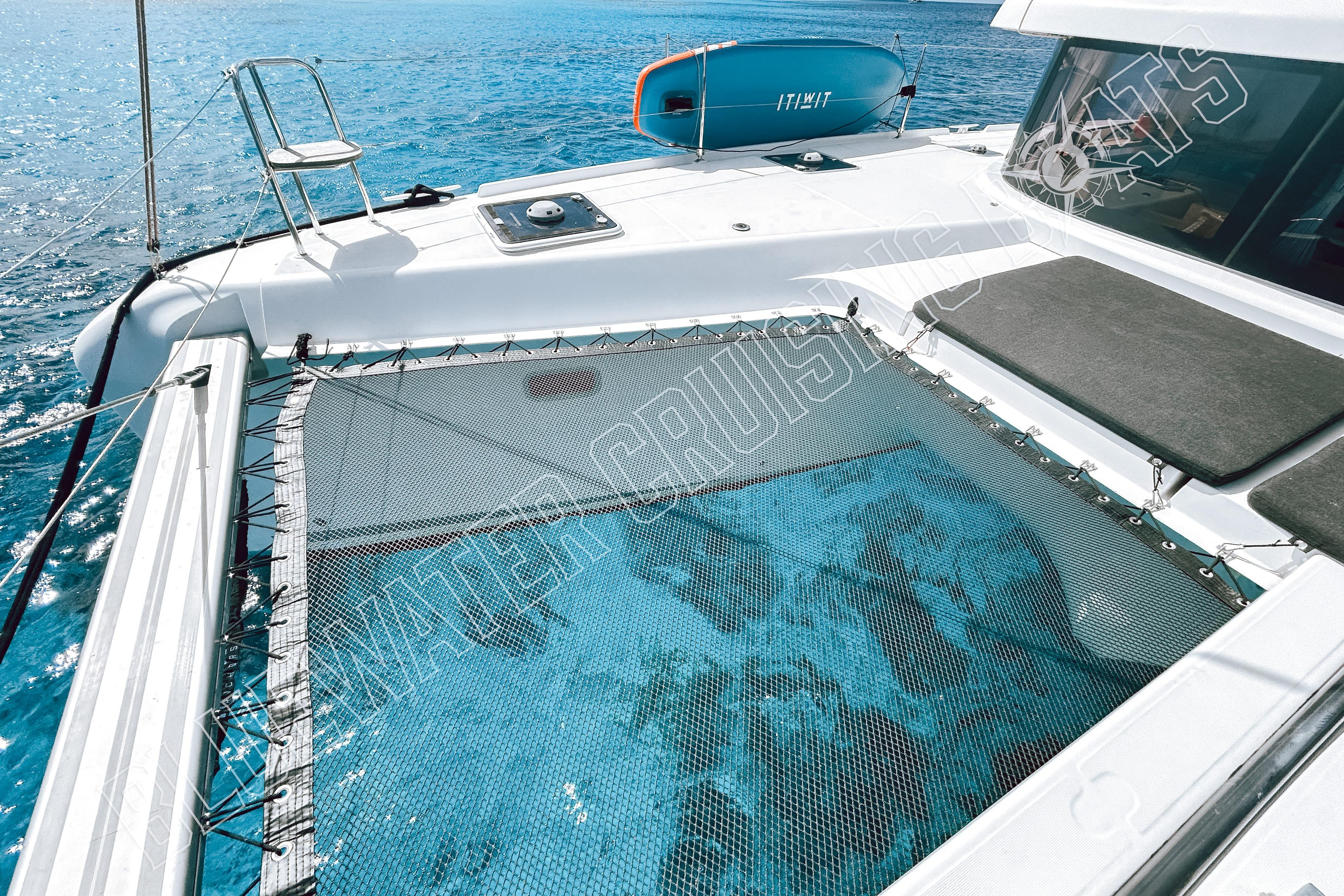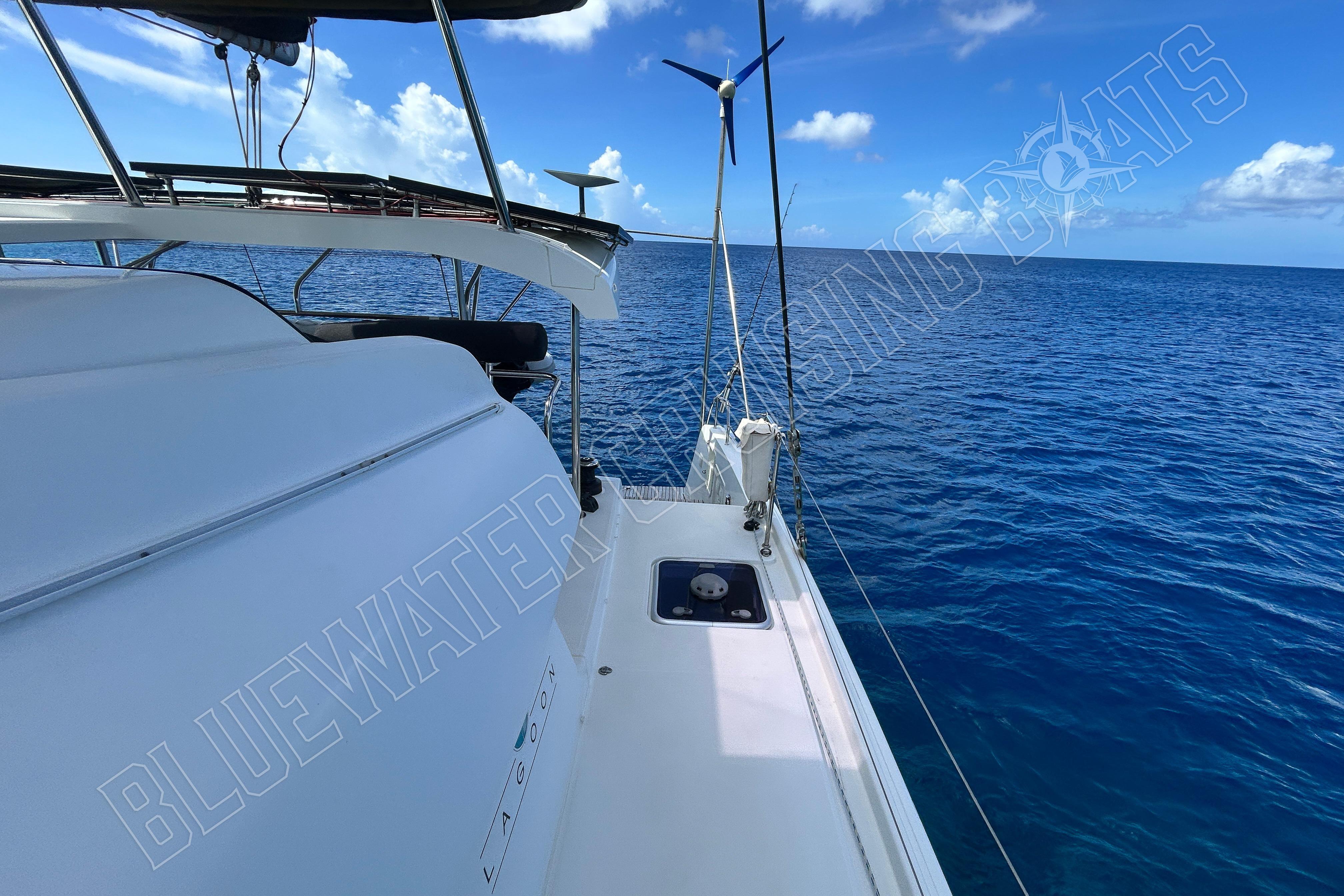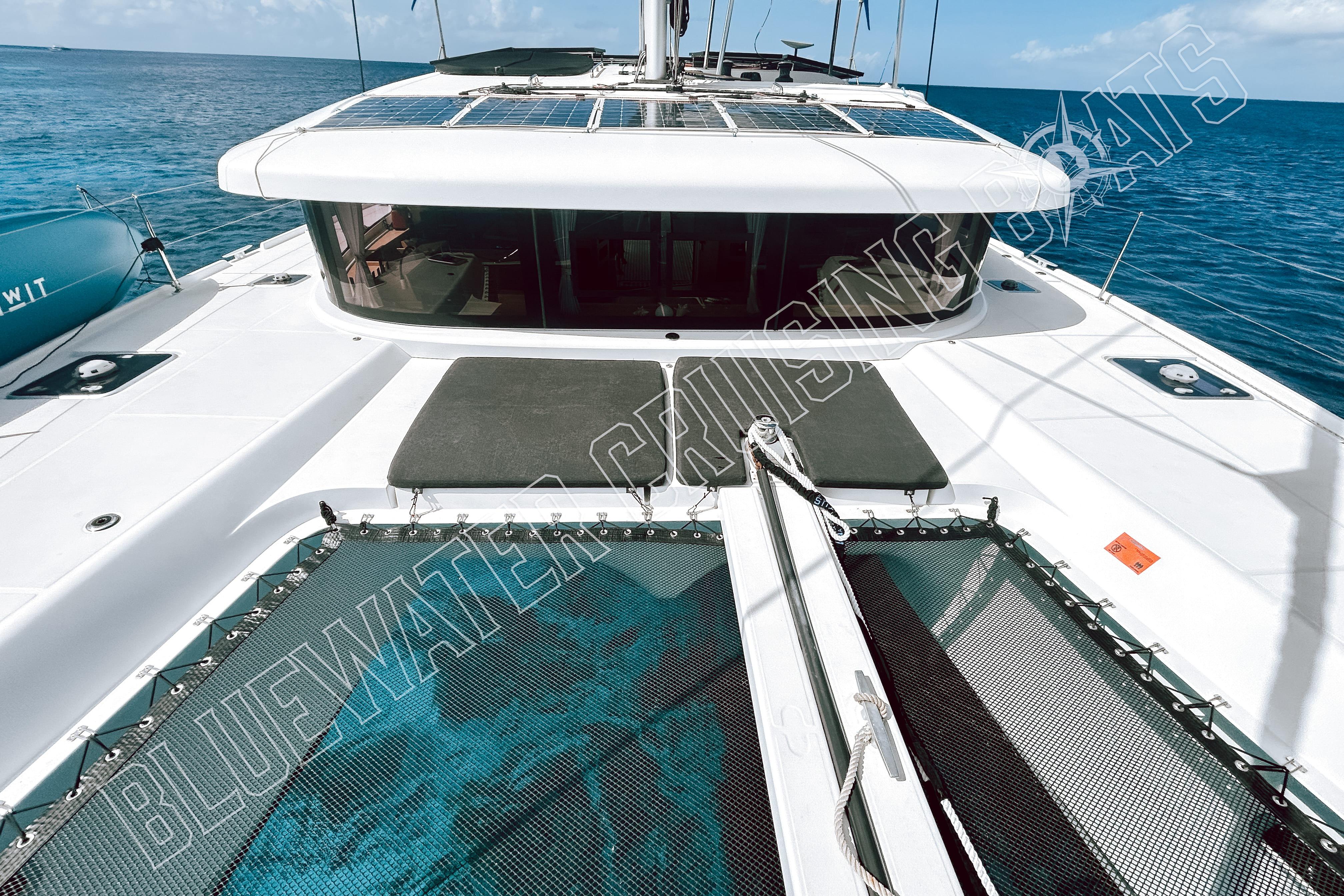MAXIM’S bow is crafted for both reliability and relaxation, with a broad, reinforced deck that allows for safe movement and efficient line handling during docking and anchoring. The signature Lagoon trampoline stretches between the twin sponsons, providing a comfortable spot to lounge whether underway or at anchor. The Allpa 4 kW generator is conveniently housed in a protected hatch for easy access. Robust ground tackle includes a 73lb Rocna anchor and 260’ of 3/8” chain, all managed by a powerful Quick Aleph AL3 1100W windlass with drum and secured by a Mantus anchor bridle for peace of mind in any anchorage.