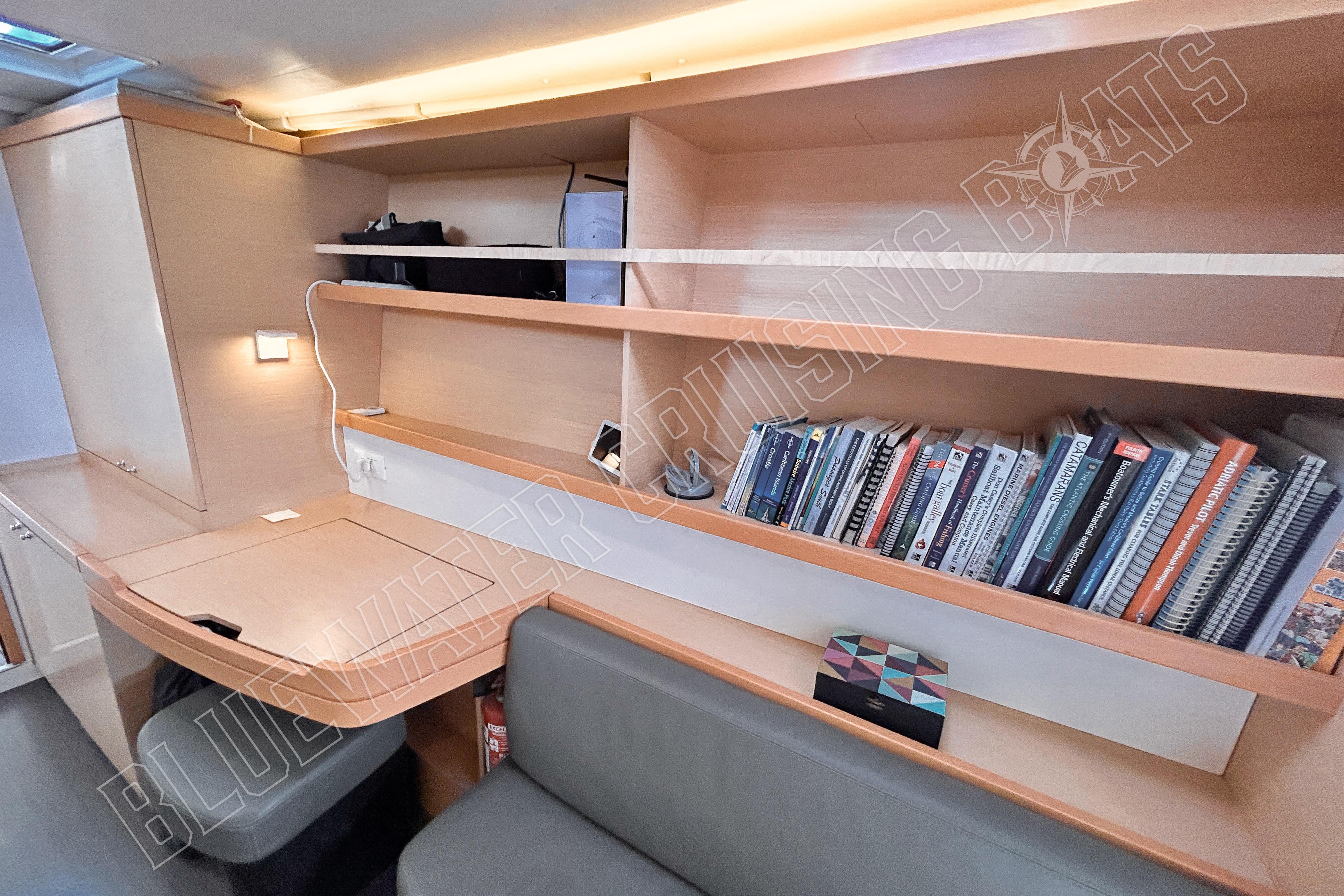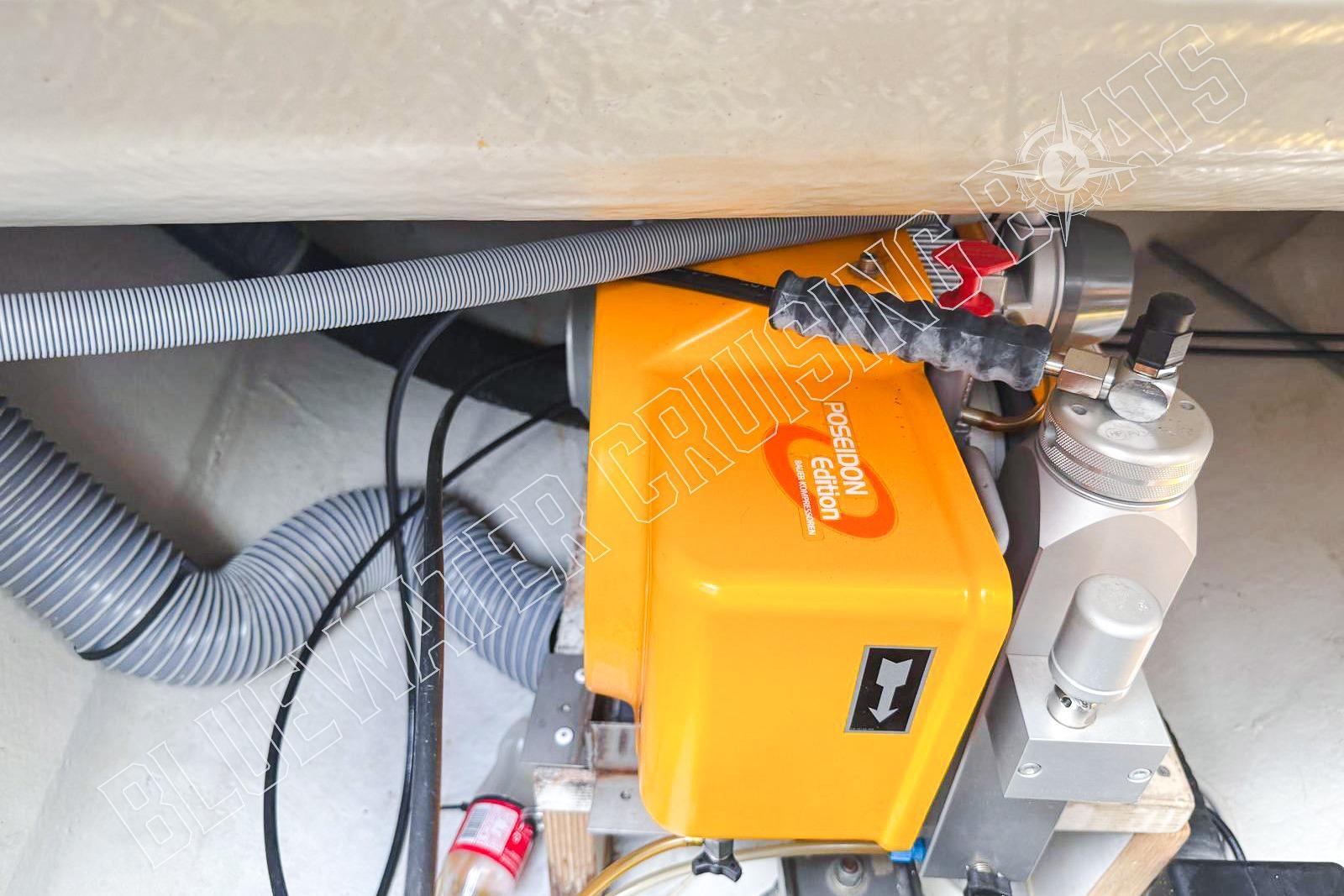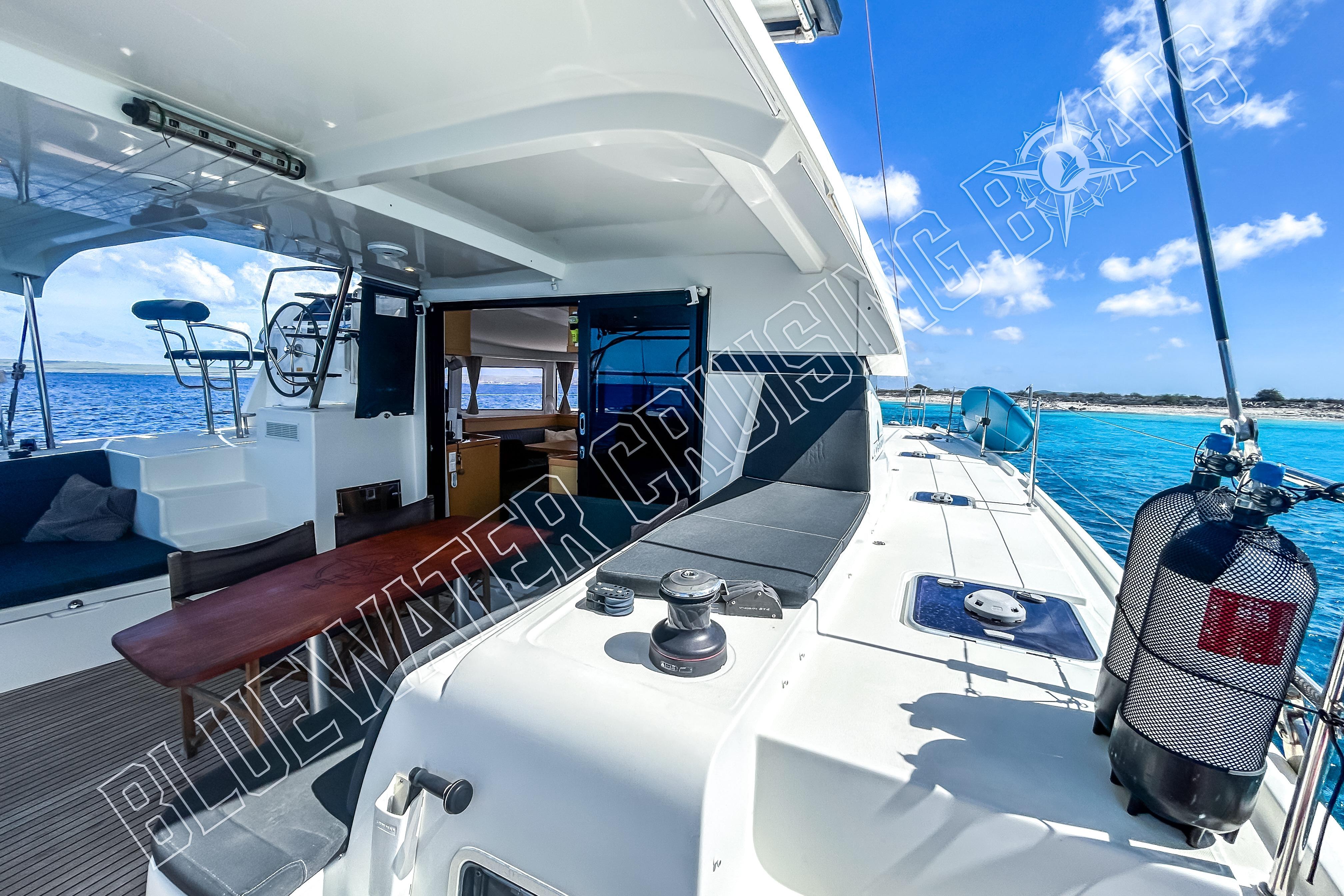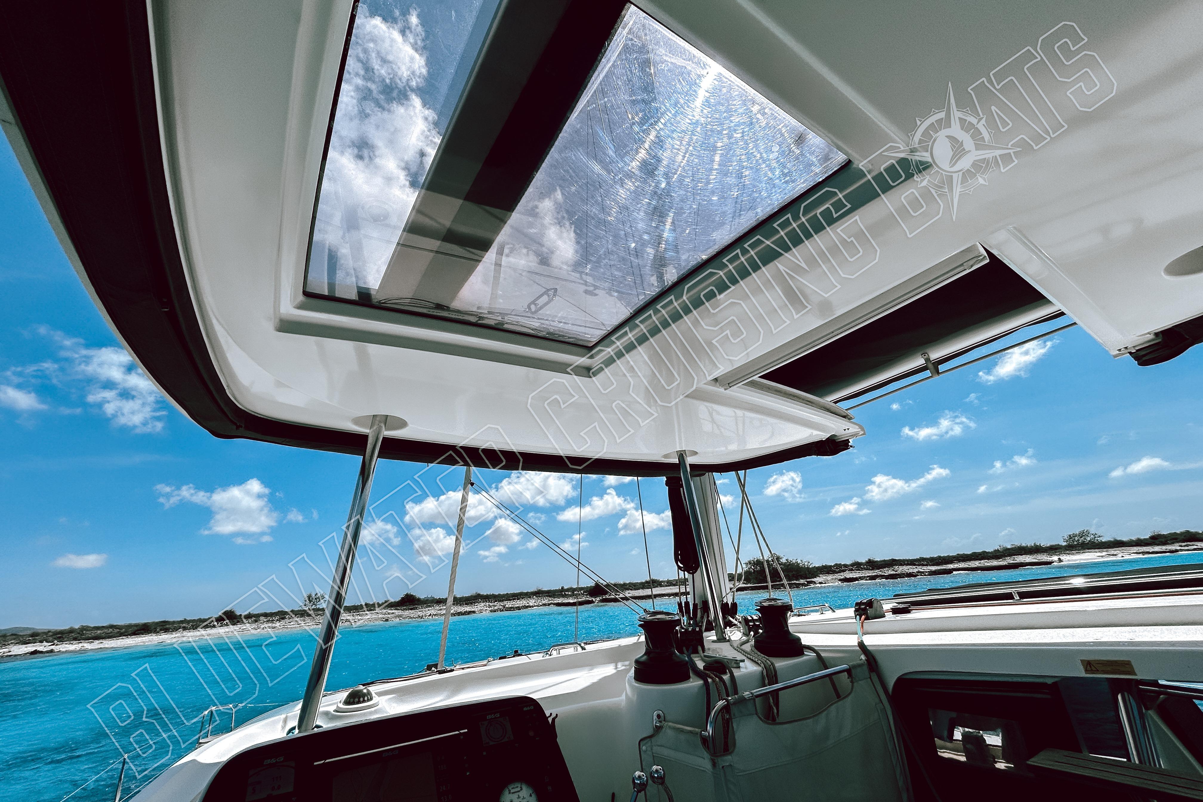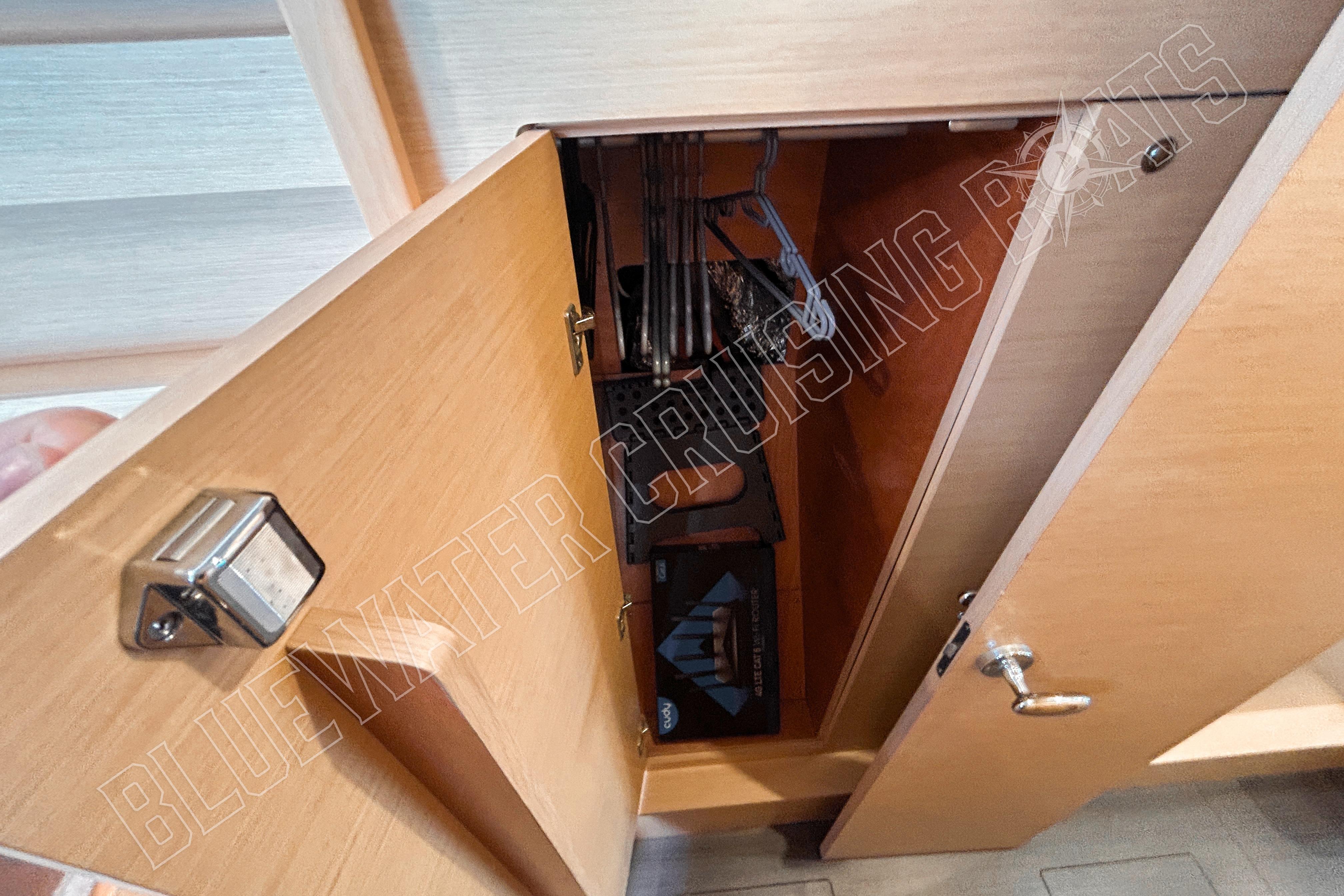 MAXIM’S bow is crafted for both reliability and relaxation, with a broad, reinforced deck that allows for safe movement and efficient line handling during docking and anchoring. The signature Lagoon trampoline stretches between the twin sponsons, providing a comfortable spot to lounge whether underway or at anchor. The Allpa 4 kW generator is conveniently housed in a protected hatch for easy access. Robust ground tackle includes a 73lb Rocna anchor and 260’ of 3/8” chain, all managed by a powerful Quick Aleph AL3 1100W windlass with drum and secured by a Mantus anchor bridle for peace of mind in any anchorage.