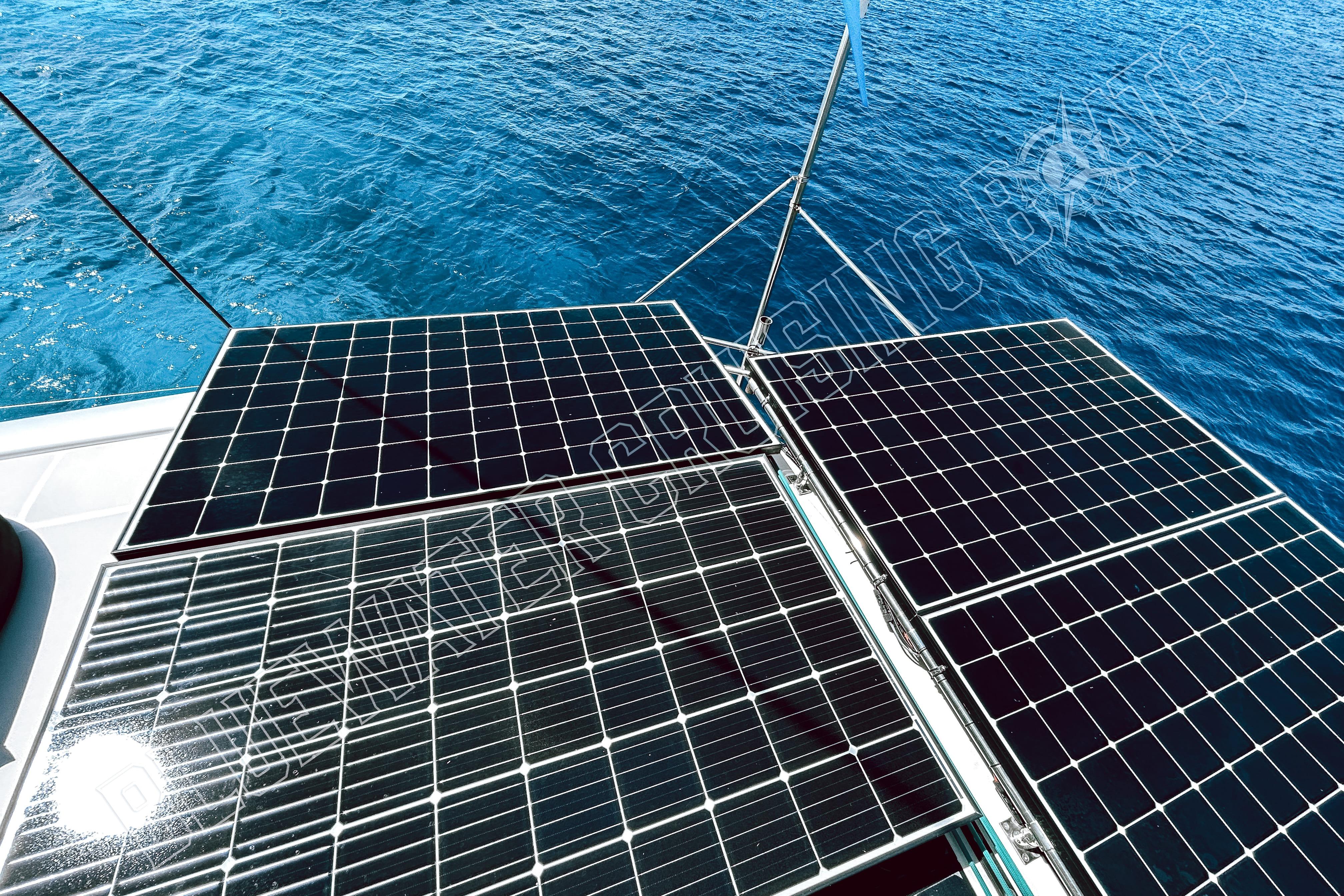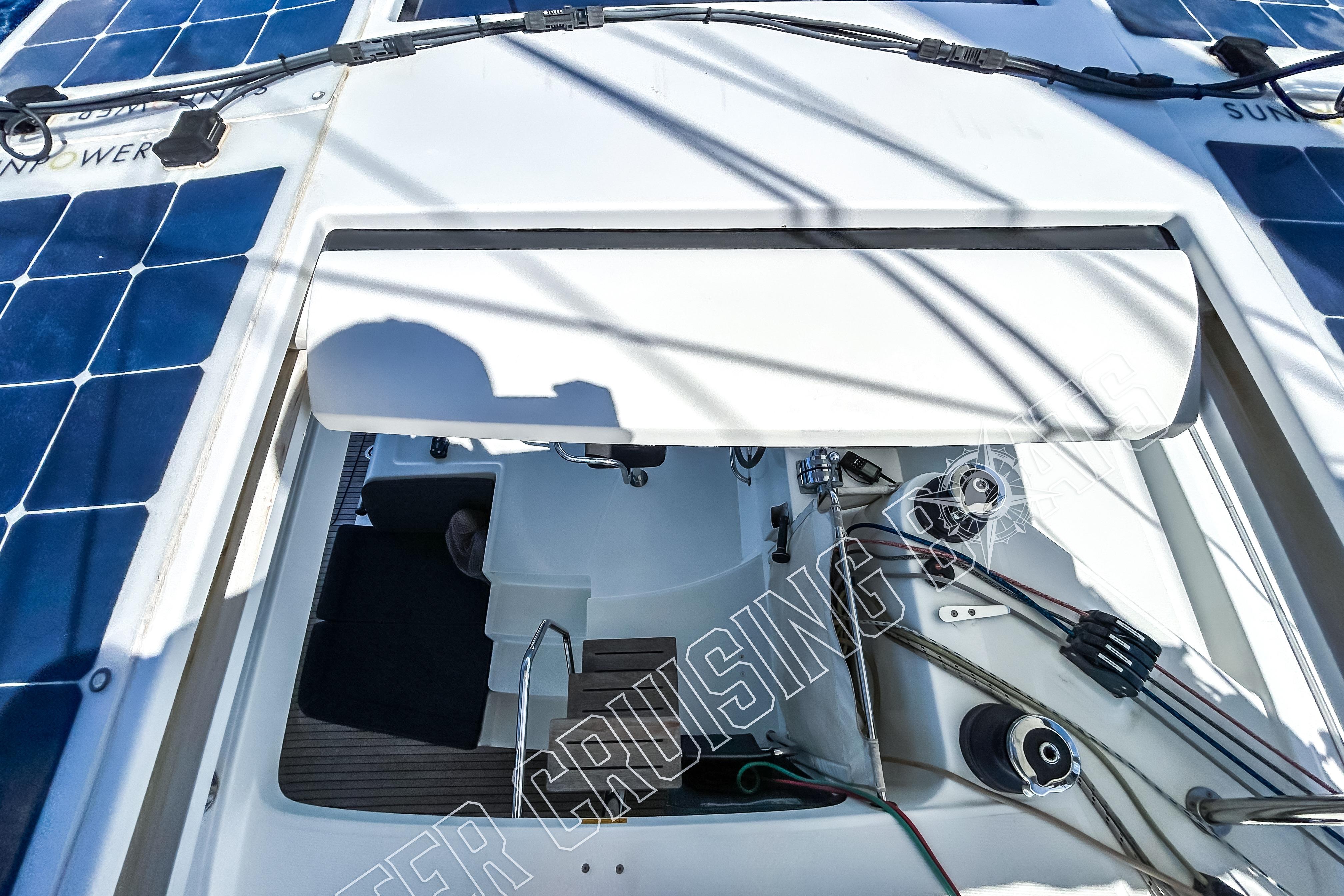 Steps leading to aft cockpit roof/hardtop with sun pad and solar panels