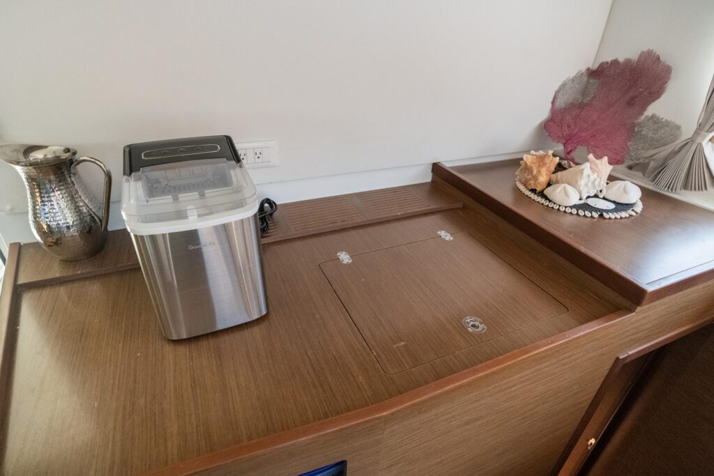 • Fully equipped galley including cookware, dishware, coffee maker, countertop ice maker, and Margaritaville machine