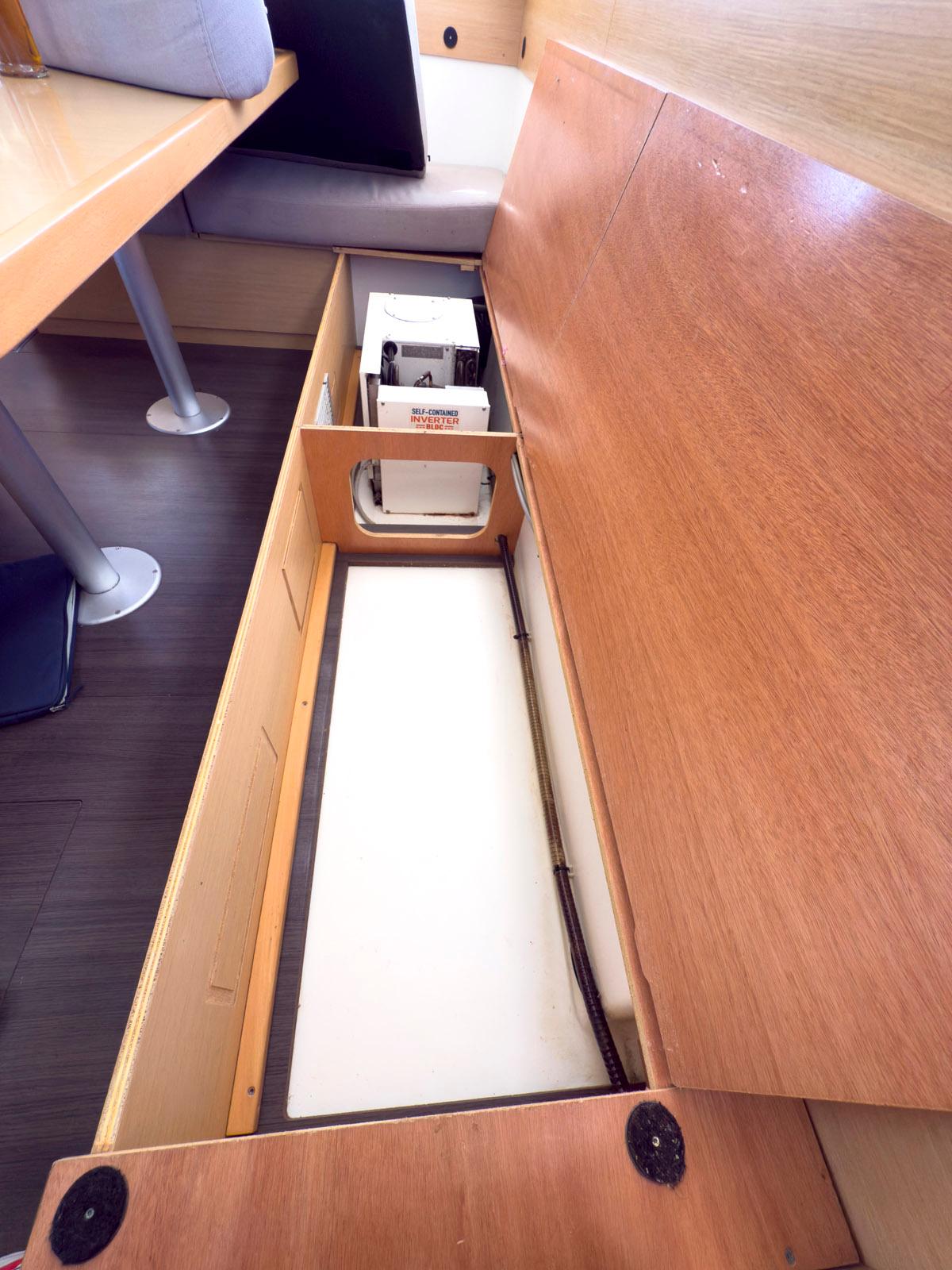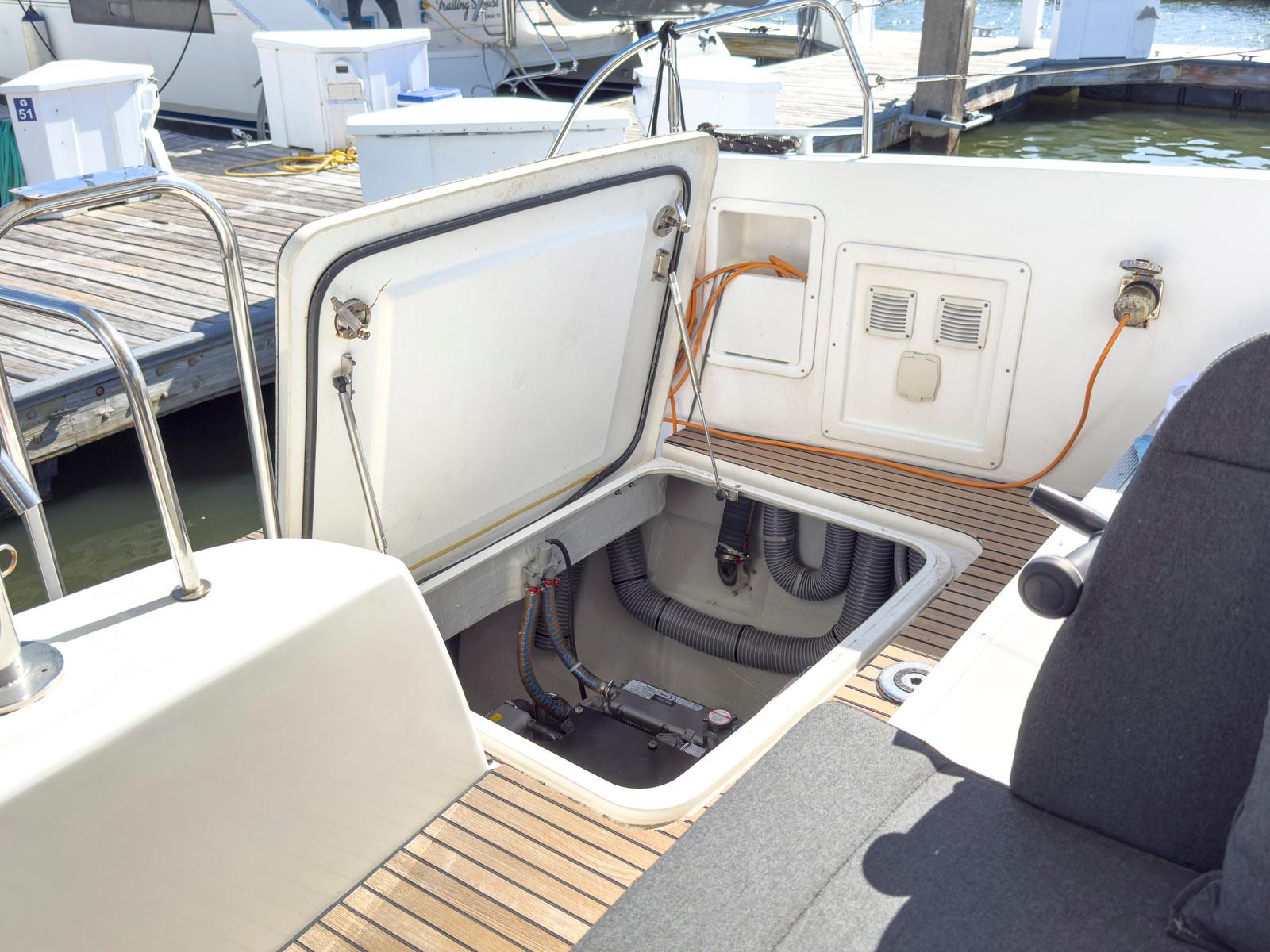 Cockpit: Cockpit table, bench seat, Cockpit cushions, Propane locker with 2 tanks, fridge