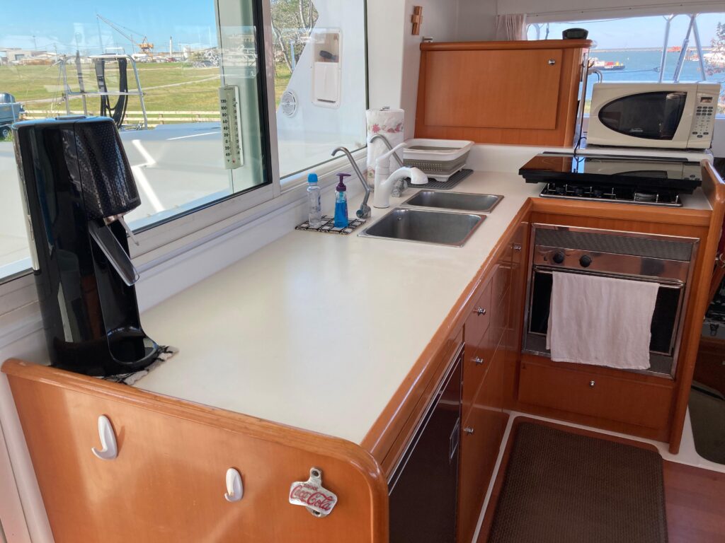 The result is a rare opportunity: a proven, comfortable cruising catamaran with the waterline length, reserve buoyancy, and wave-piercing characteristics typically found on much larger performance cats.