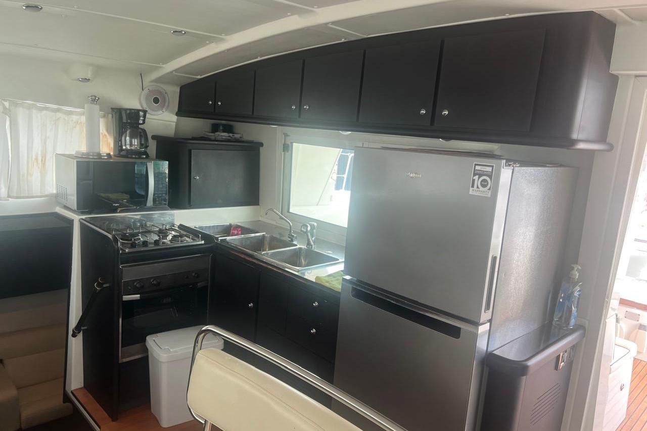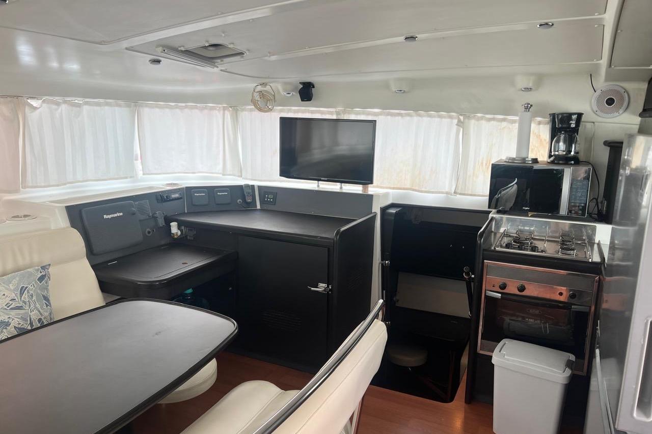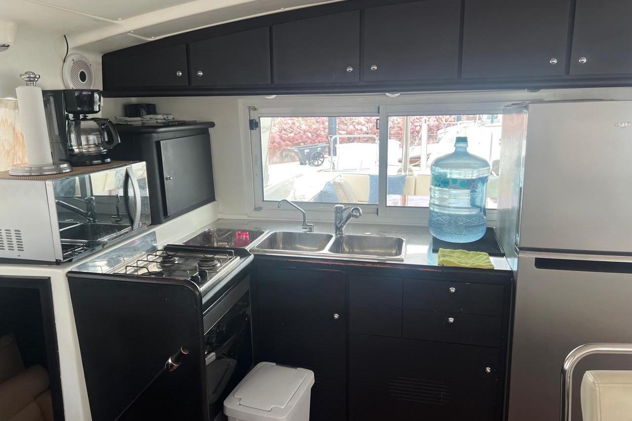 • Galley in main salon to starboard with direct access to cockpit through sliding window