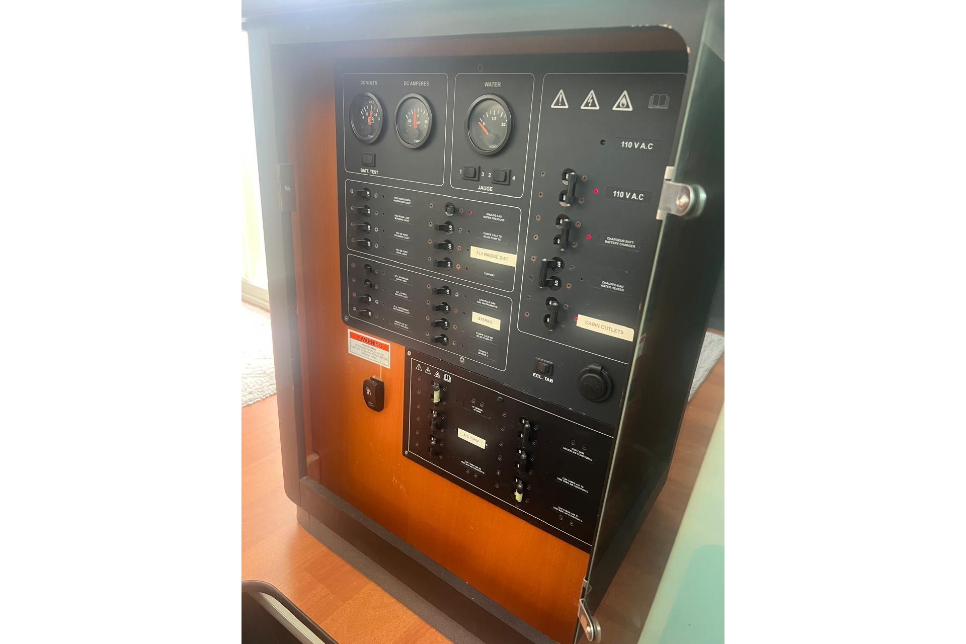 • Main 12V electrical panel with plexi door on port side of salon next to companionway