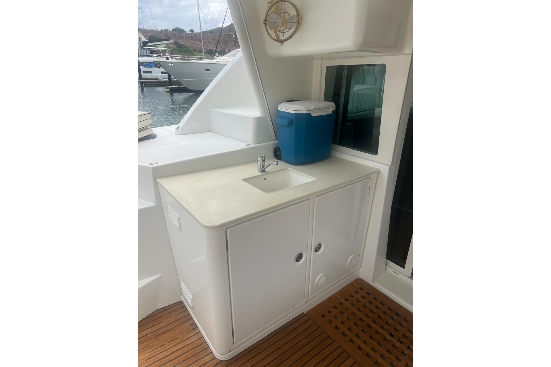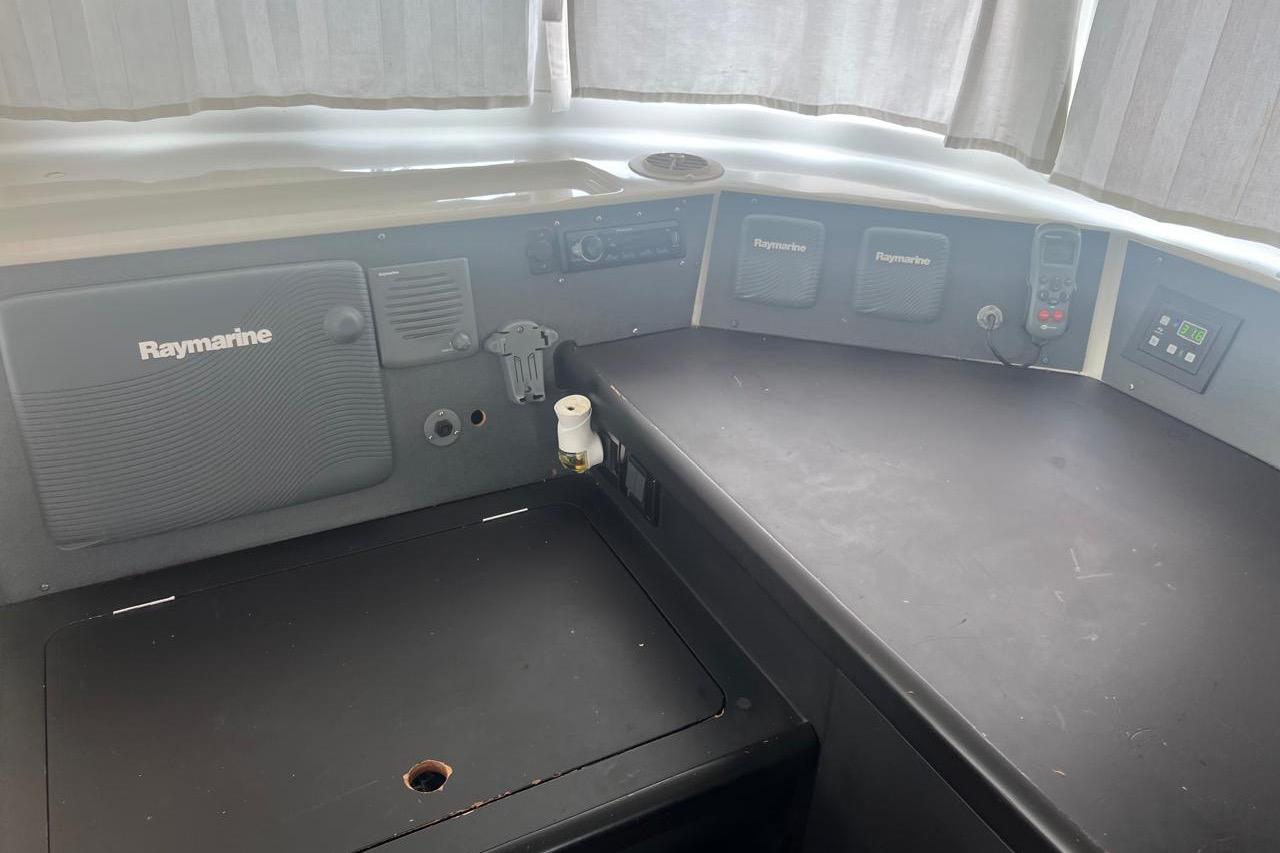 • Large storage locker on port side of cockpit with wet bar ; other options available (cockpit fridge,icemaker, etc?)
