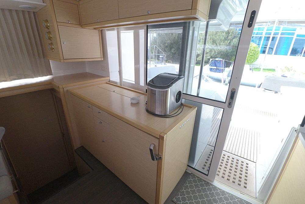 Fully equipped for short escapes or longer journeys, Belo features air conditioning and a generator, well-equipped galley with ice maker, coffee machine, and an extra fridge in the cockpit.