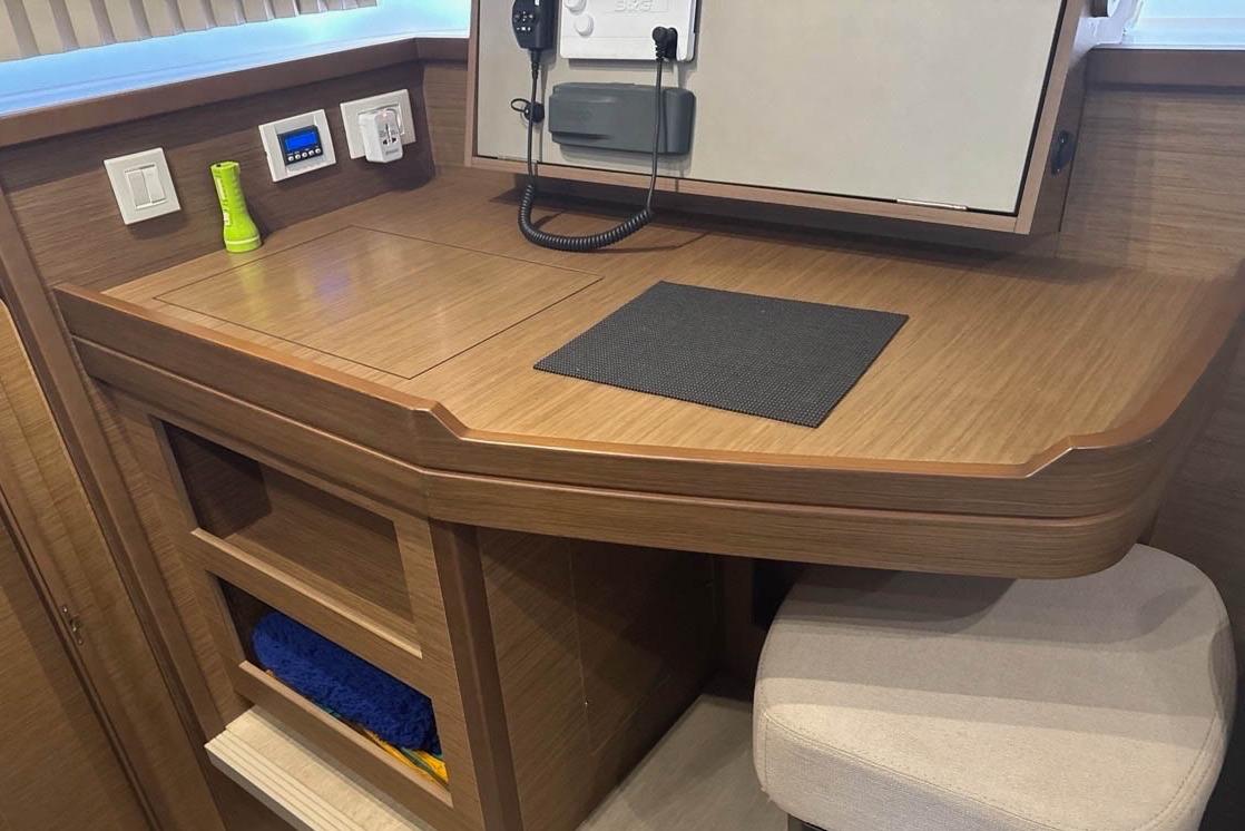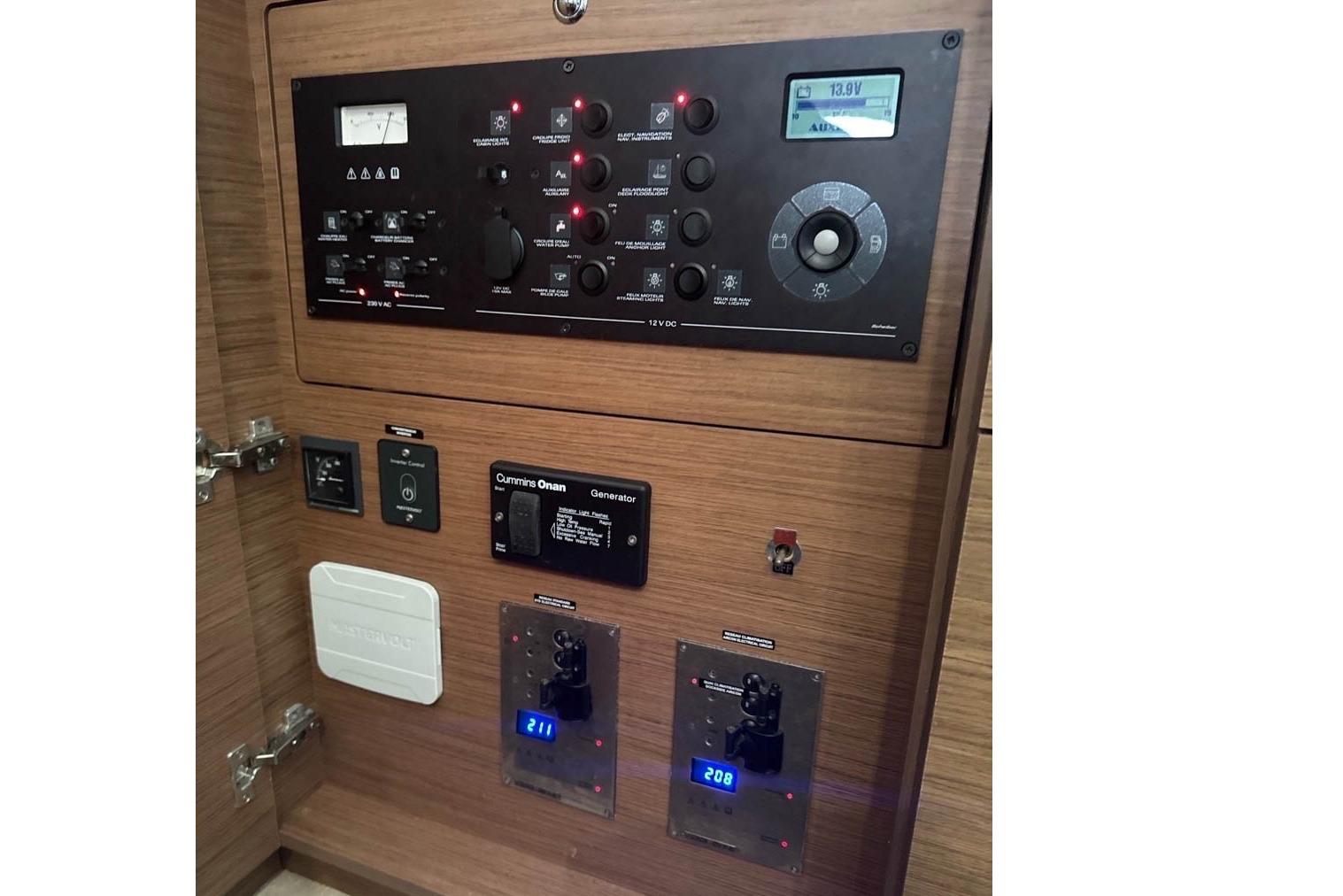 The yachts specification includes a fully battened square top mainsail, furling genoa, upgraded electric winches, crew cabin, she is equipped for extended cruising with Cruisair 48,000 BTU air-conditioning, electric toilets, ONAN 11 Kw generator with 696hrs, Rain-Man watermaker, solar panels, rigid bimini top, B&G Zeus³ navigation suite, Highfield CL 340 dinghy & 20hp Yamaha outboard and much more.