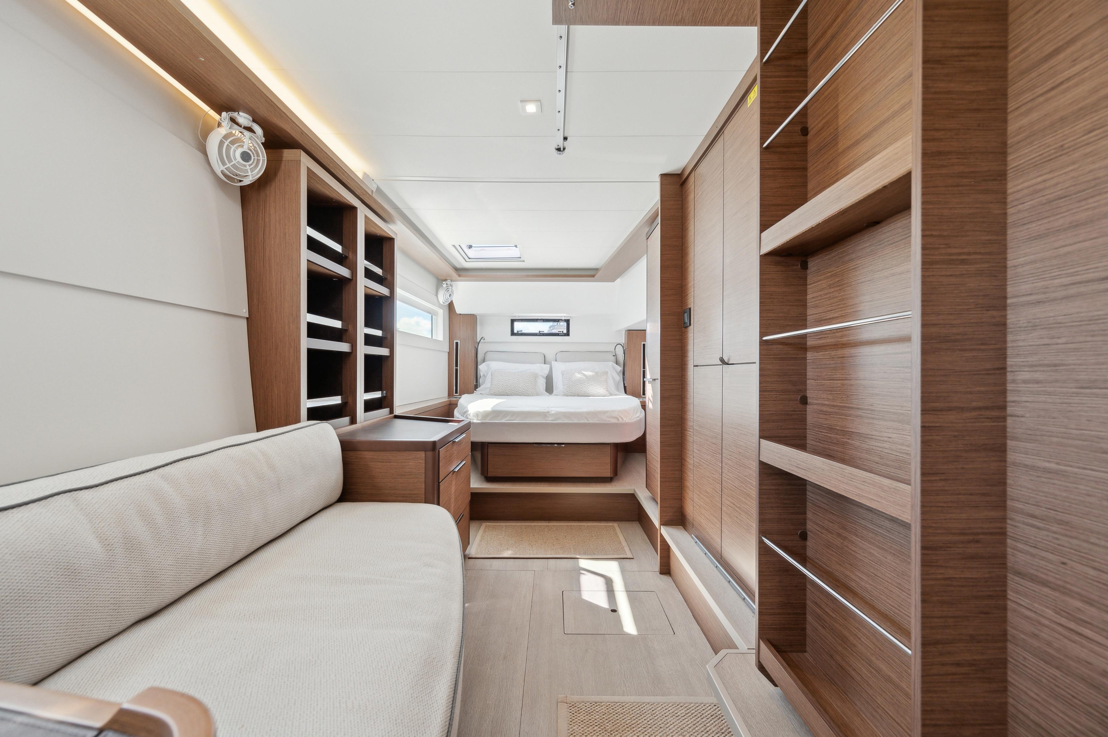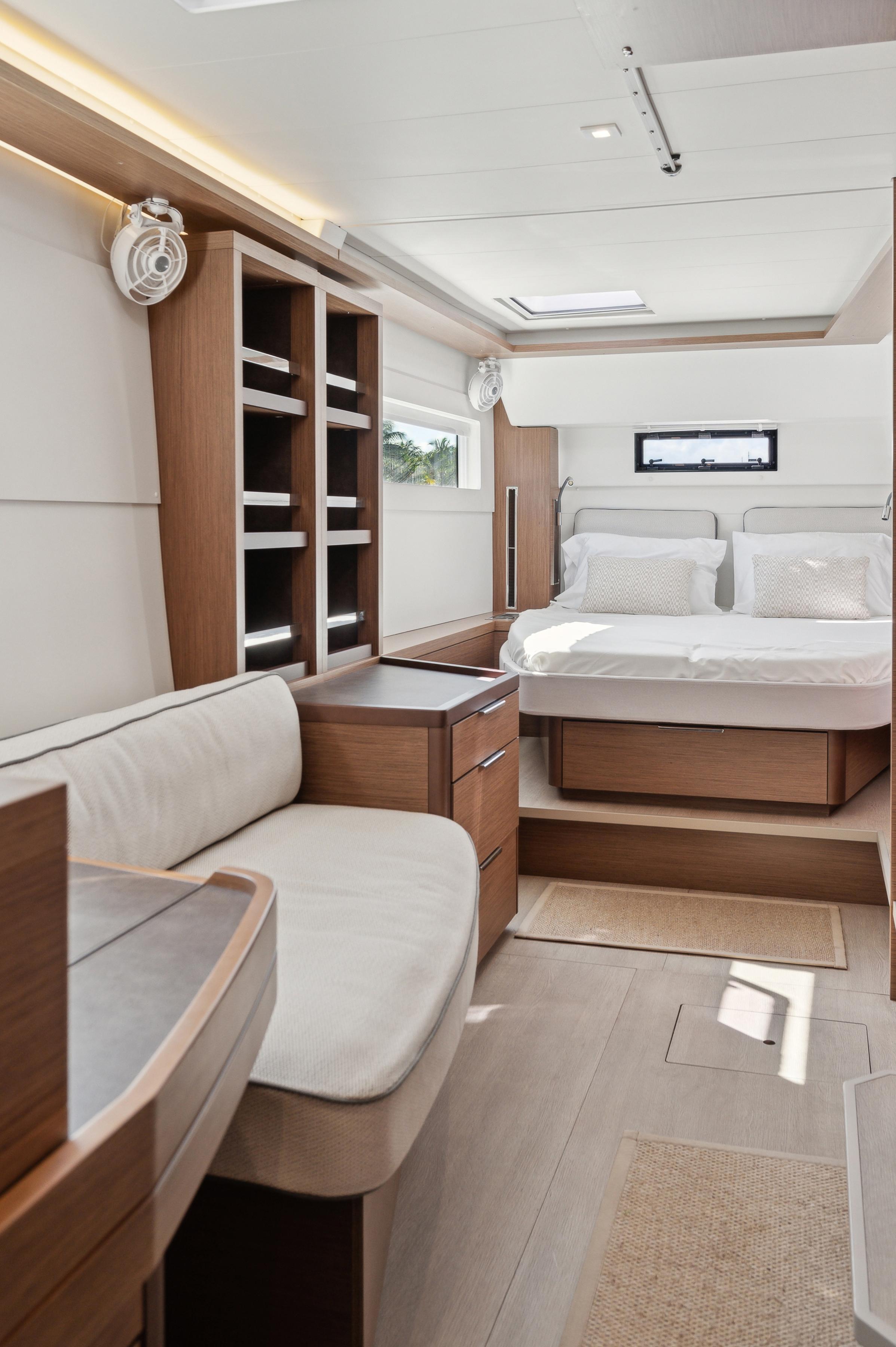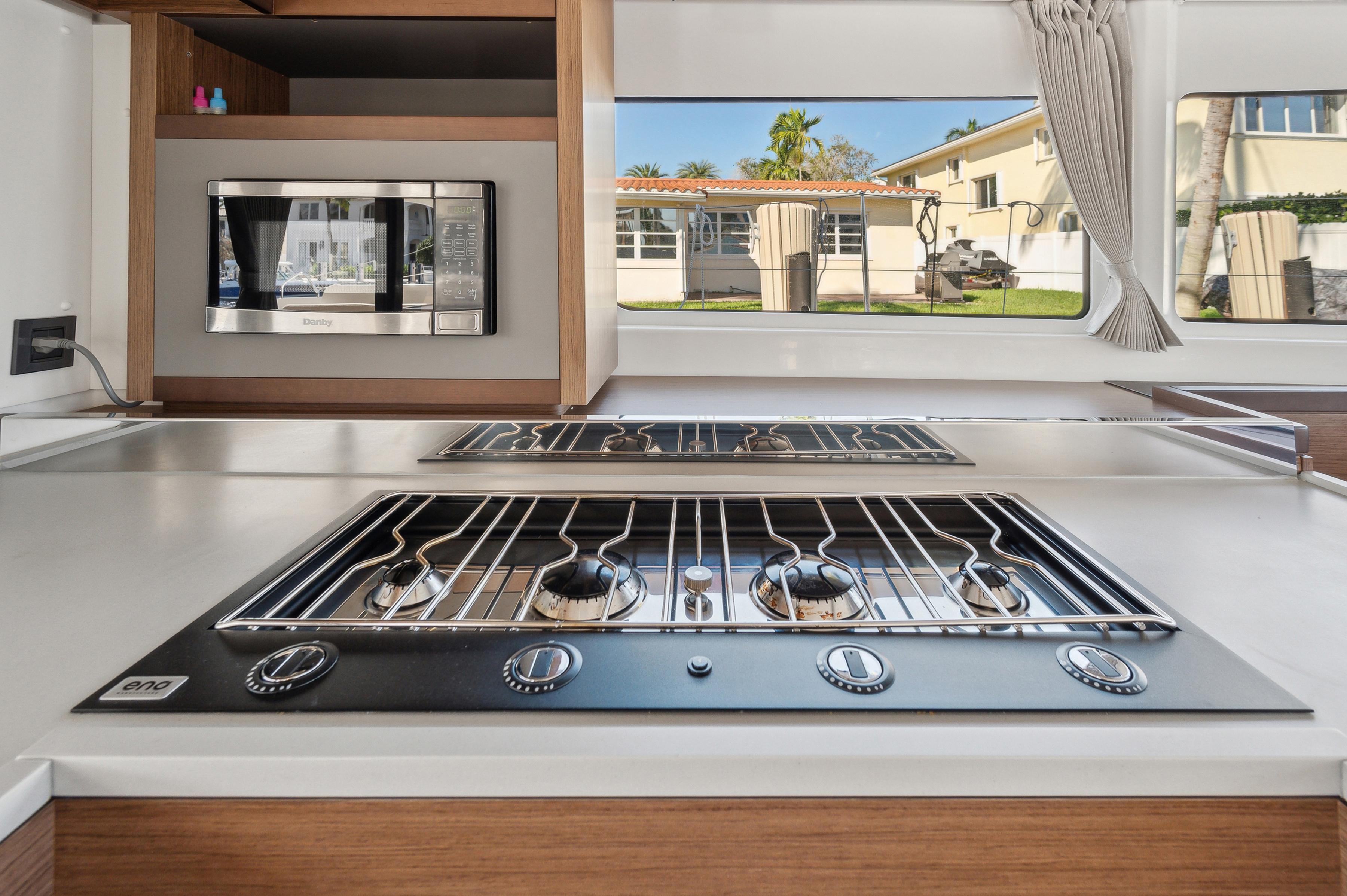 Step inside and youre welcomed by Lagoons iconic brightness and interior volume, enhanced by panoramic windows and generous headroom (6'5"). The salon connects seamlessly to the cockpit with a large sliding glass door, creating one expansive social space.