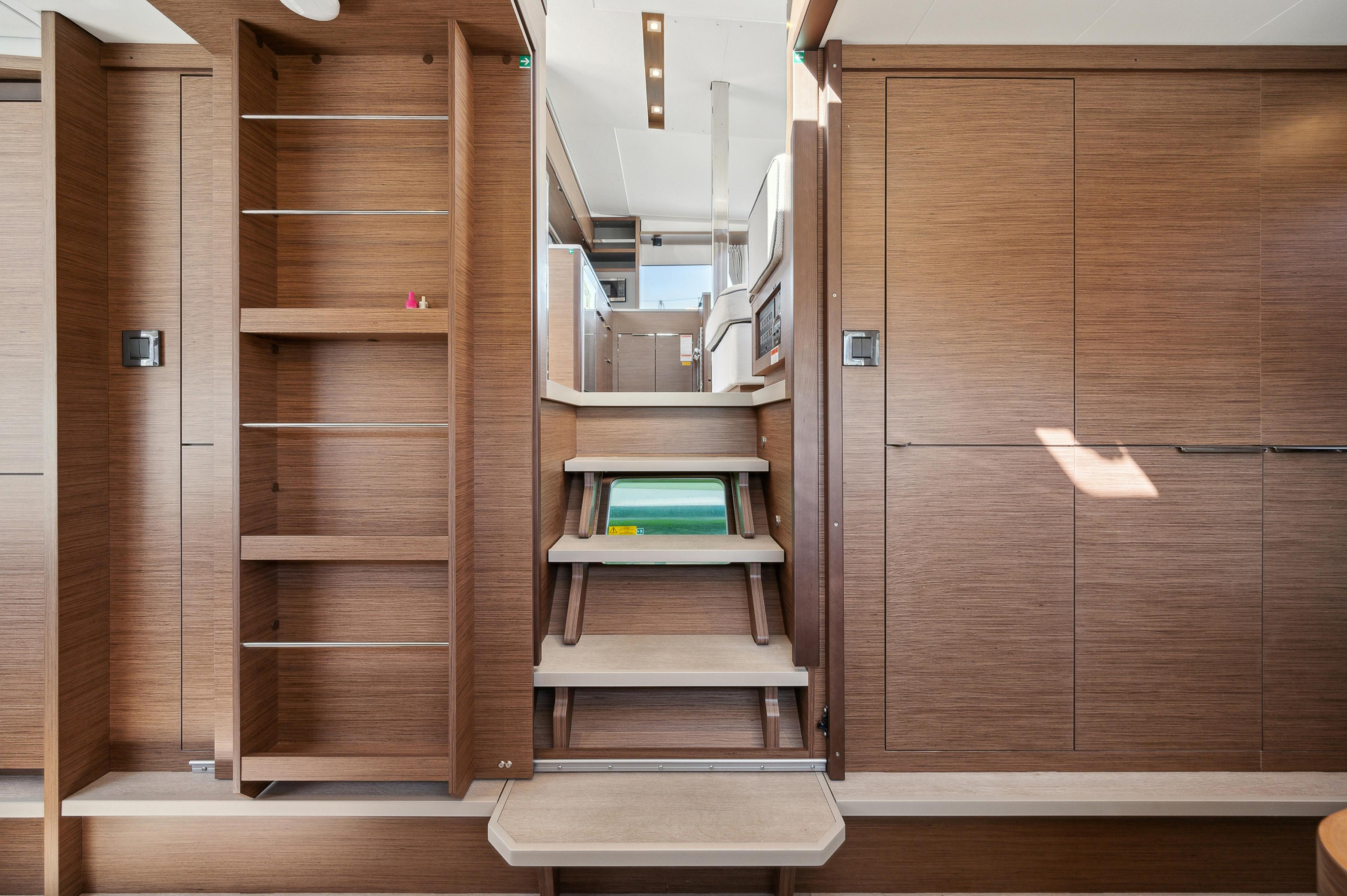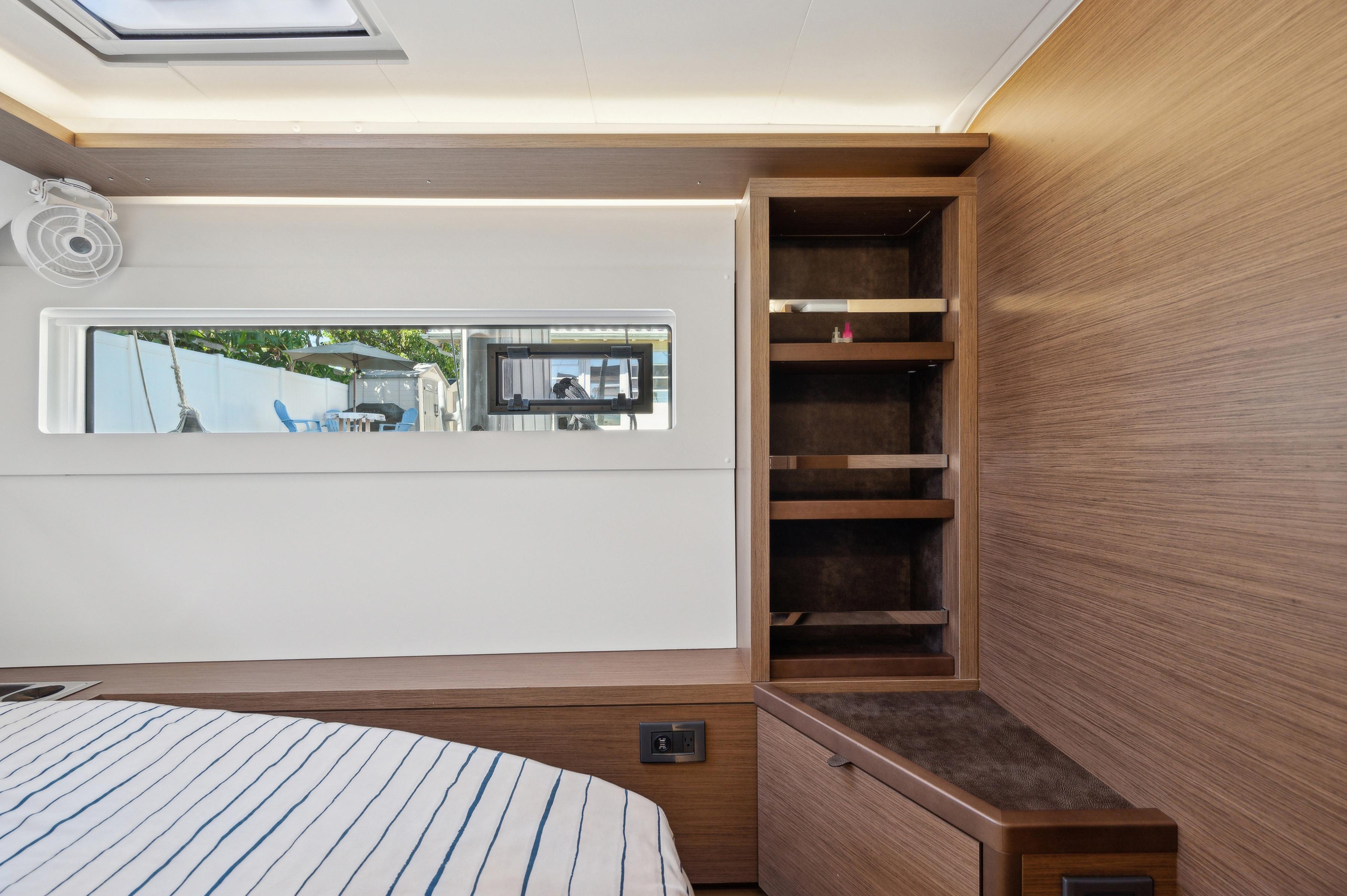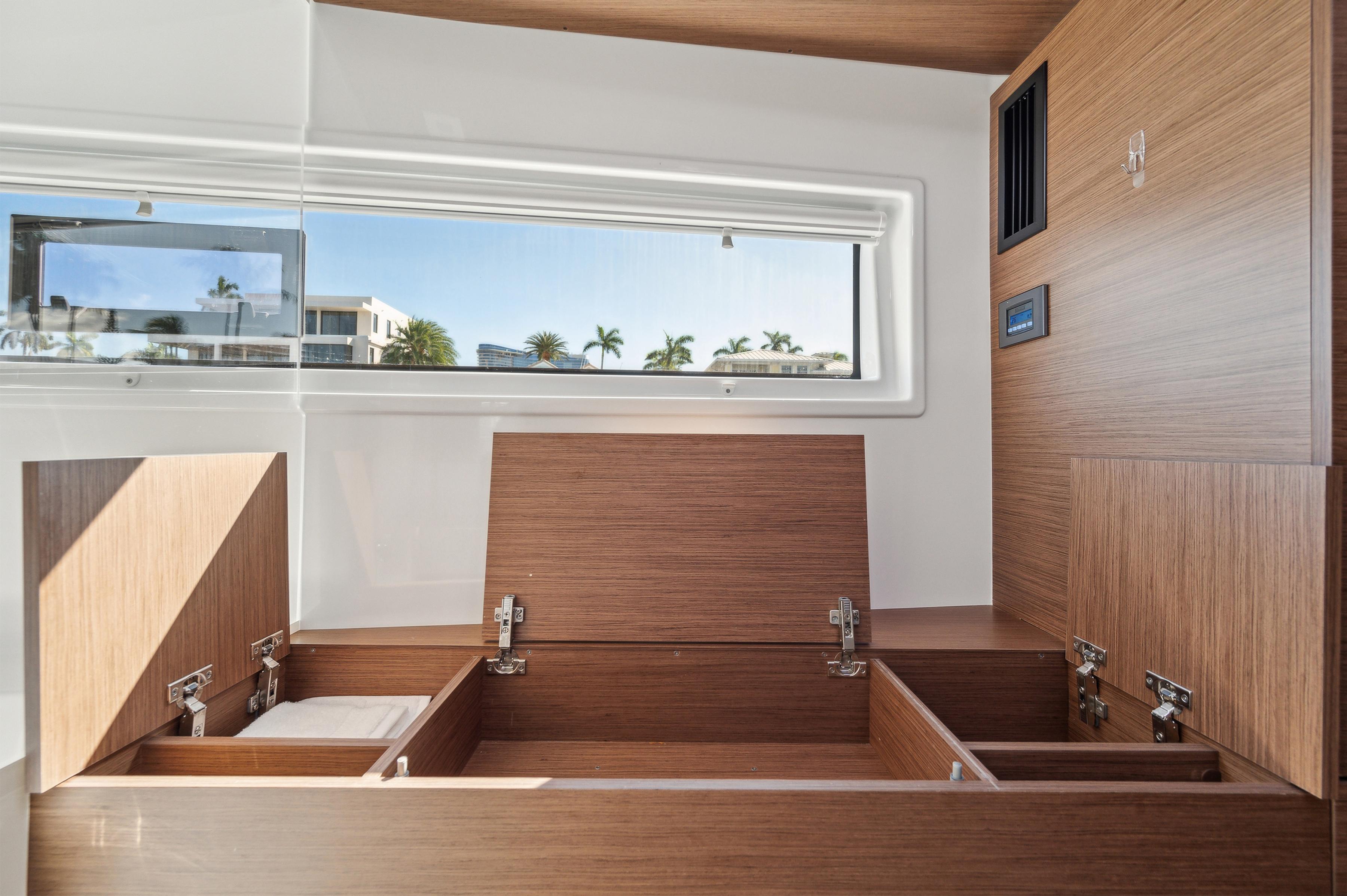 Step inside and youre welcomed by Lagoons iconic brightness and interior volume, enhanced by panoramic windows and generous headroom (6'5"). The salon connects seamlessly to the cockpit with a large sliding glass door, creating one expansive social space.