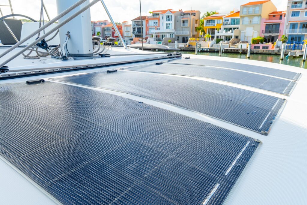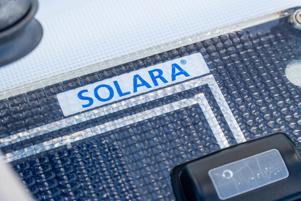 4 x Solara 115W (460W Total) Flexible panels mounted on the forward coachroof