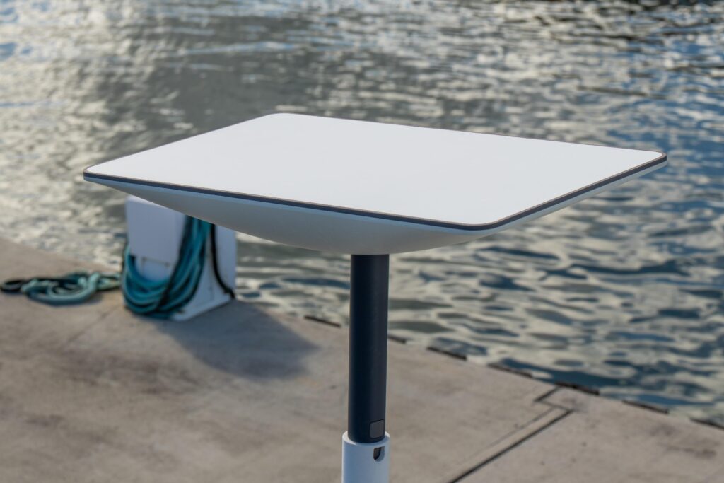 This can be lowered to launch the tender and turn into a sunbathing area underneath the solar arch
