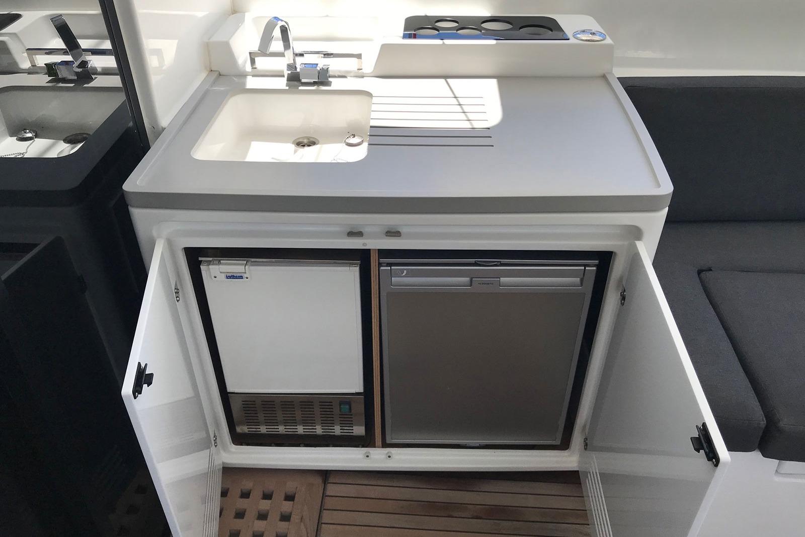 Multi-use aft cockpit: The large, open-plan, aft cockpit of the Lagoon 50 features an L-shaped lounge area that is very comfortable for general leisure while in the evening can be transformed into a dining area, seating all guests for a meal. Small wet bar with sink and icemaker is perfectly placed for serving drinks.