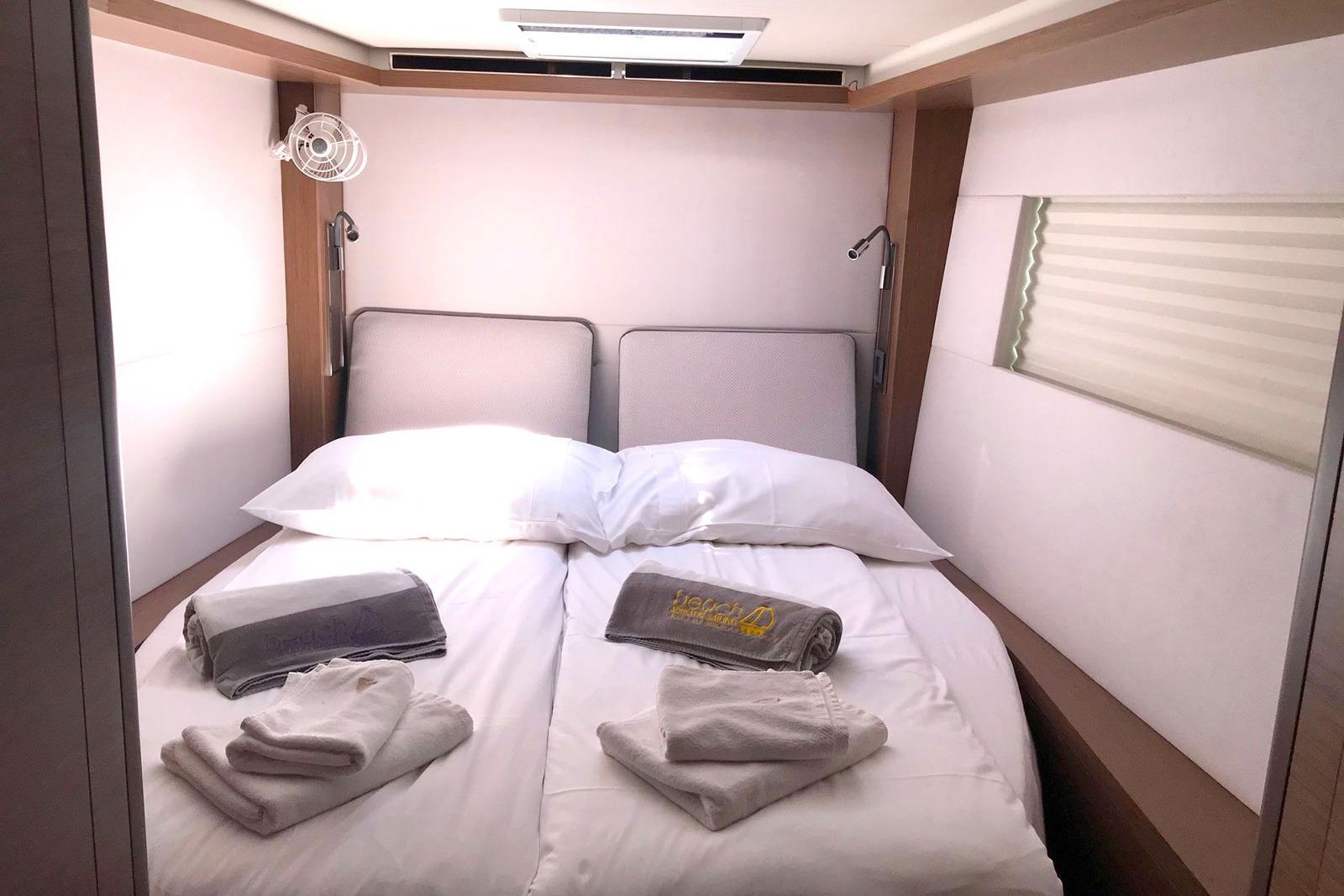 Lagoon 50 – Adriatic Leopard, accommodates up to maximum 12 people in 4 double cabins with en-suite bathrooms, 2 single cabins amid ship, 2 crew cabins in the bow.
