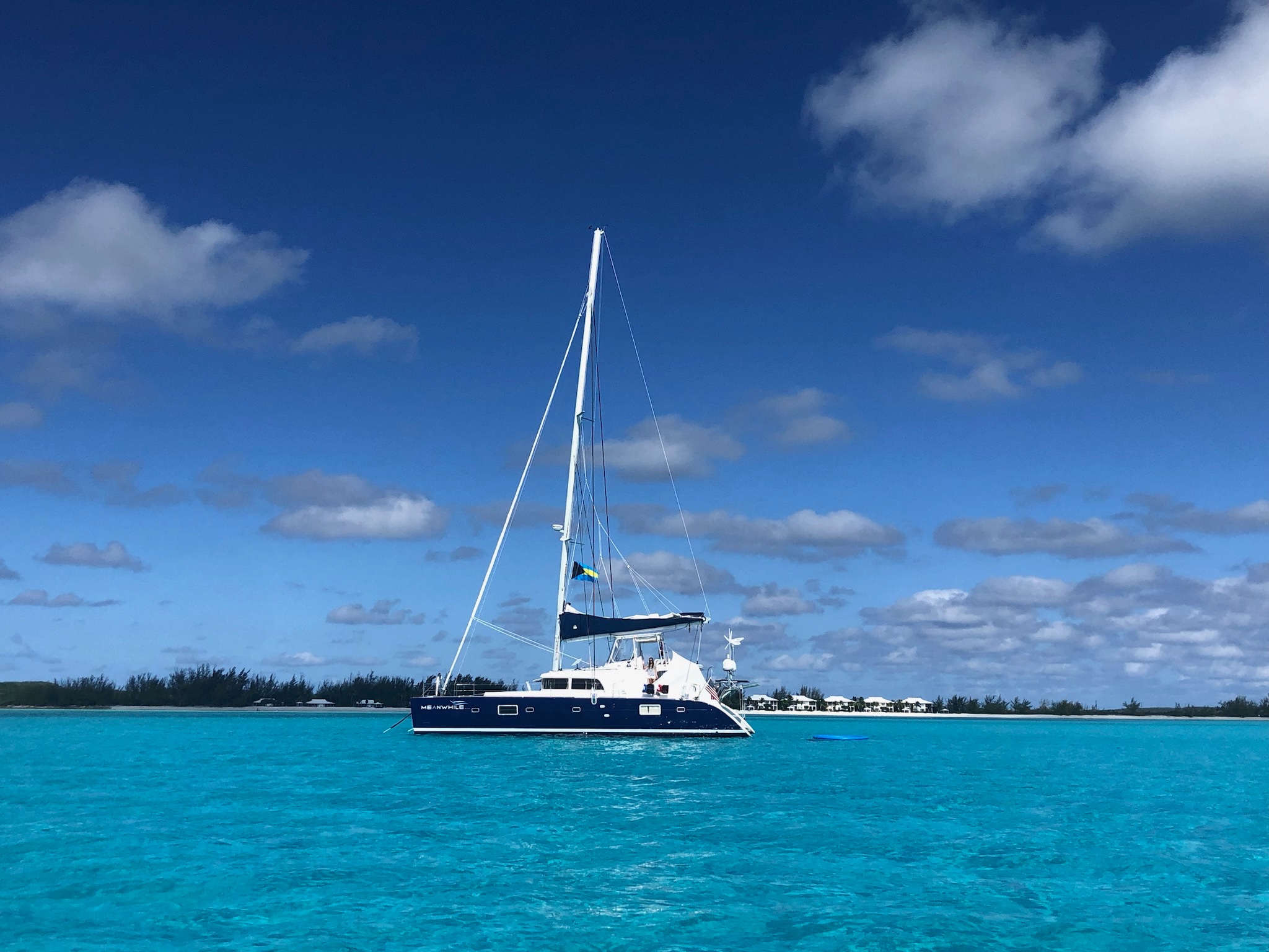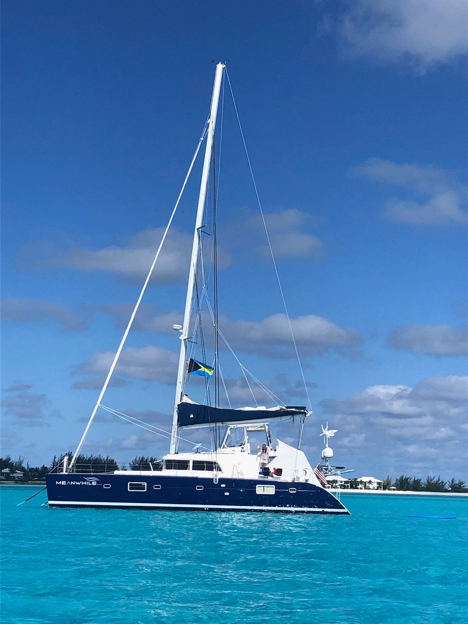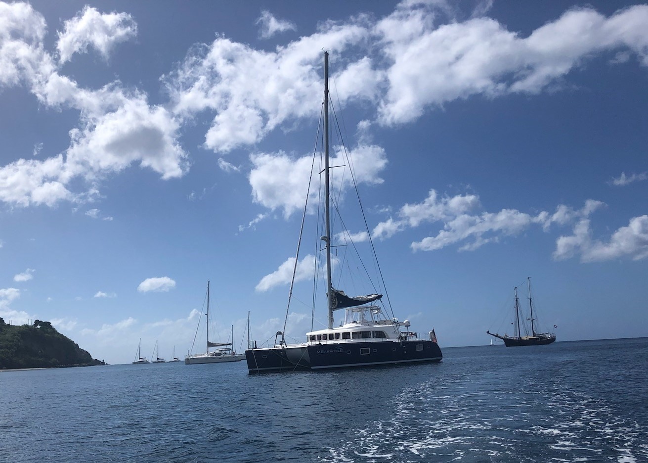 MEANWHILE  is one of the best equipped and maintained 500s on the market.  It is an owners version - 4 cabin . 4 head boat with 75 hp Yanmar diesels, watermaker, hardtop bimini with full enclosures (helm as well), 13.5 KVA Onan generator supported by solar panels and a wind generator.  Vessel comes with a Jones Act waiver allowing MEANWHILE to be used in charter operations within the U.S. Just bring your food and drinks and you're ready to set sail!