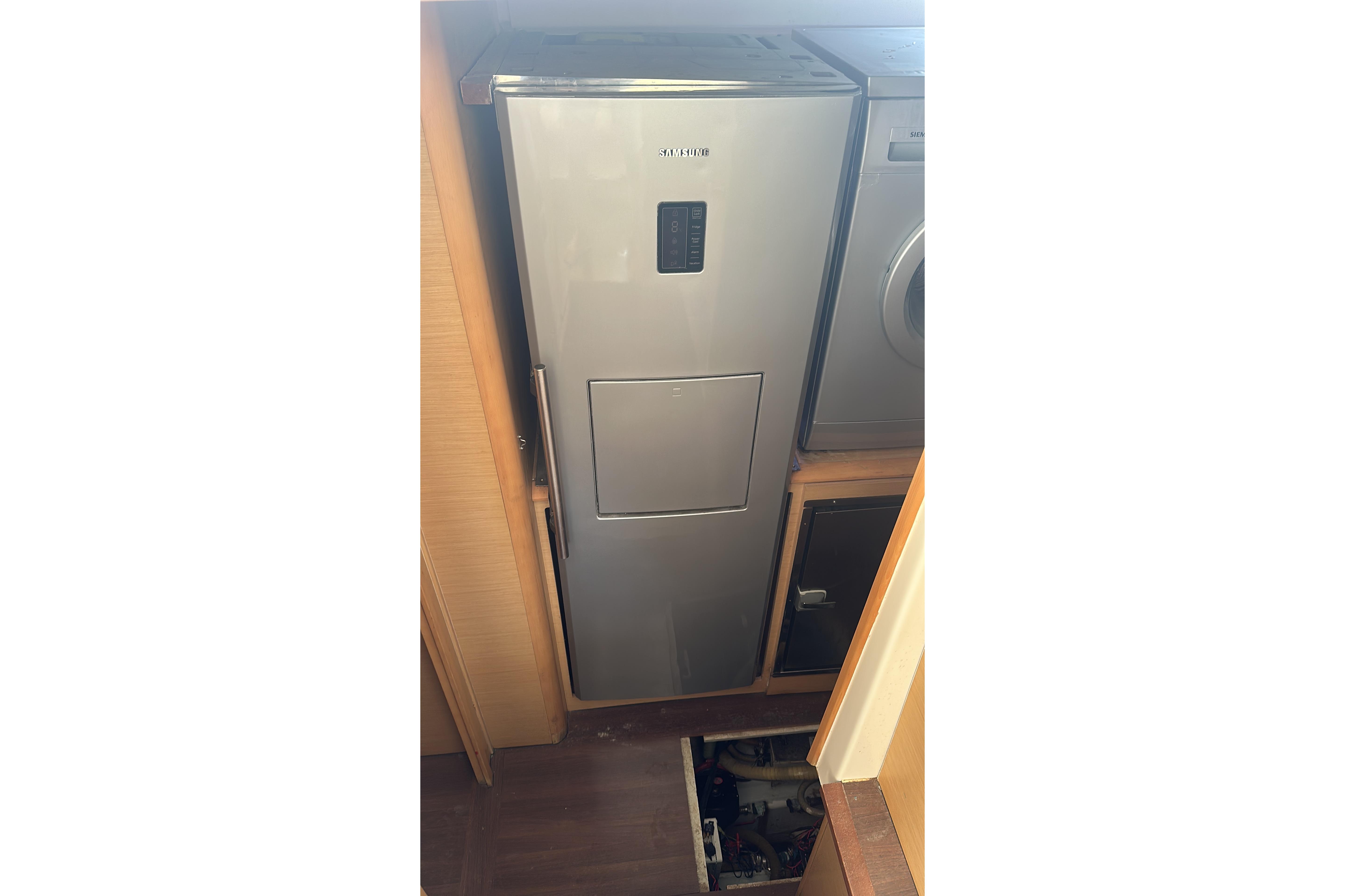 The light oak Alpi woodwork and the laminated wenge floor give a modern and relaxing feel. The saloon seating can accommodate six diners. The engine controls and electric steering wheel can be installed by the chart table. The galley has a four-burner hob, an oven and grill, a fridge and a freezer. The layout allows for the optional installation of a dishwasher, an additional fridge or freezer, a washing machine or a dryer. The port hulls of the three versions are identical with an accommodation ladder that leads to a passageway giving access to two VIP cabins and the back galley. The berths in all the cabins can be reached from three sides, thus providing the same degree of comfort with large and practical lockers, spacious washrooms with separate shower compartment and a well thought out ventilation system.