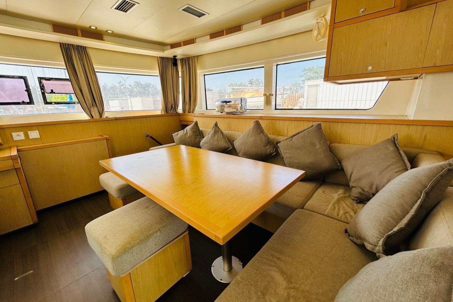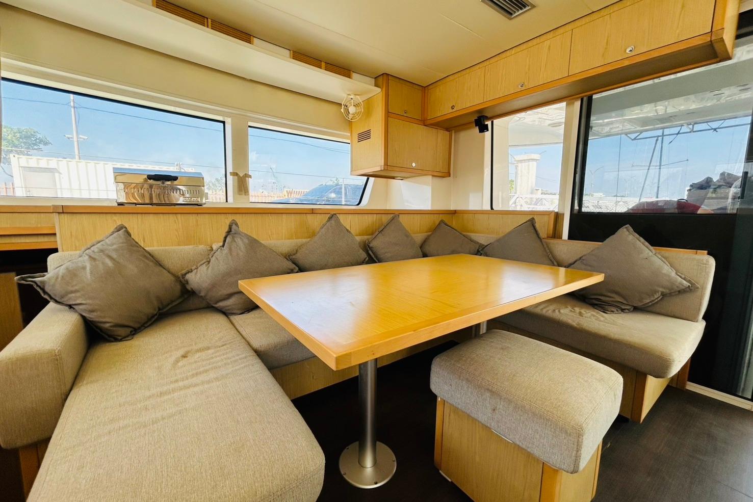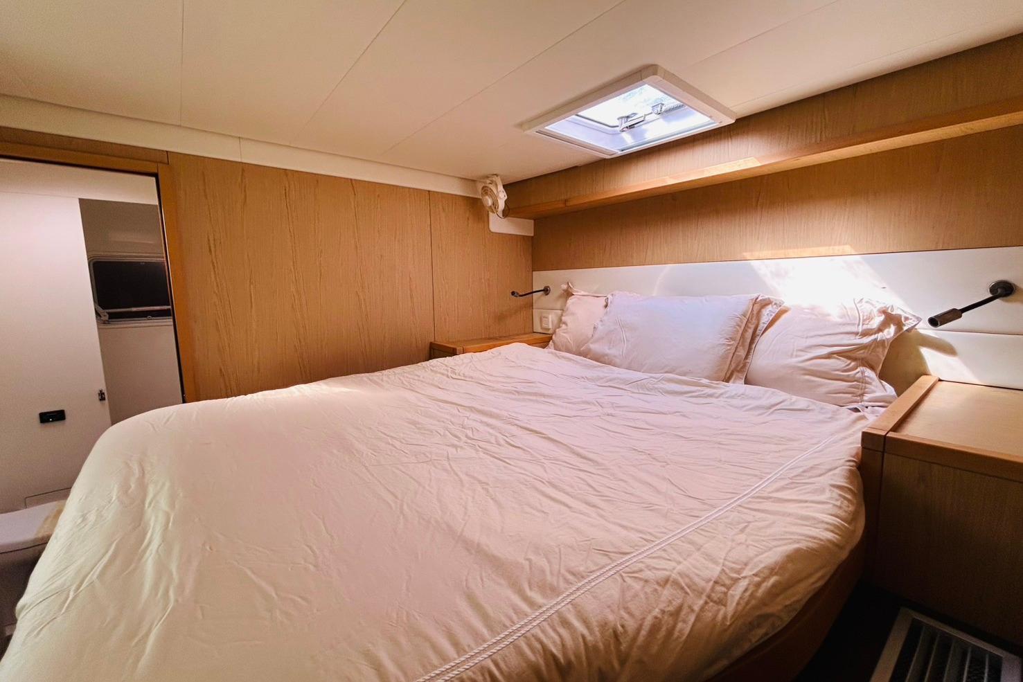 Enjoy panoramic ocean views from the flybridge, where you can relax, helm, or entertain guests in complete comfort. Powered by reliable twin 4jh80 Yanmar engines and optimized sail systems, this Lagoon 52F ensures both effortless cruising and impressive blue-water capability.