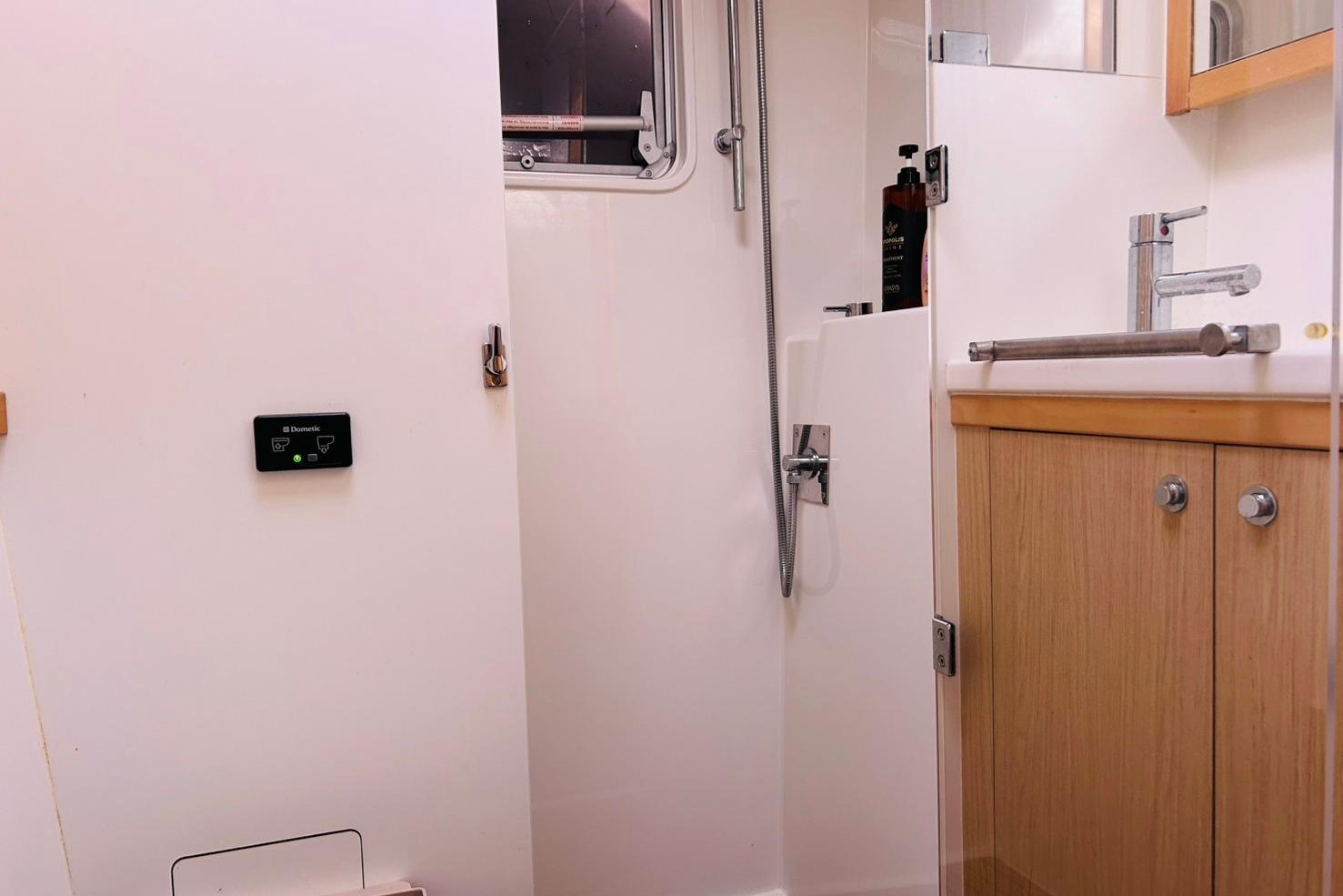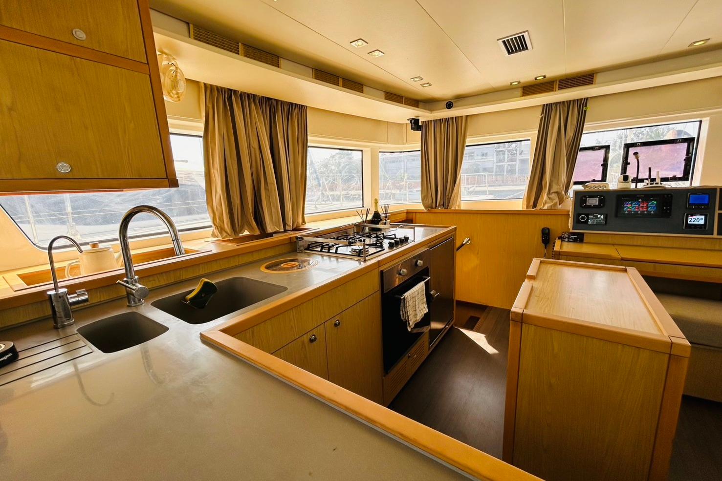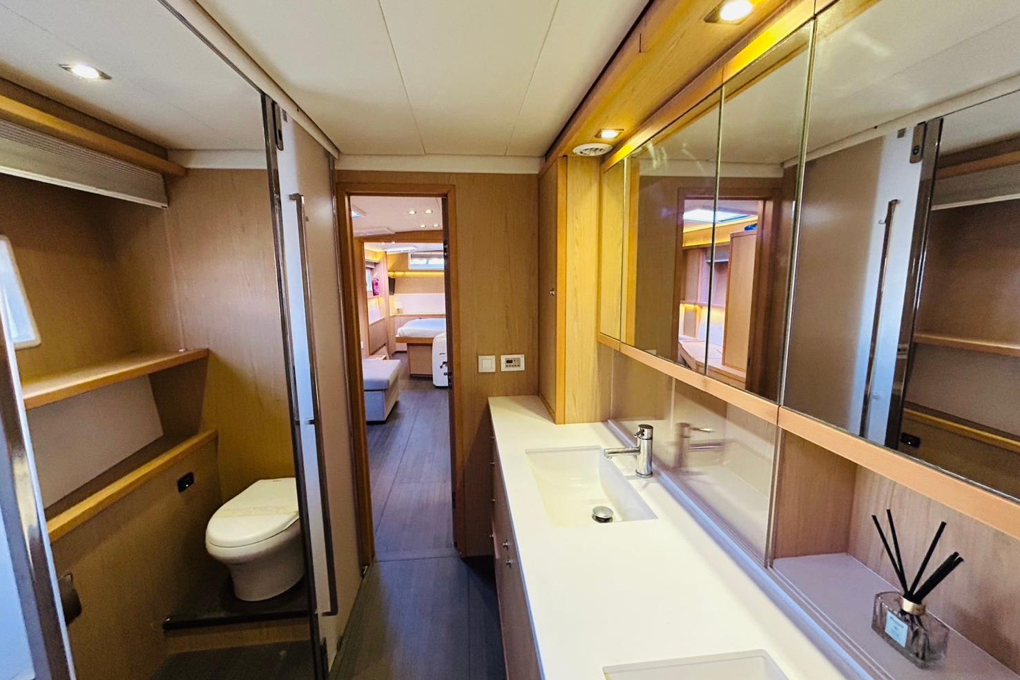 Enjoy panoramic ocean views from the flybridge, where you can relax, helm, or entertain guests in complete comfort. Powered by reliable twin 4jh80 Yanmar engines and optimized sail systems, this Lagoon 52F ensures both effortless cruising and impressive blue-water capability.