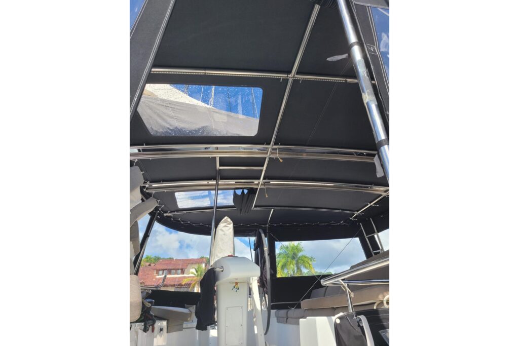 • Large Bimini at Helm station with windscreen, full enclosure w/doors (2025)