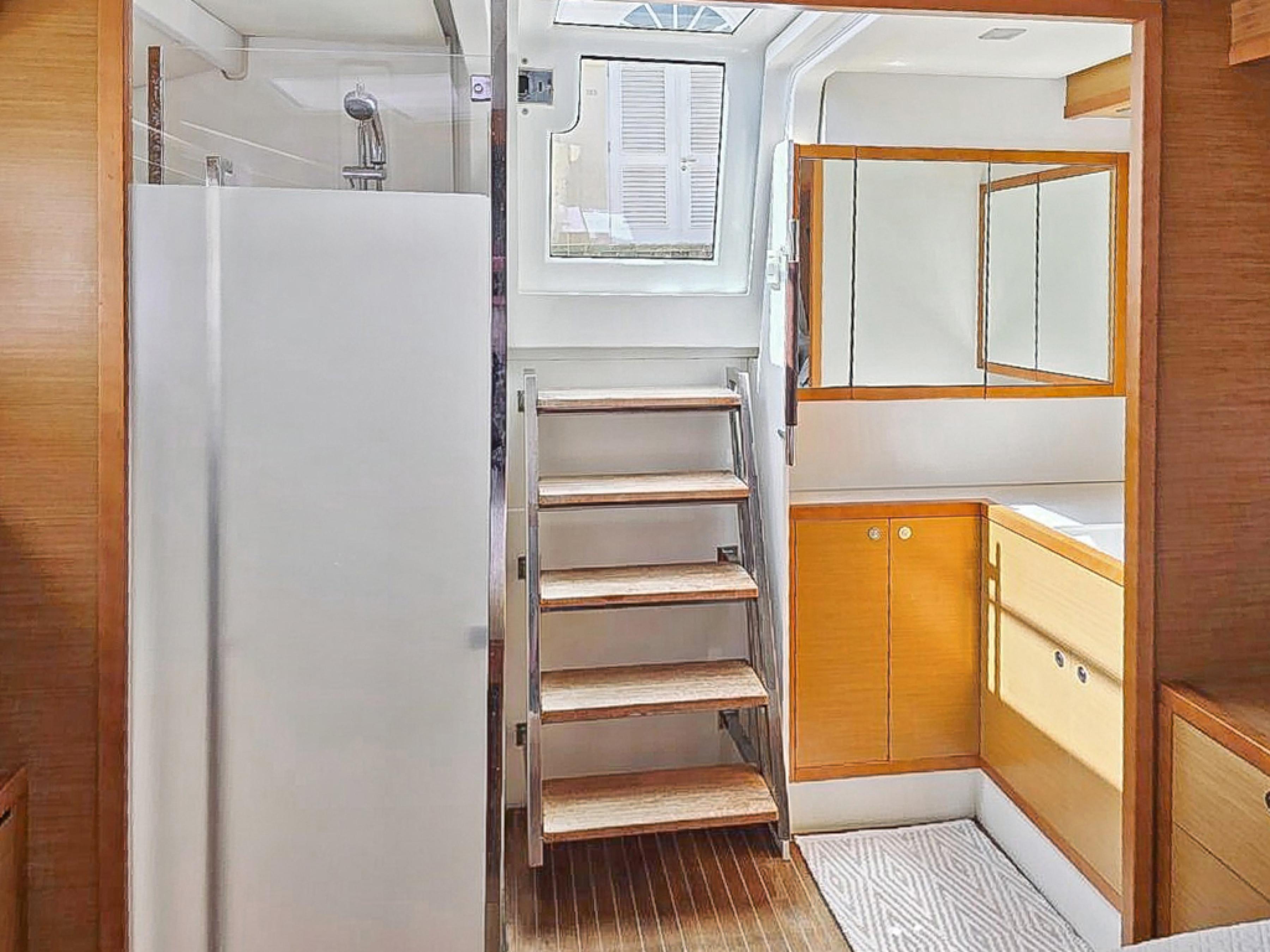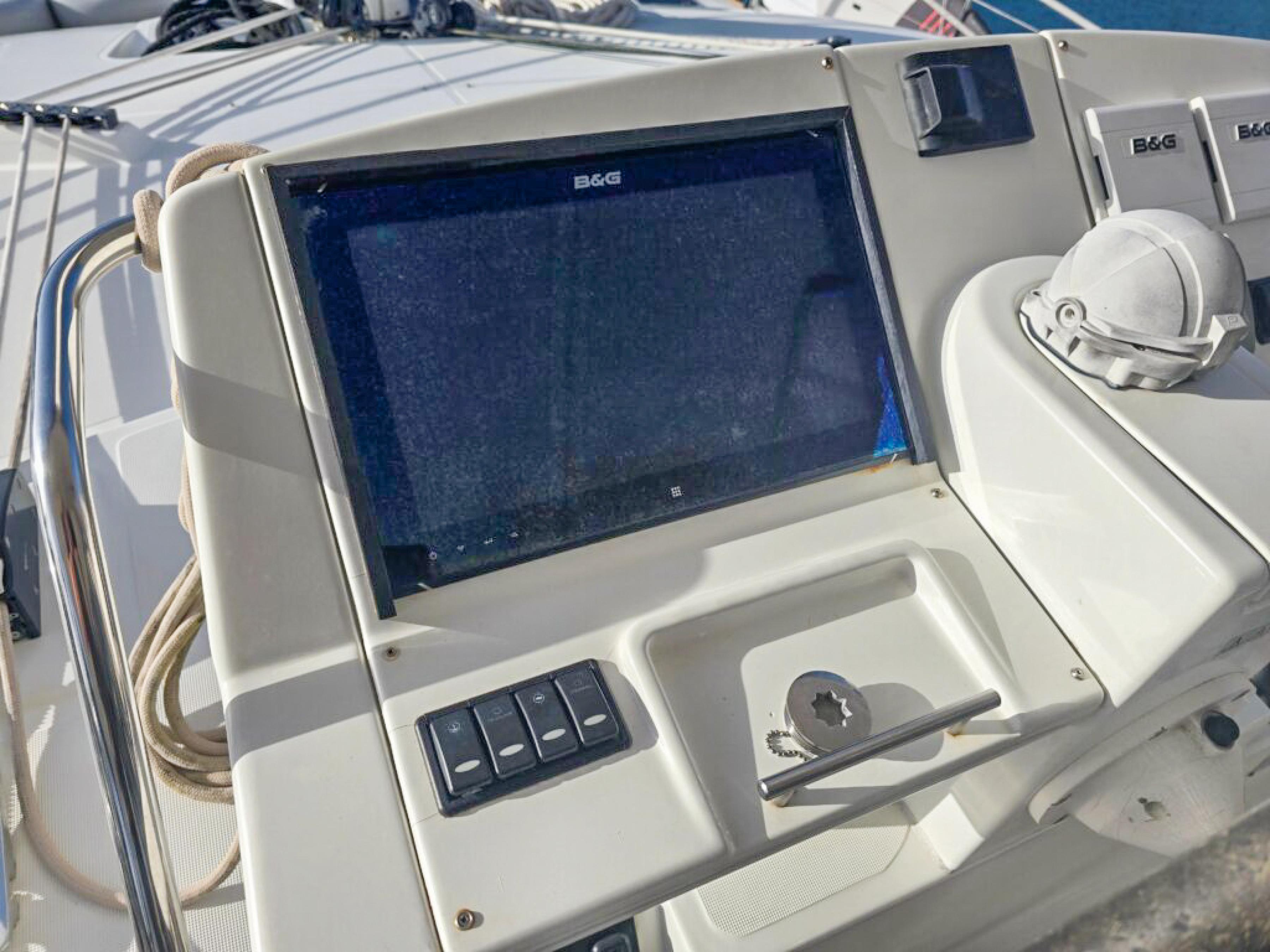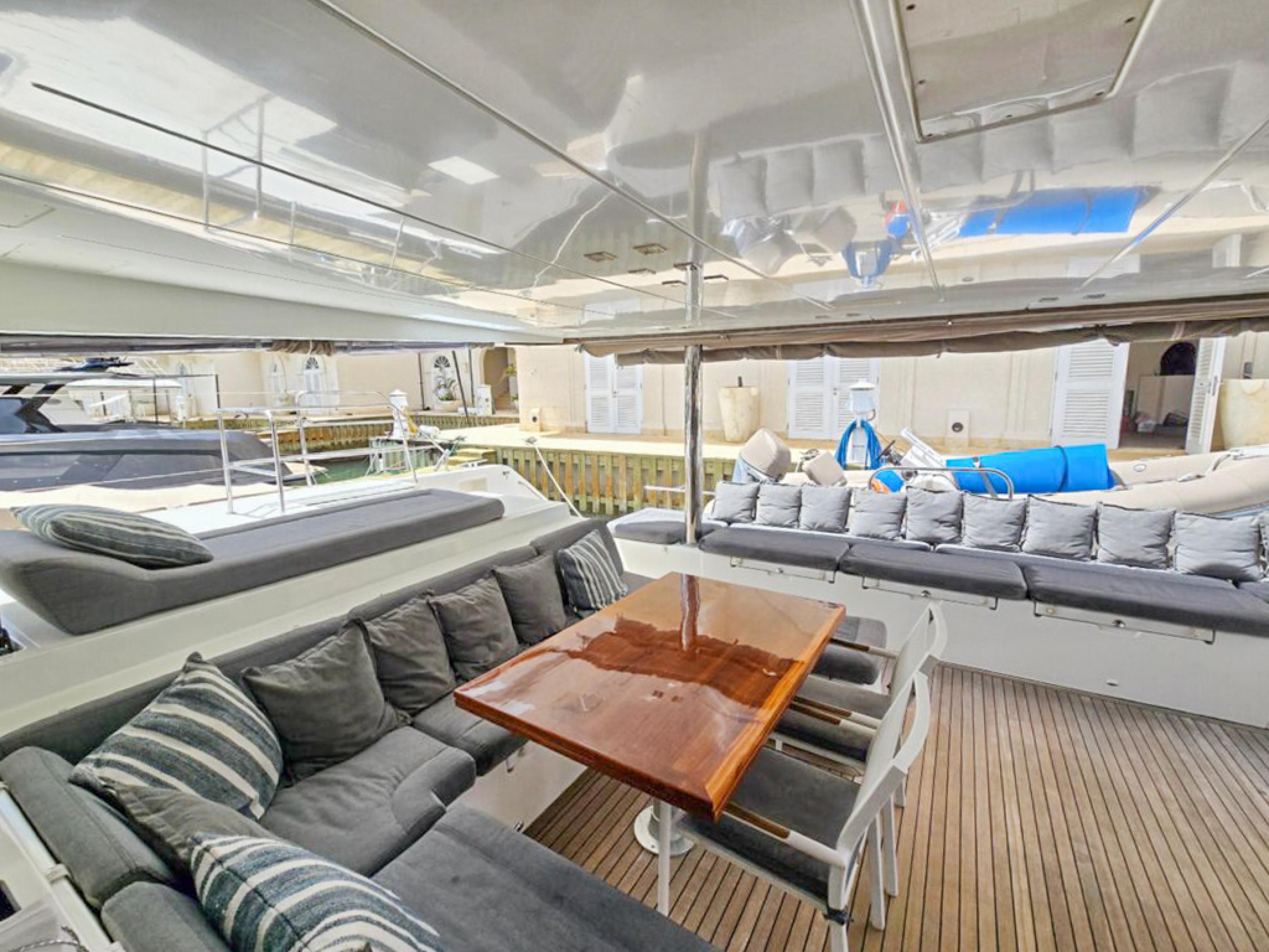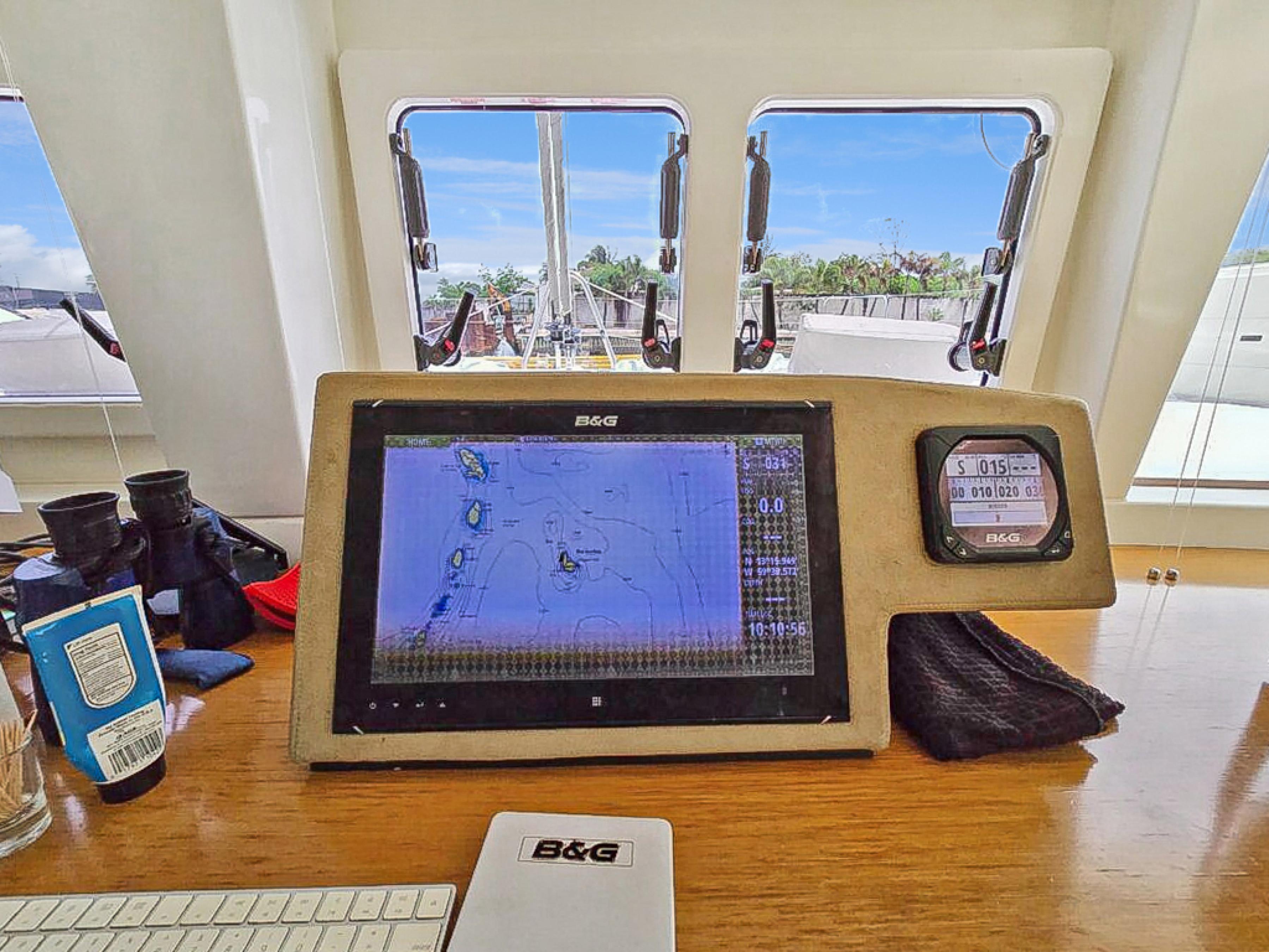 The raised flybridge, forward cockpit lounge, and expansive aft sundeck provide inviting outdoor spaces for entertaining or relaxing at sea. With a full suite of B&G electronics, updated sails, and a powerful Sea Recovery watermaker, shes fully equipped for extended cruising.