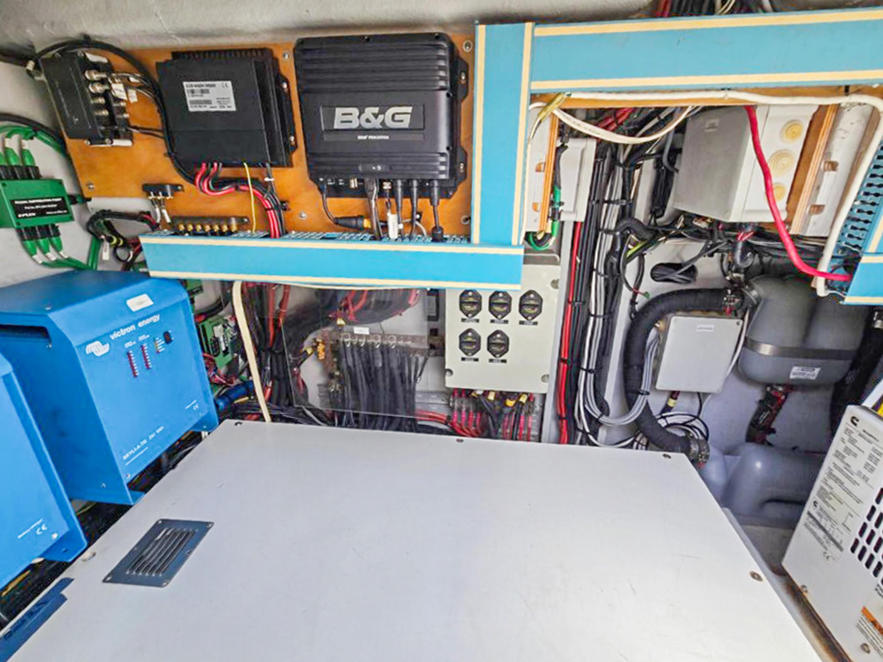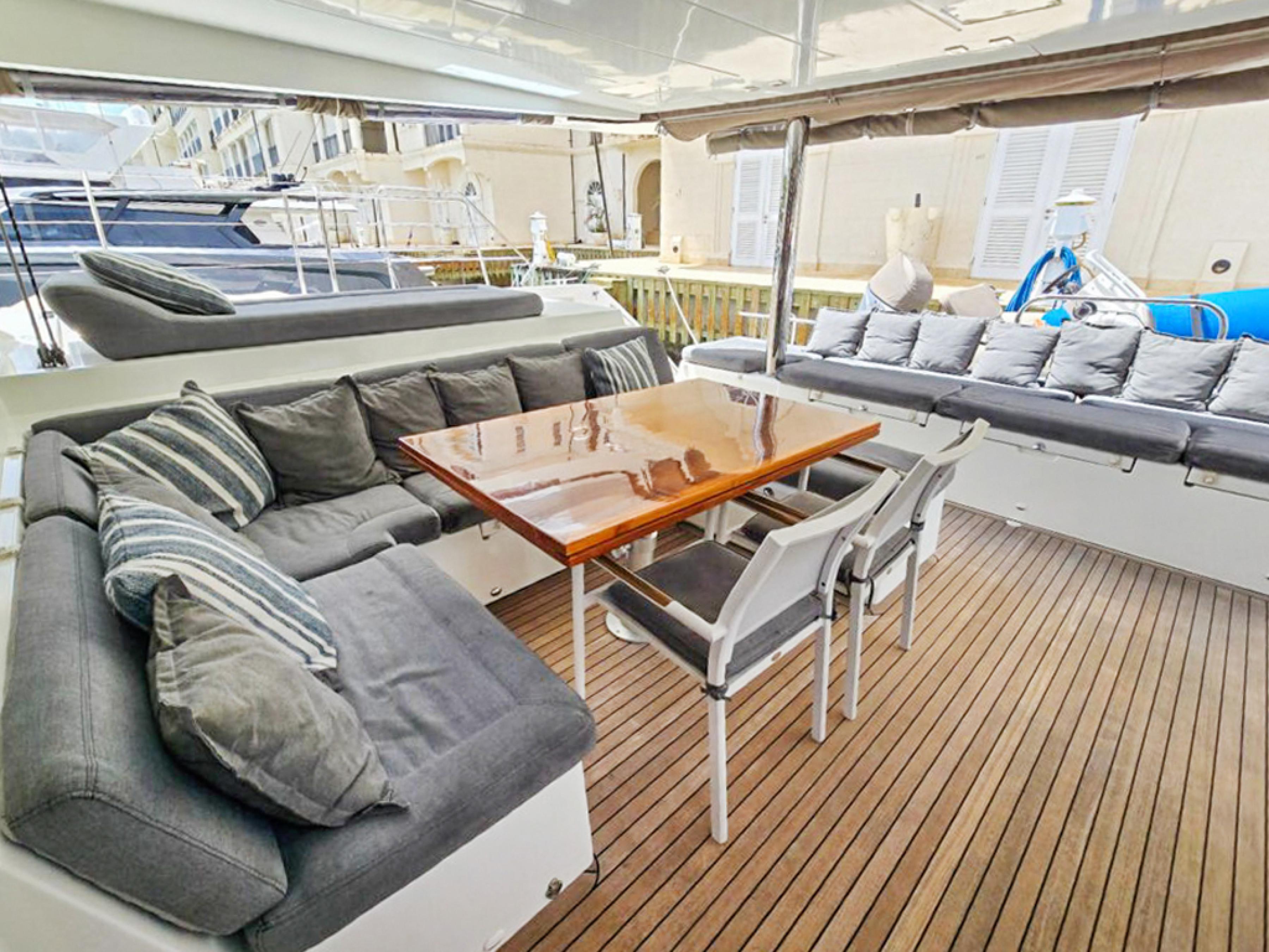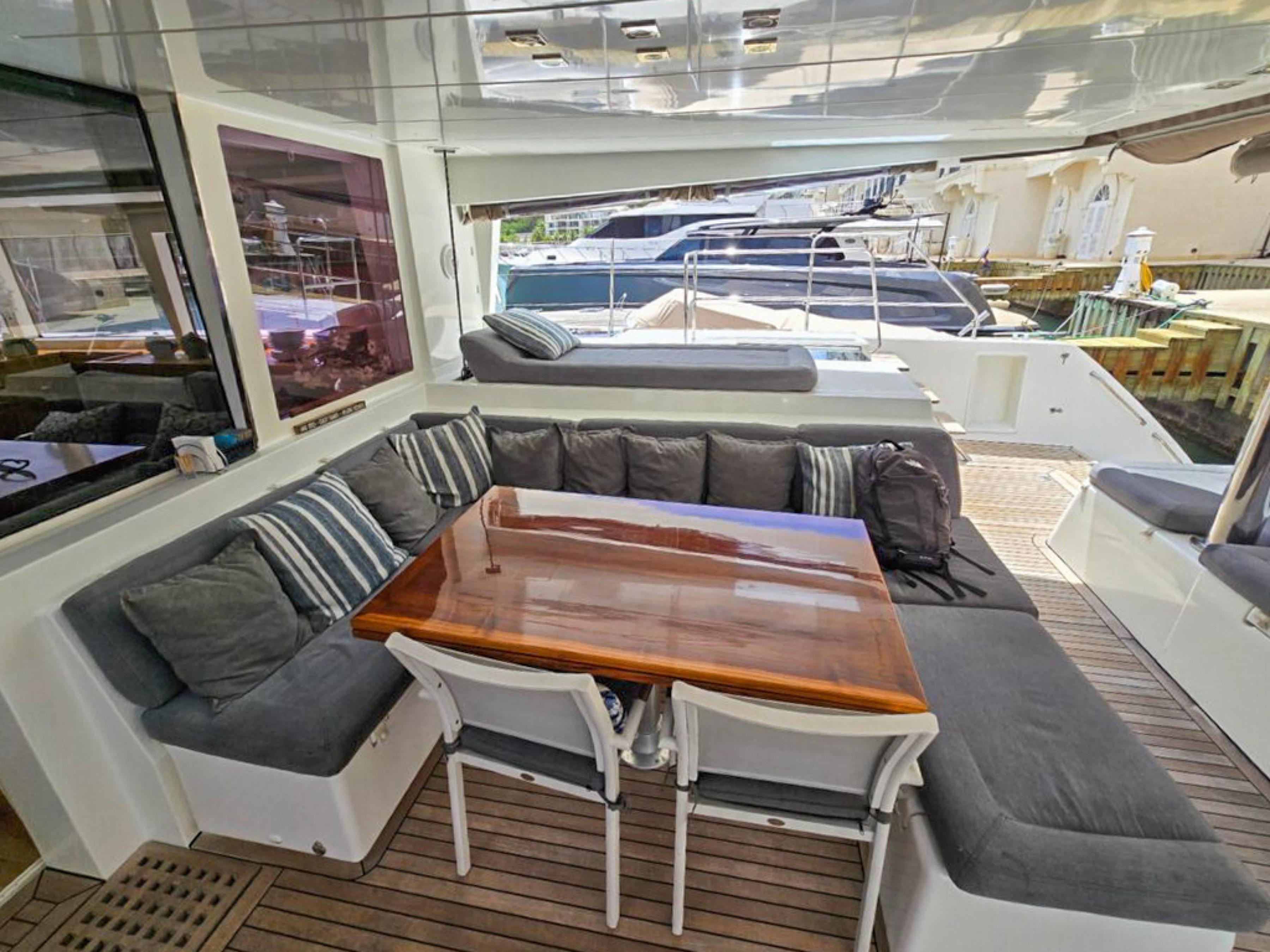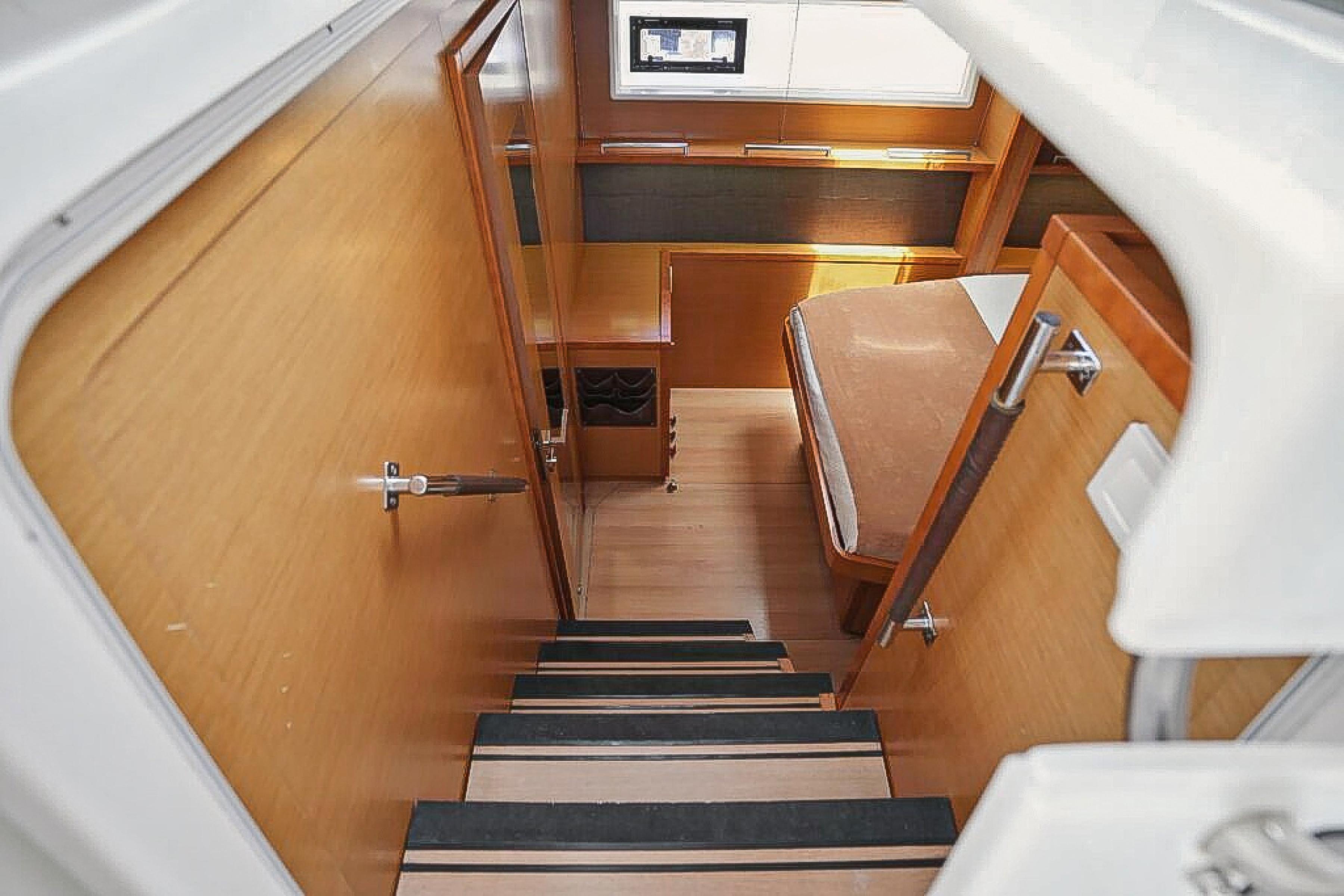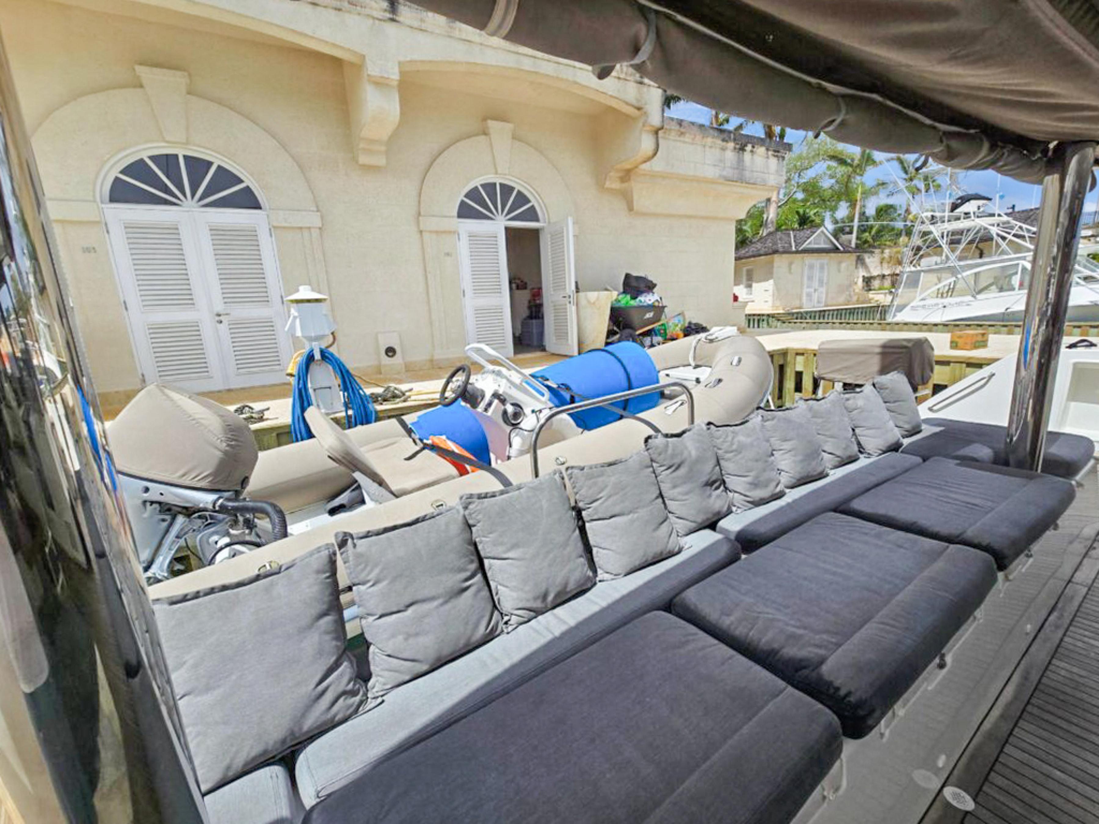 The raised flybridge, forward cockpit lounge, and expansive aft sundeck provide inviting outdoor spaces for entertaining or relaxing at sea. With a full suite of B&G electronics, updated sails, and a powerful Sea Recovery watermaker, shes fully equipped for extended cruising.