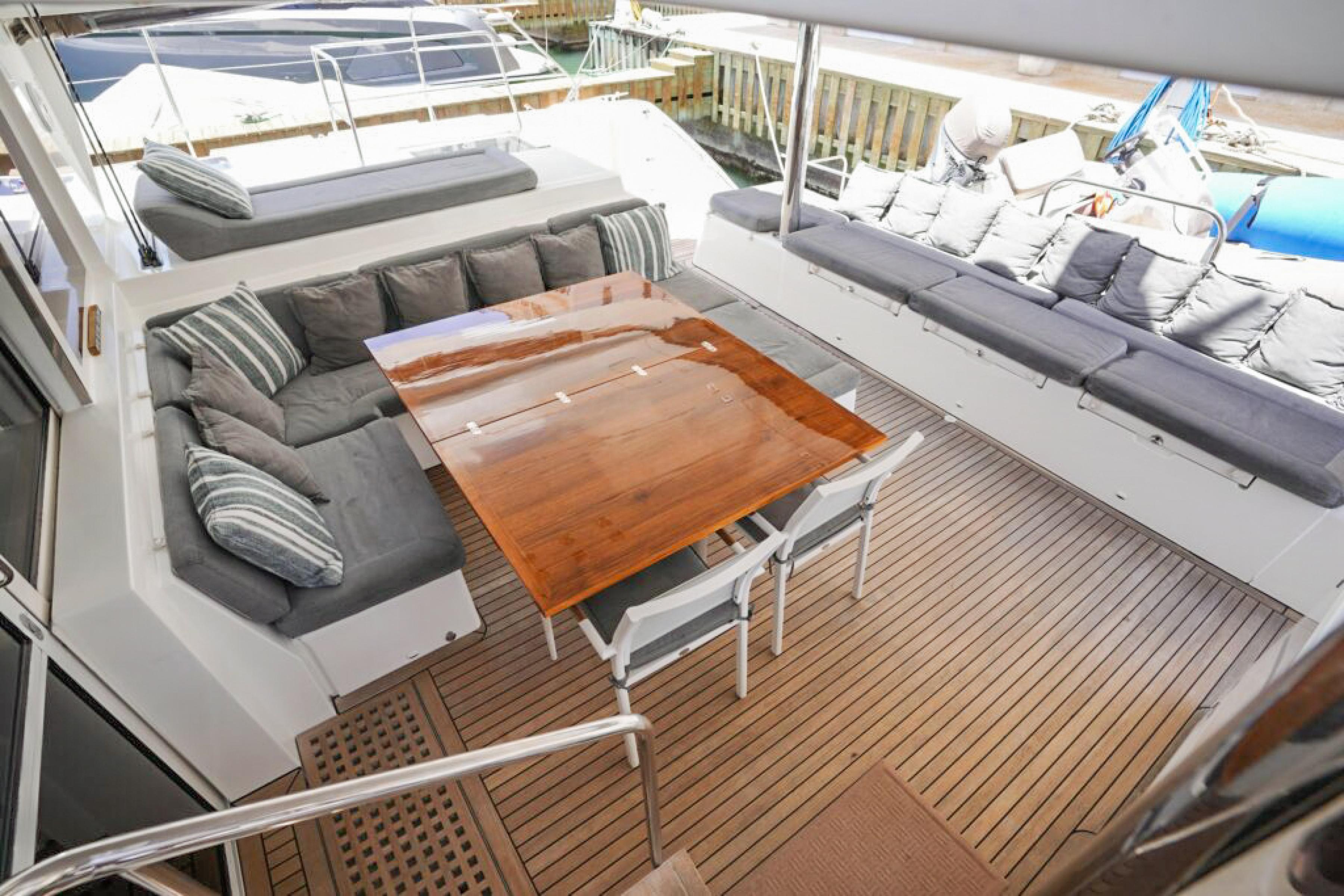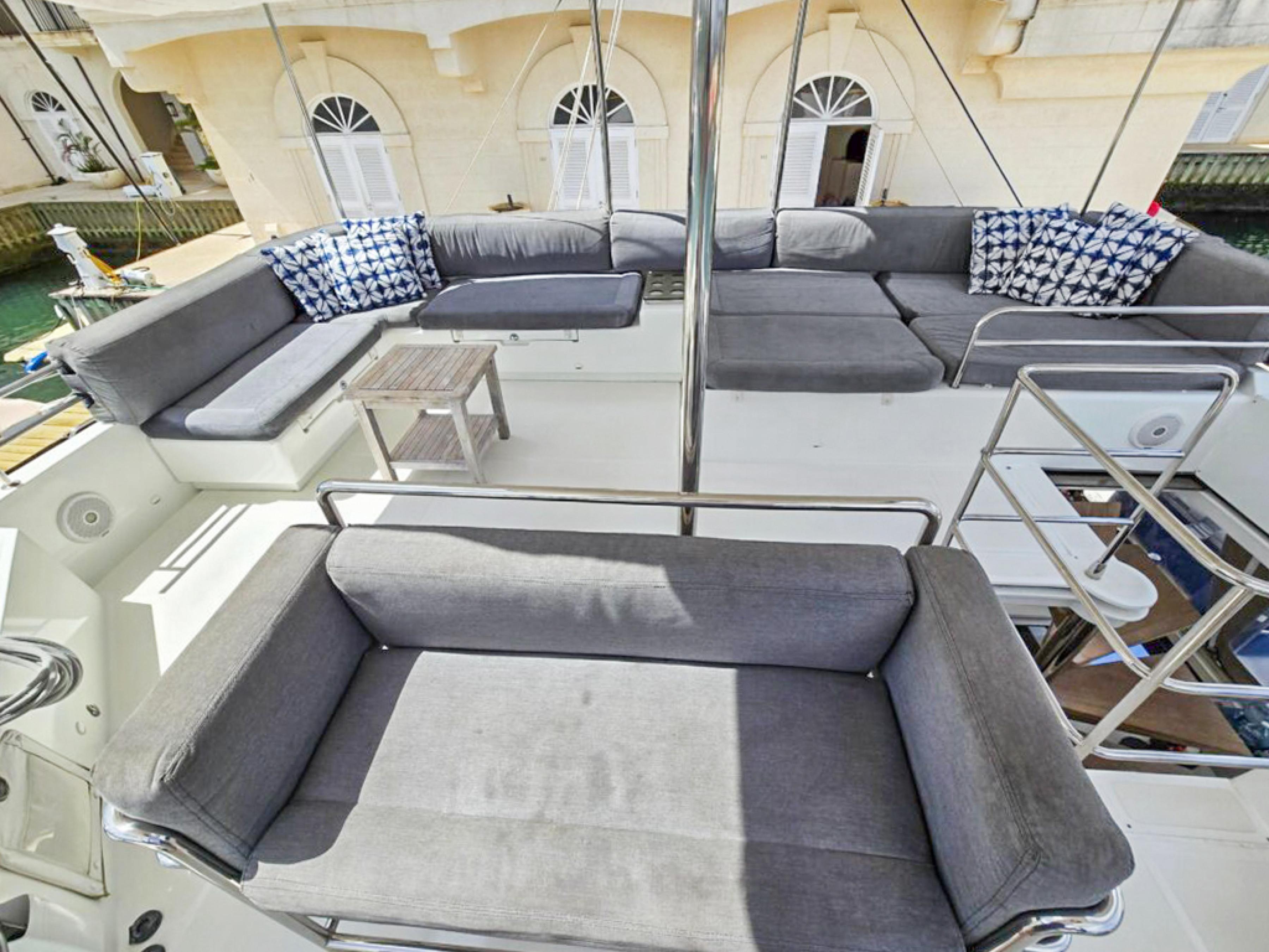 Cushioned lounge seating port/starboard side