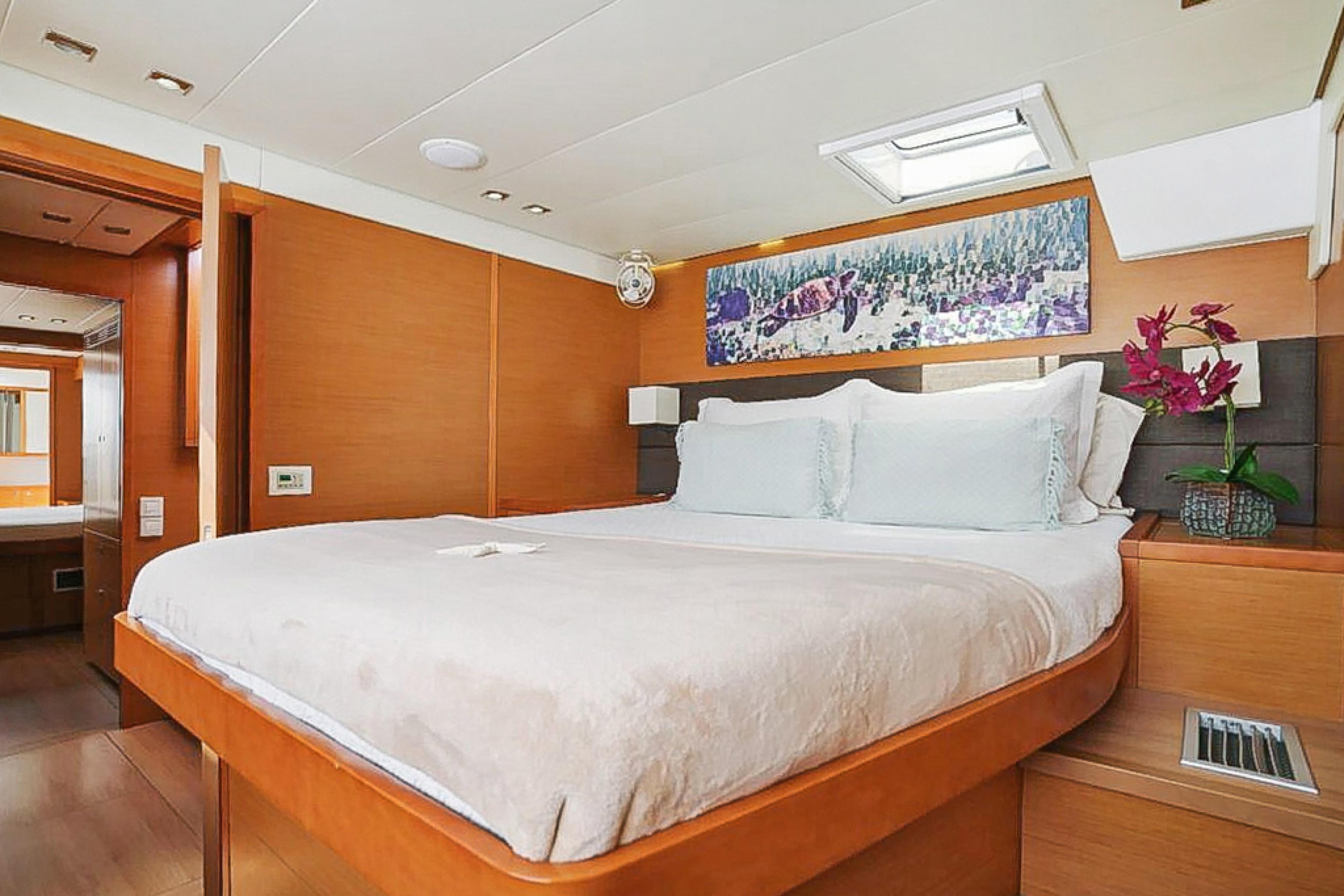 Professionally maintained and operated by a full-time captain, she offers the feel of a private floating oasis. Her spacious layout includes 5 guest cabins, each with its own personality and private head, finished in elegant Alpi wood.