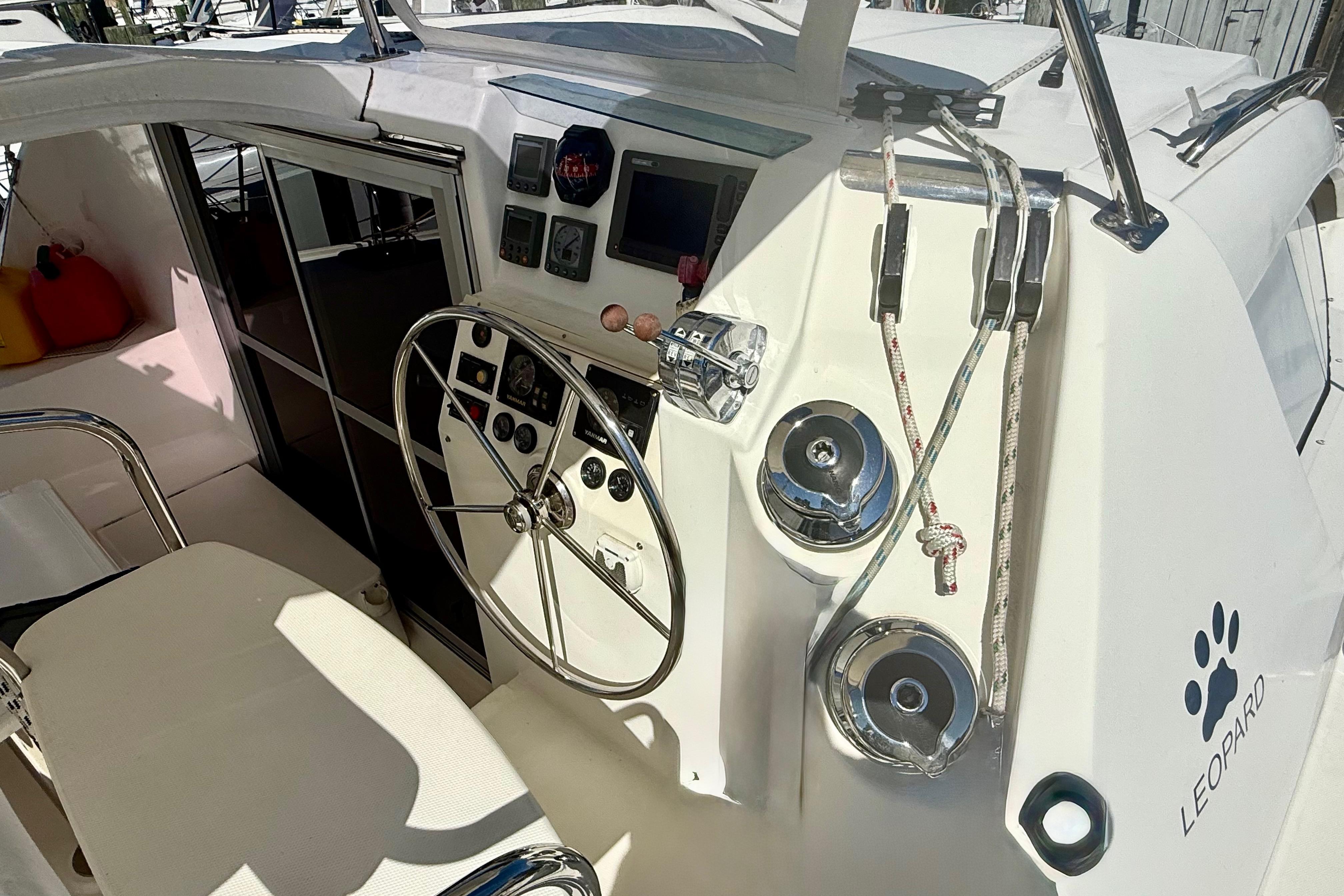 BUILDERS REMARKS: The Leopard 39's speed on the water and easy handling are its top features, earning it 'Boat of the Year 2010' from Cruising World and SAIL magazine. The Leopard 39 features a large cockpit with outside dining area protected by a functional hard-top bimini with mounted solar panels. The galley-up design incorporates a spacious saloon and aft facing galley. No steps up or down anywhere. The 3-cabin layout features an owner-dedicated starboard hull with master stateroom, office area and large head with separate stall shower forward. Sailing the Leopard 39 is easy: both main and jib sheets lead to stoppers and self-tailing winches directly adjacent to the helm. There’s room for two on the bench-style helm seat, but you need only one to trim sails!